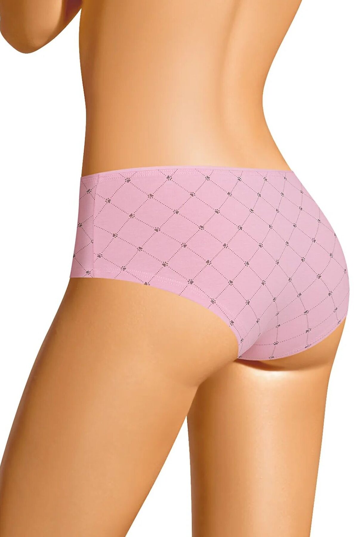 Трусы шорты женские из эластичного хлопкового полотна. Обработка краев по талии - окантовочная резинка, по ноге - подгибка. По переду атласный бант.