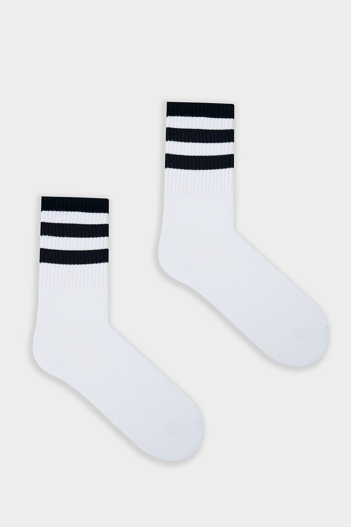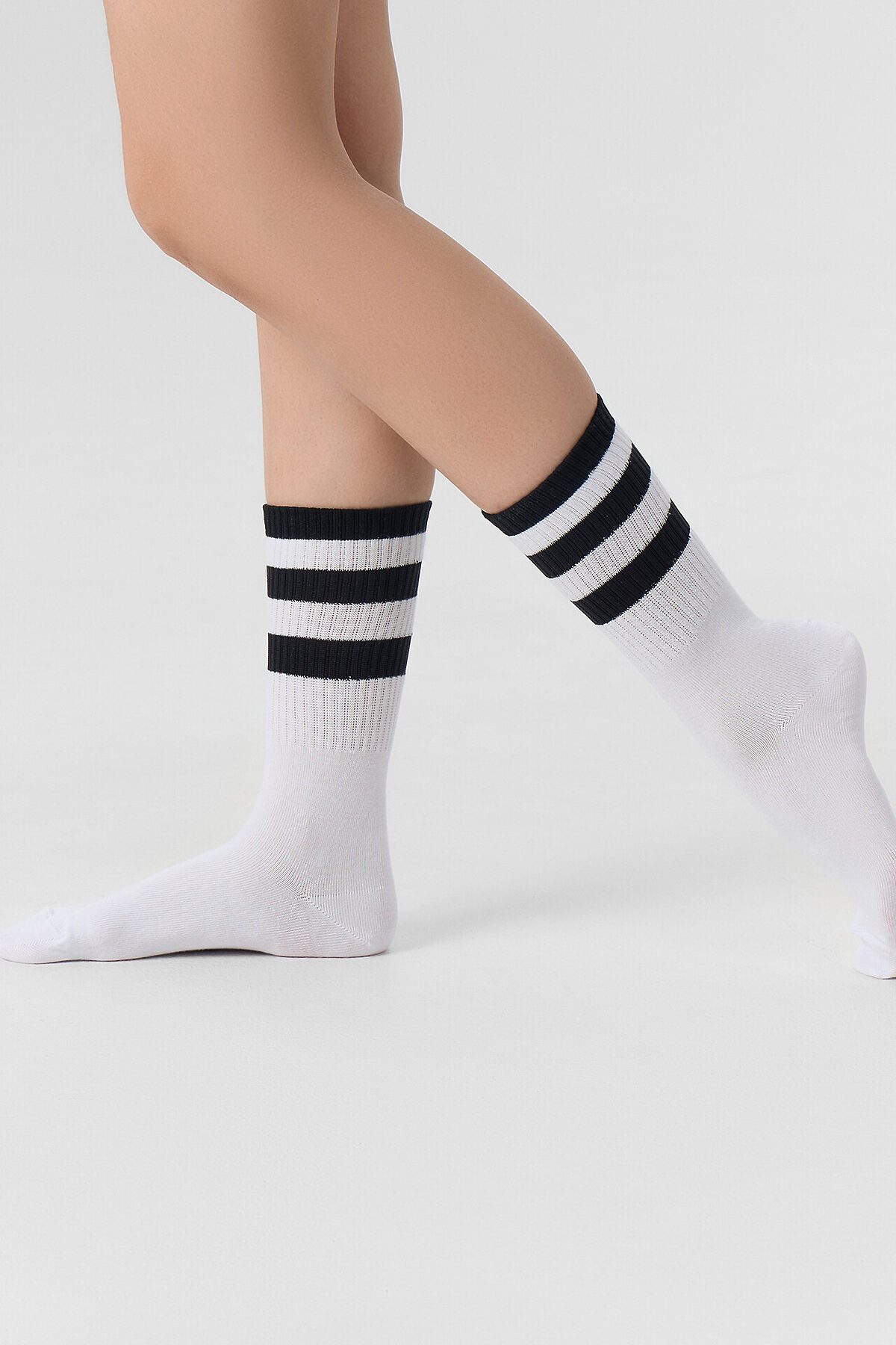 рис.3112 Женский носок с цветным высоким плотным бортом и рисунком в виде цветных полосок.