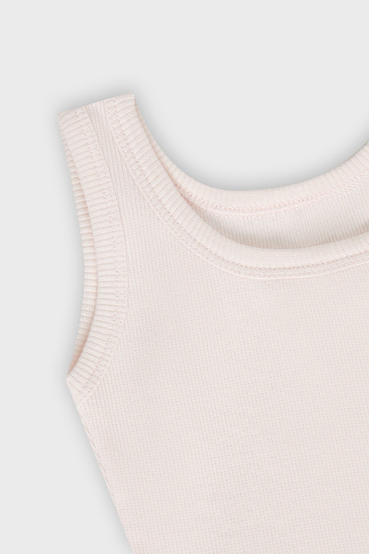 Бельевой топ прилегающего силуэта без рукавов для девочек — это удобная и мягкая модель для домашнего гардероба, созданная для комфортного отдыха, спокойного сна или расслабленного времени дома. Он выполнен из хлопка с добавлением эластана, что обеспечивает нежность материала, лёгкую эластичность и идеальное прилегание, не ограничивающее движений.