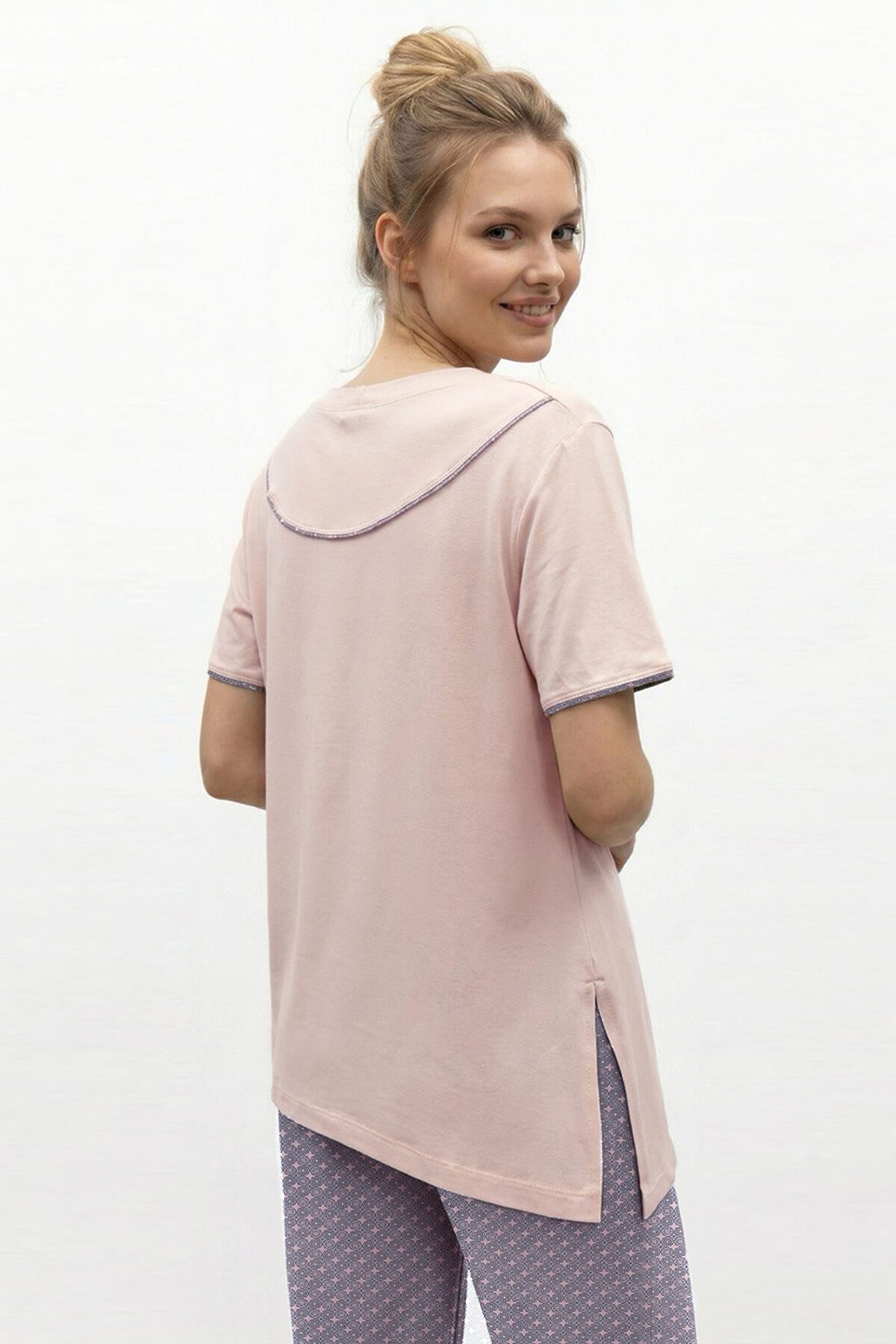 Подарите себе истинное наслаждение комфортом и элегантностью с женским домашним костюмом от бренда NINEL. Этот комплект, состоящий из свободной футболки и удобных брюк, создан для того, чтобы вы чувствовали себя расслабленно и уверенно в любой домашней обстановке. Непревзойденный комфорт премиальной вискозы: Сердце этого костюма высококачественная вискоза, материал, который дарит ощущение второй кожи. Мягкая, дышащая и приятная на ощупь, вискоза обеспечивает идеальный микроклимат, позволяя телу дышать и сохраняя ощущение свежести в течение всего дня. Ее нежная текстура ласкает кожу, а естественный блеск придает изделию изысканный вид. Свобода и стиль в каждой детали: Футболка свободного кроя: Эта футболка воплощение непринужденной элегантности. Ее свободный силуэт не сковывает движений, даря максимальный комфорт. Особый акцент стильные разрезы по бокам, которые добавляют образу легкости и современности, а также обеспечивают дополнительную вентиляцию. Круглый вырез горловины и короткие рукава делают футболку универсальной и подходящей для любого времени года. Удобные брюки: Брюки идеально дополняют футболку, создавая гармоничный и завершенный образ. Их свободный крой обеспечивает максимальную свободу движений, а мягкая резинка на поясе гарантирует идеальную посадку без сдавливания. Брюки прекрасно подходят как для отдыха, так и для выполнения домашних дел. Преимущества костюма NINEL: Премиальная вискоза: Натуральный, дышащий и гипоаллергенный материал для вашего комфорта. Свободный крой: Максимальная свобода движений и ощущение легкости. Стильные разрезы на футболке: Современный акцент, добавляющий образу изюминку. Универсальность: Идеален для дома, отдыха и сна. Элегантный дизайн: Сочетание комфорта и утонченного стиля. Бренд NINEL: Гарантия качества и внимания к деталям. Этот домашний костюм от NINEL это не просто одежда, это инвестиция в ваше самочувствие и настроение. Позвольте себе окунуться в мир уюта и стиля, где каждая деталь создана для вашего максимального комфорта.