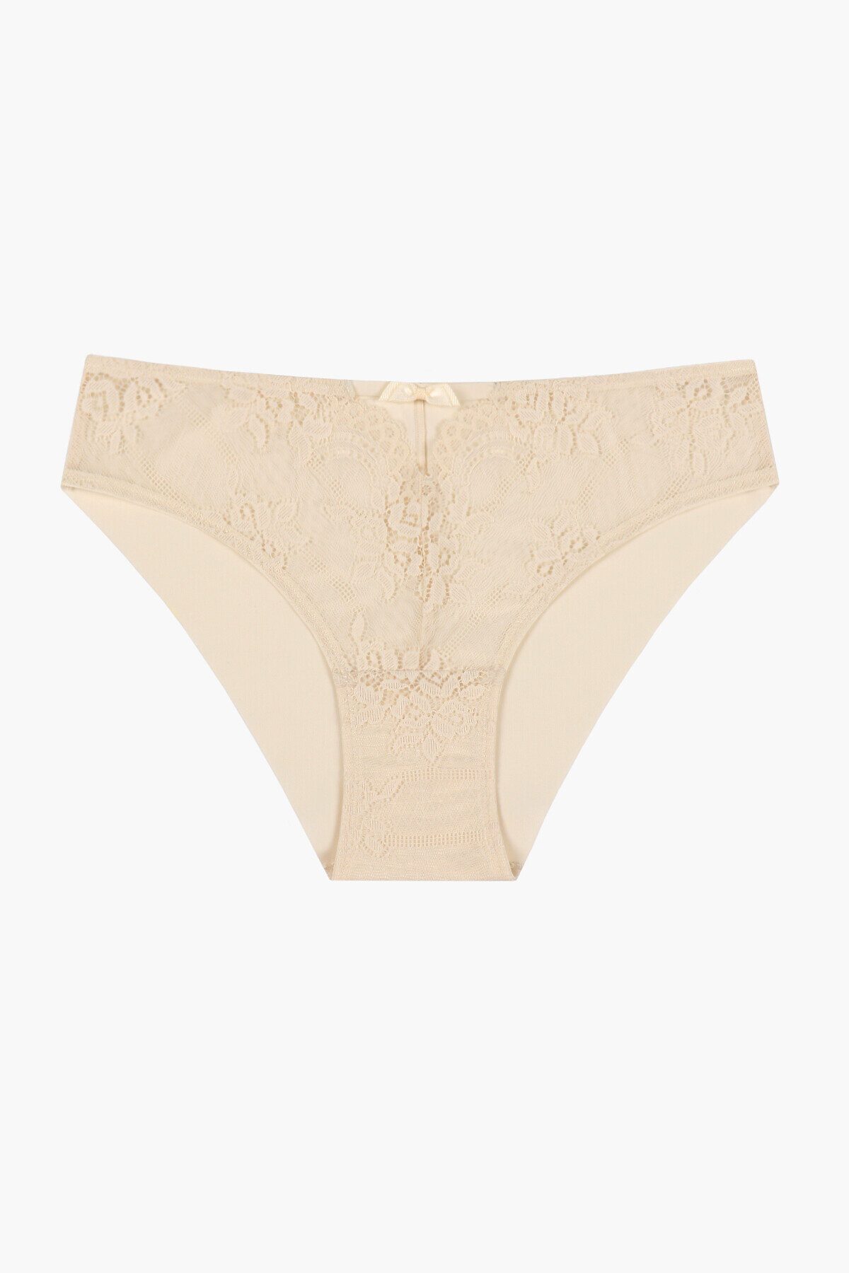 Трусы-слипы нежного бежевого оттенка, выполненные из мягкой эластичной ткани. Модель украшена изящной кружевной вставкой с миниатюрным бантиком в передней части. Особенности: ✔ Широкая комфортная ластовица из хлопка ✔ Мягкая резинка, не сдавливающая талию ✔ Бесшовный край с задней стороны трусов ✔ Декоративная кружевная вставка с бантиком спереди ✔ Универсальный пастельный оттенок