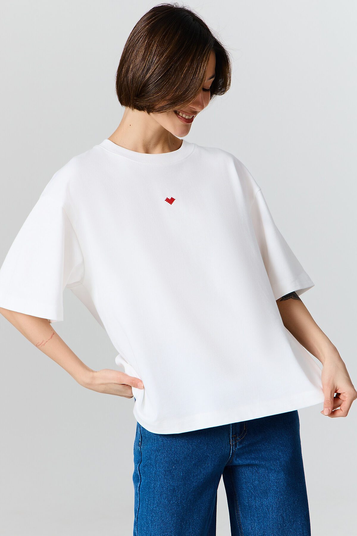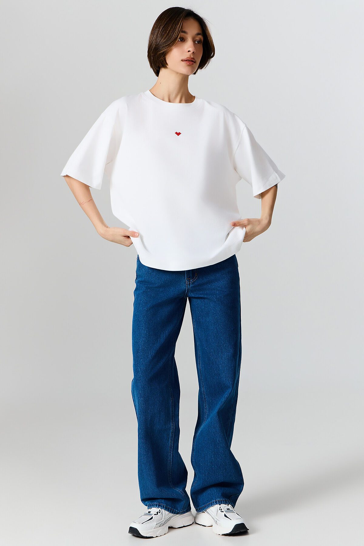 Удобная длина и продуманный крой позволяют носить футболку как навыпуск, так и заправленной в пояс, создавая разные варианты образов.