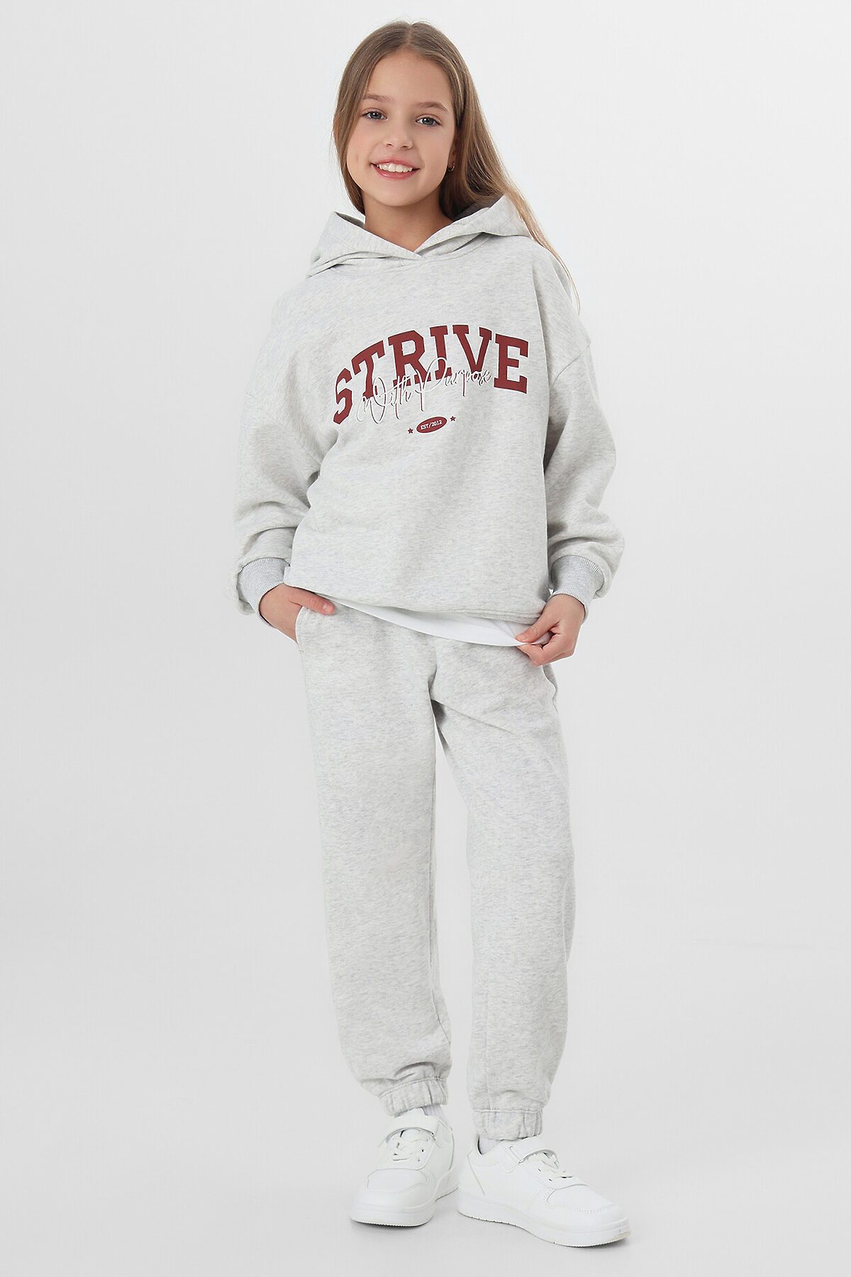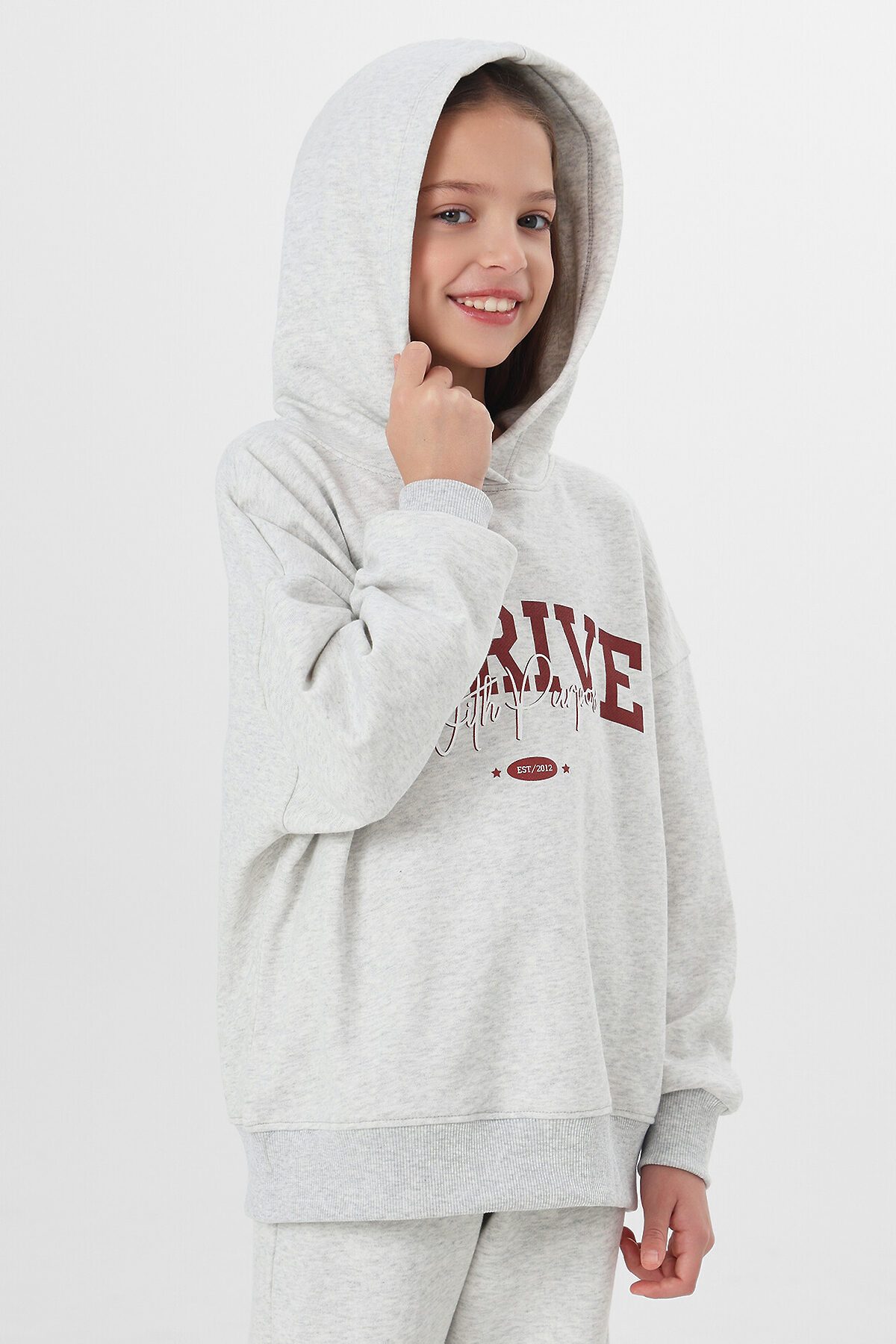 Комплект для девочек (худи, брюки) MARK FORMELLE, серый меланж 4306-а +печать4