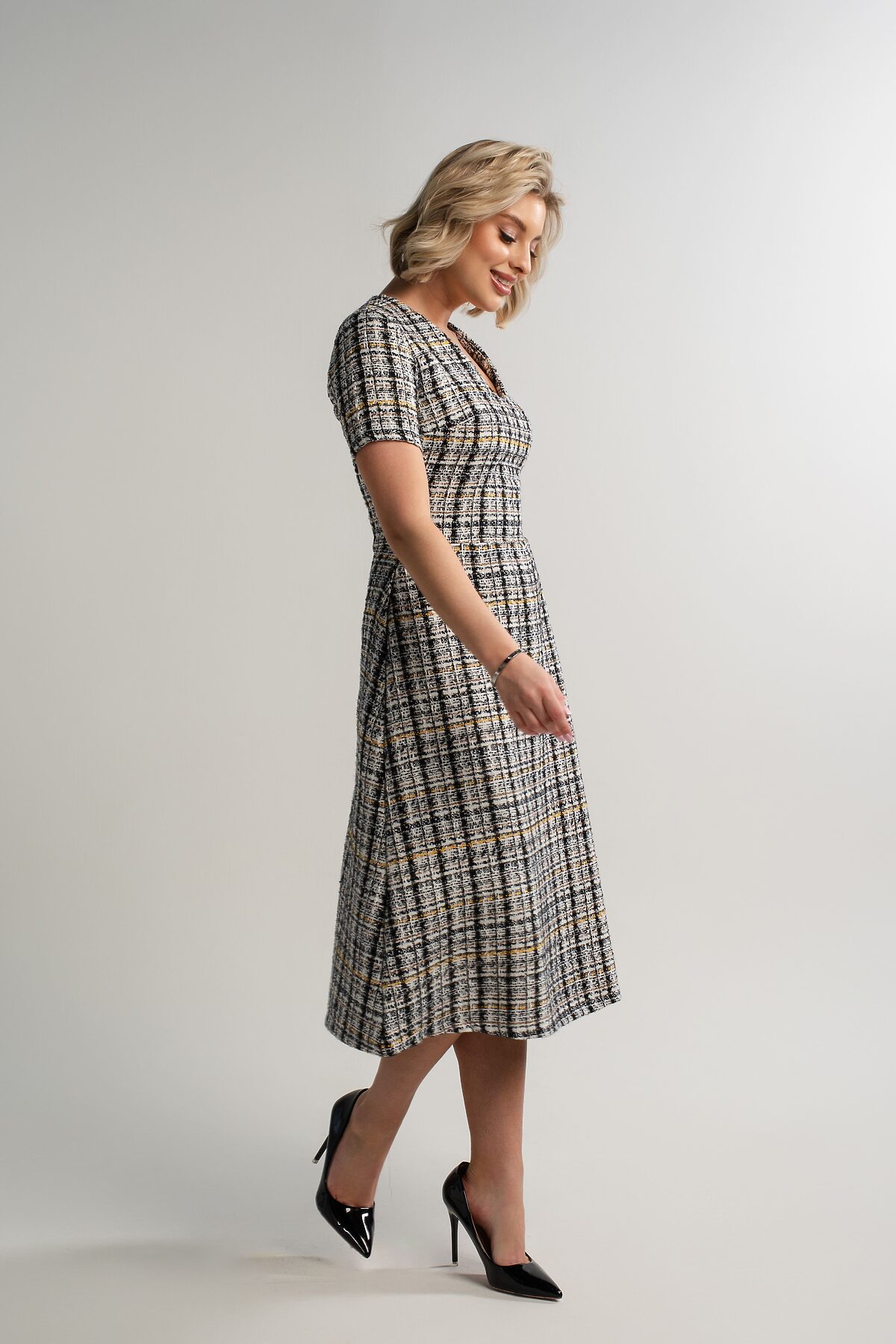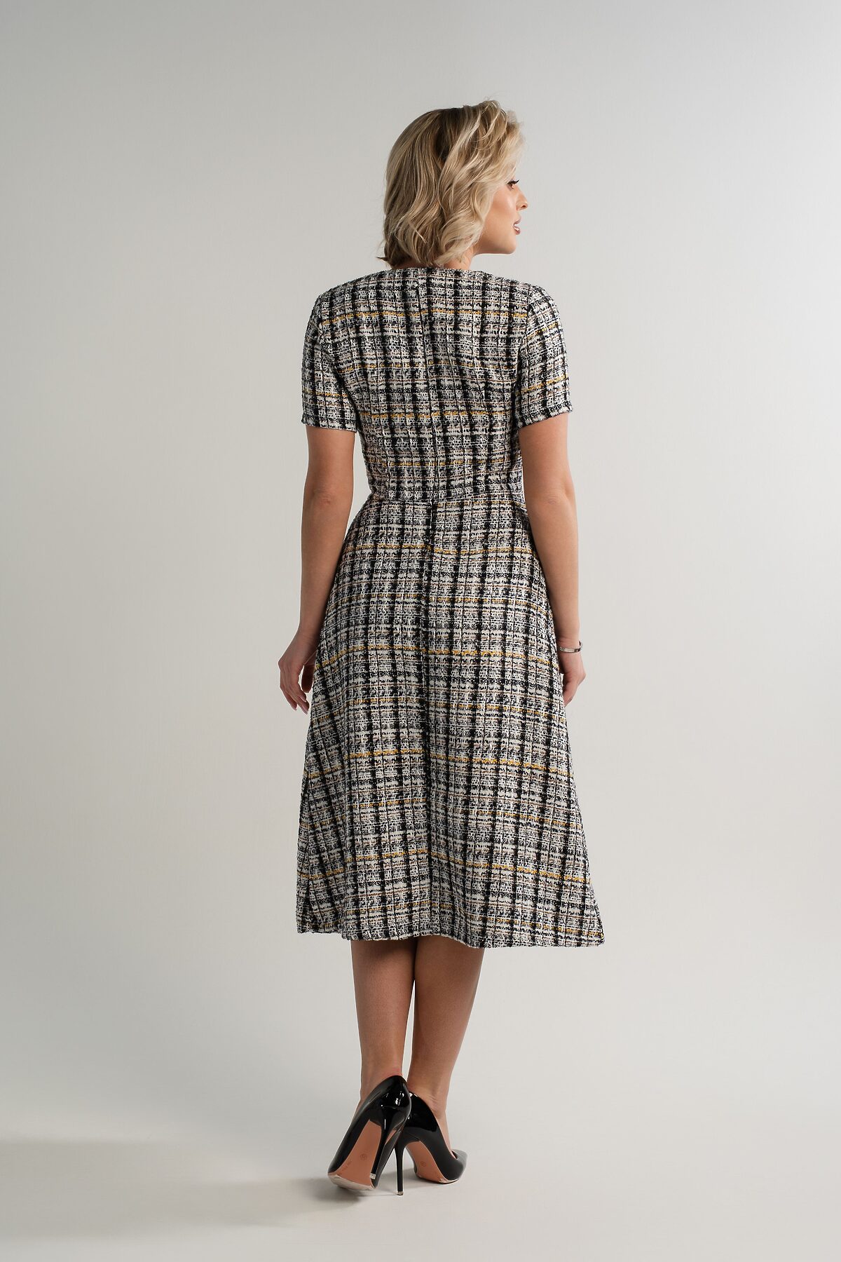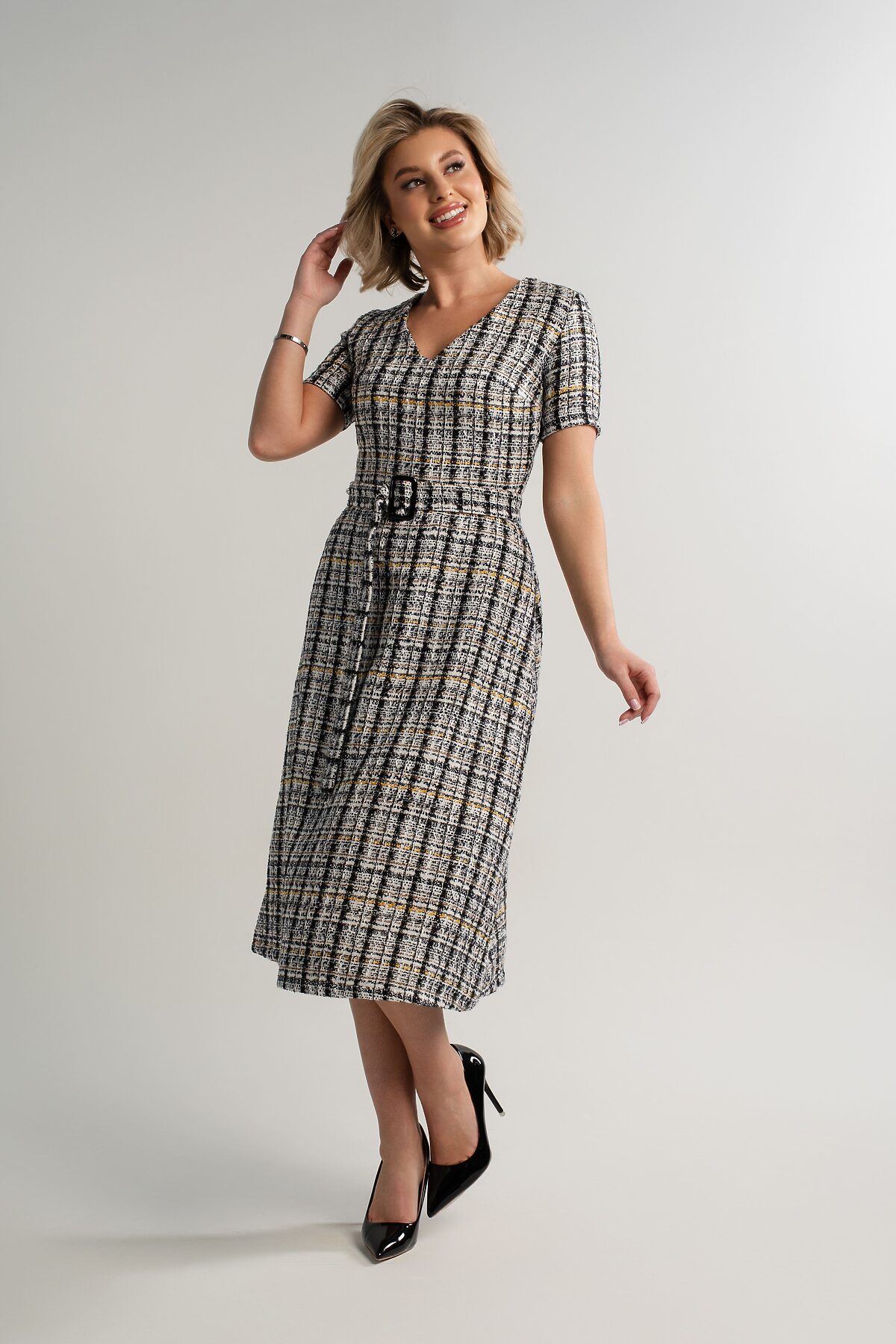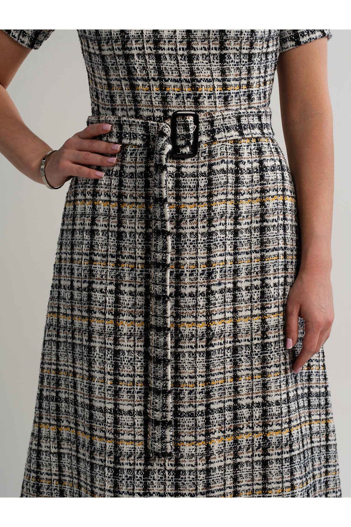 Твидовое женское платье — элегантное и универсальное решение для любого случая. V-образная горловина подчеркнет изящность, а отсутствие подкладки обеспечивает комфорт и легкость. Этот стильный наряд идеально дополнит ваш гардероб, придавая образу нотки утонченности и современного шика.