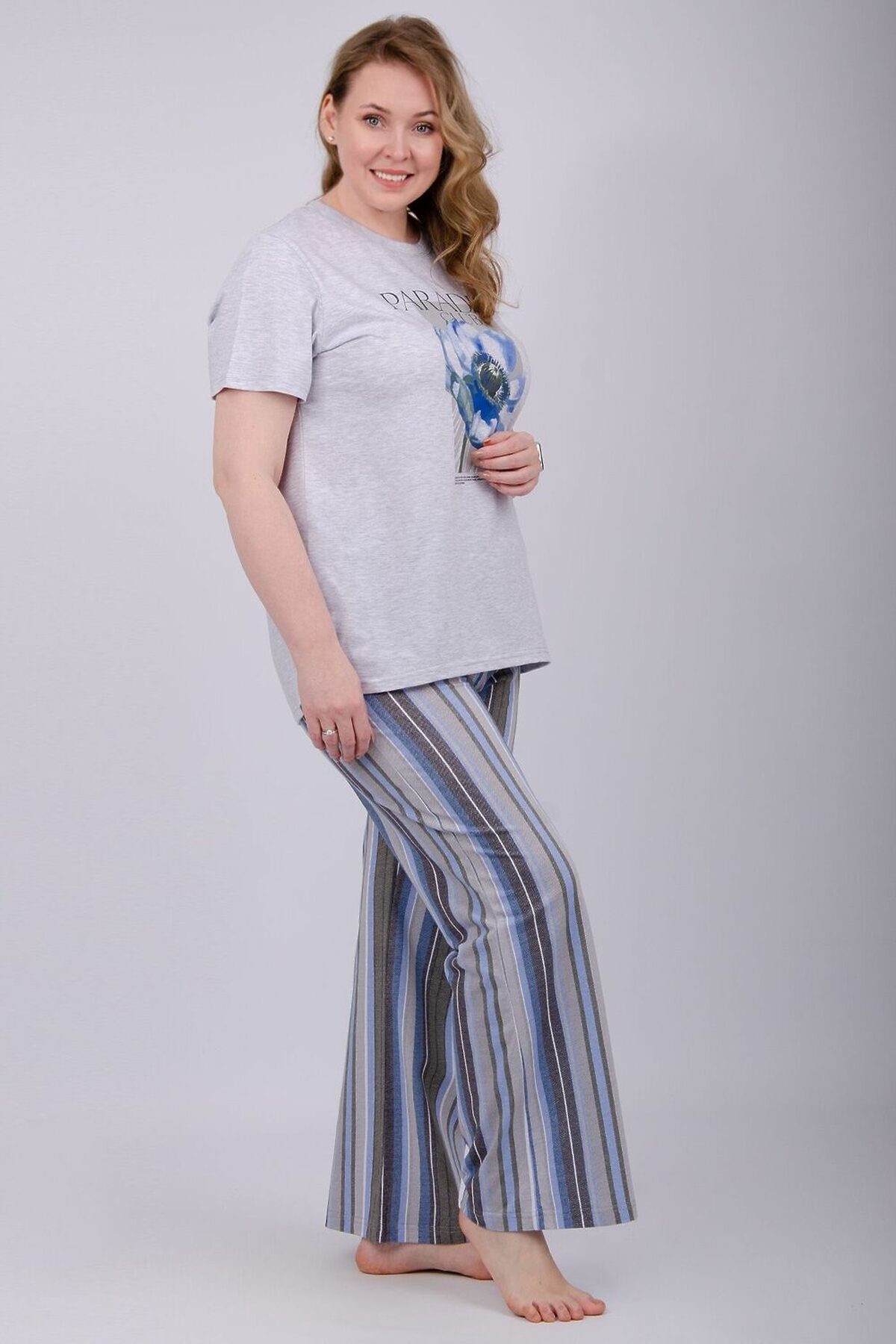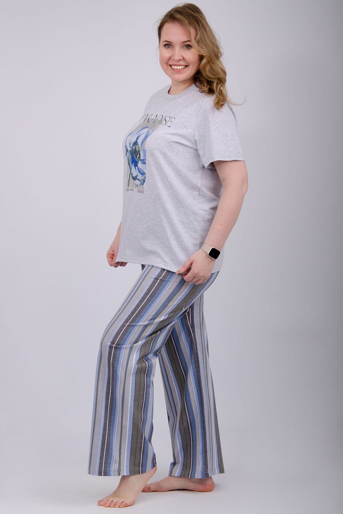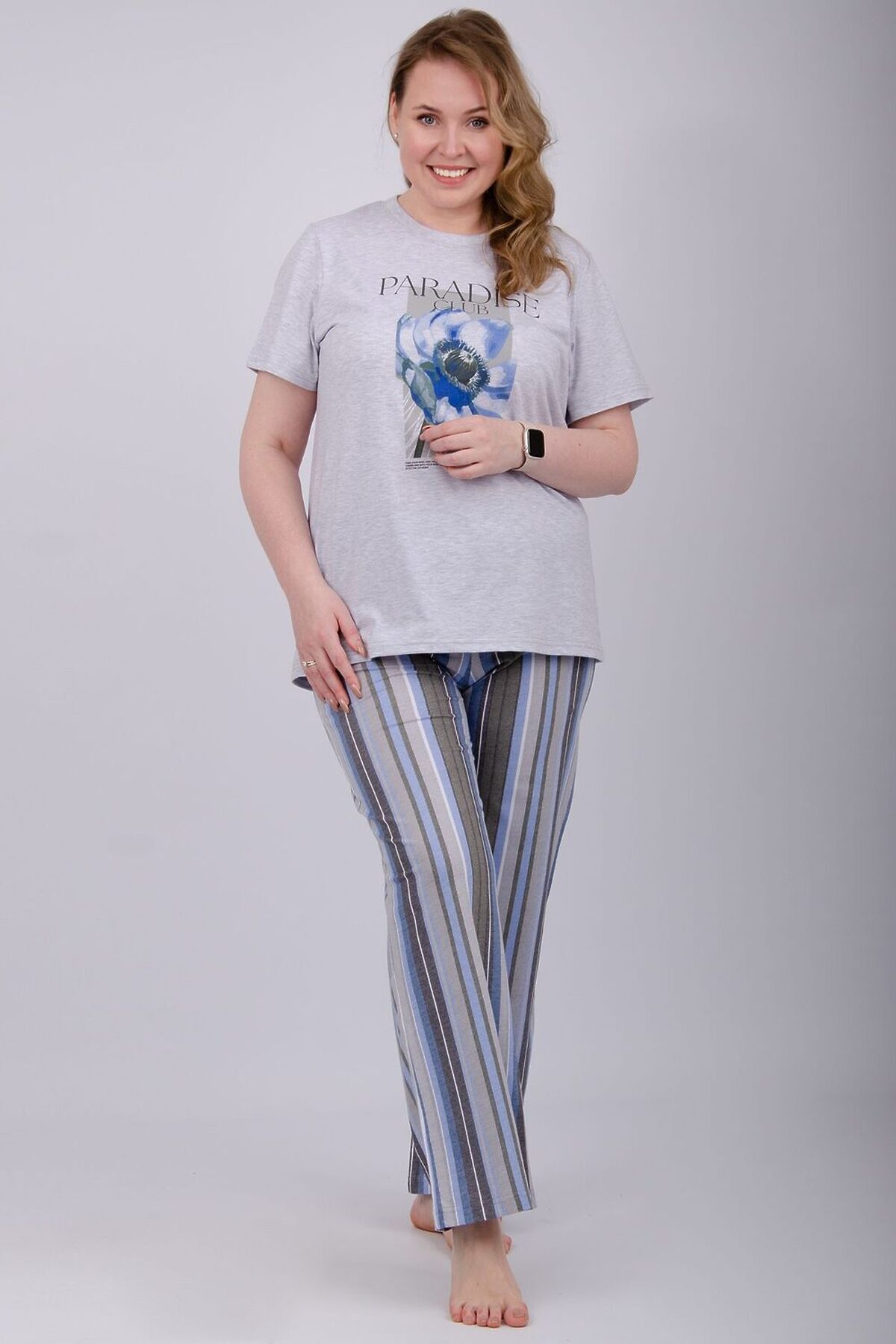 Пижама с брюками Флористика 2 НАТАЛИ, светло-серый