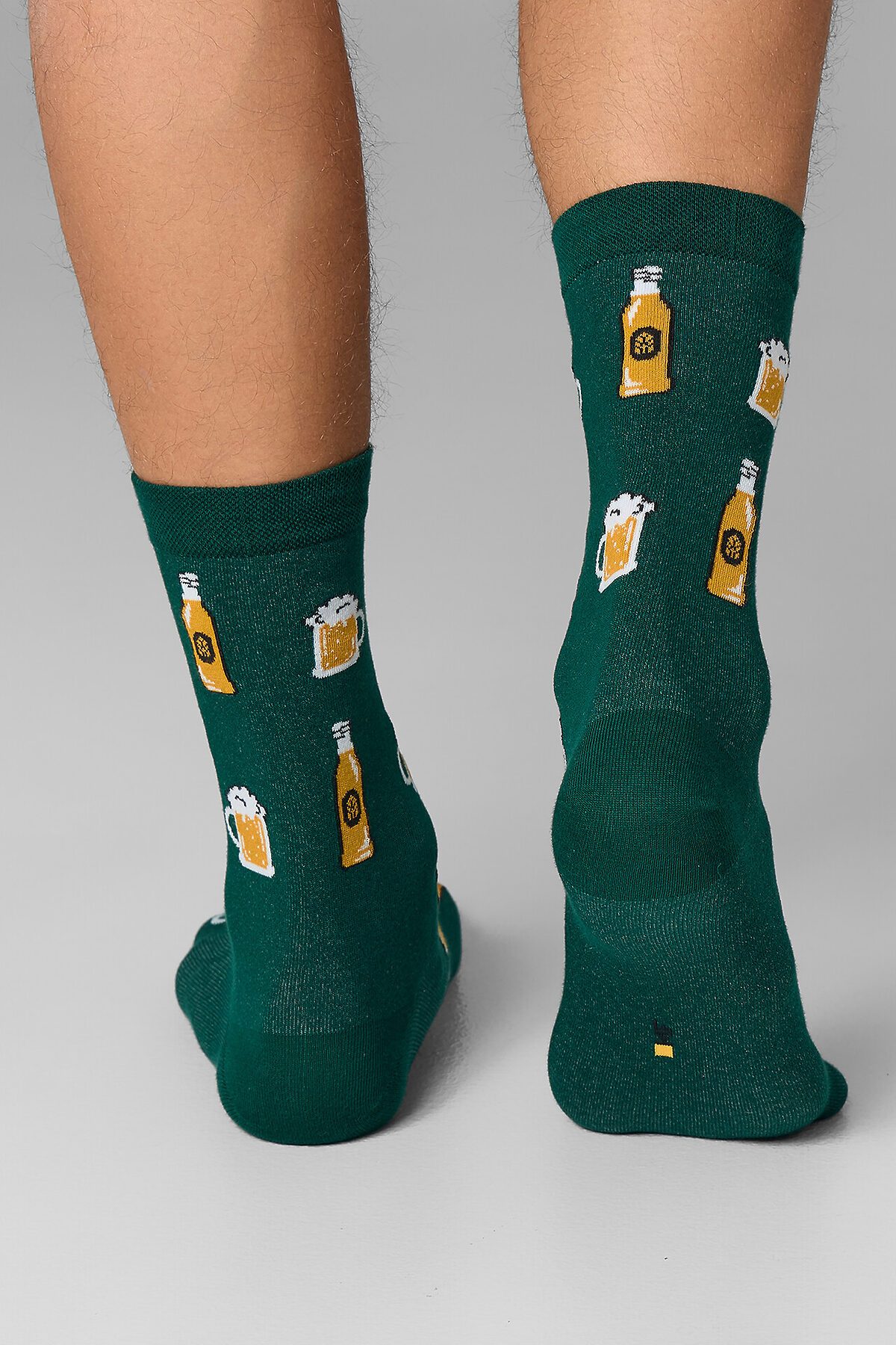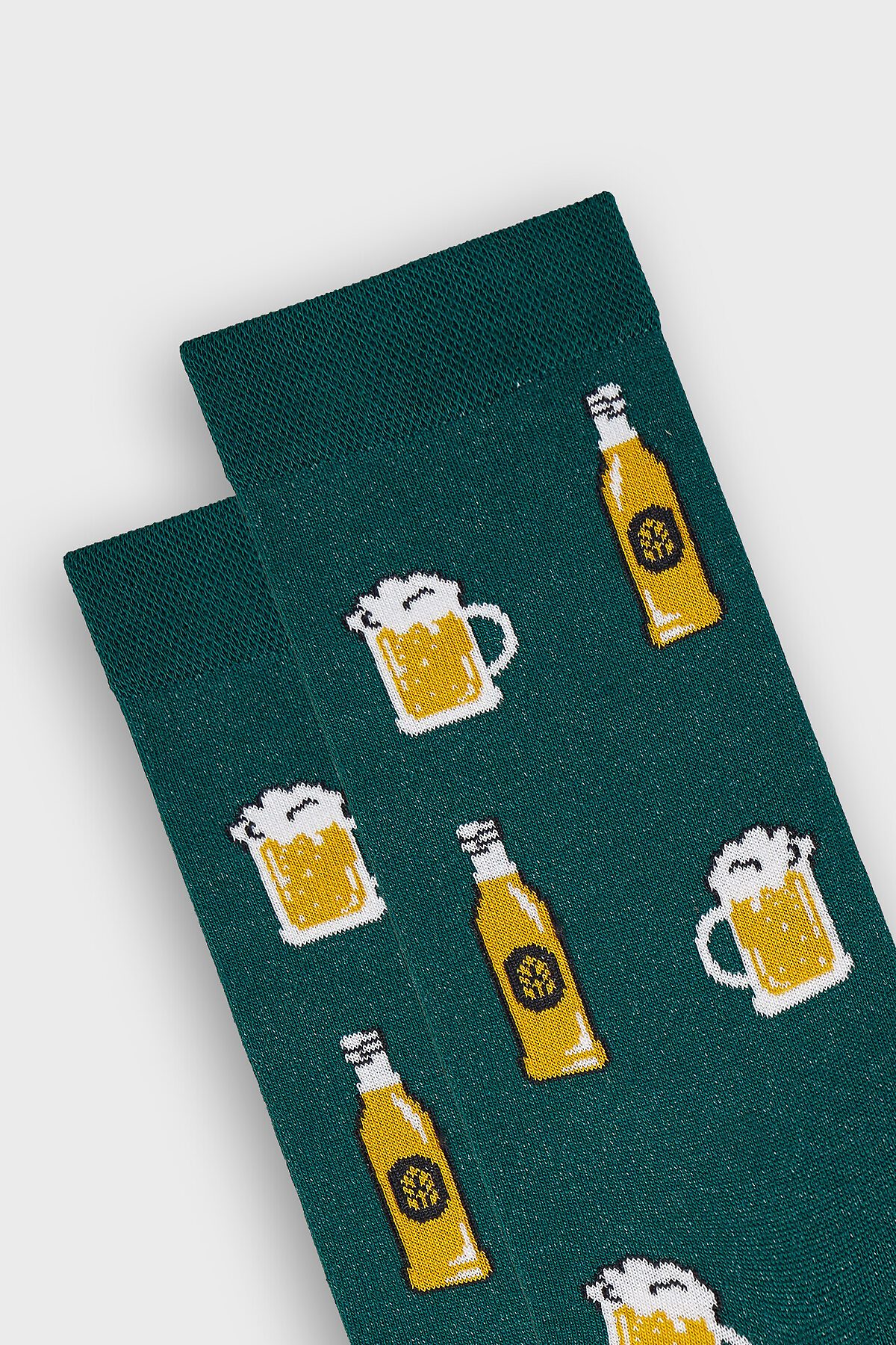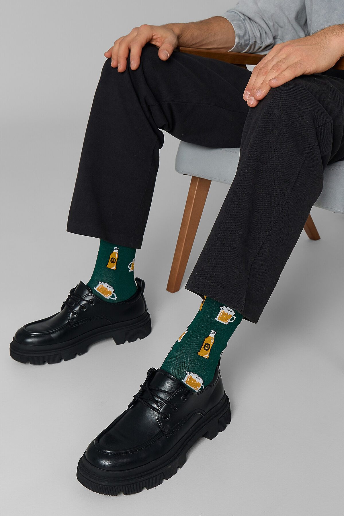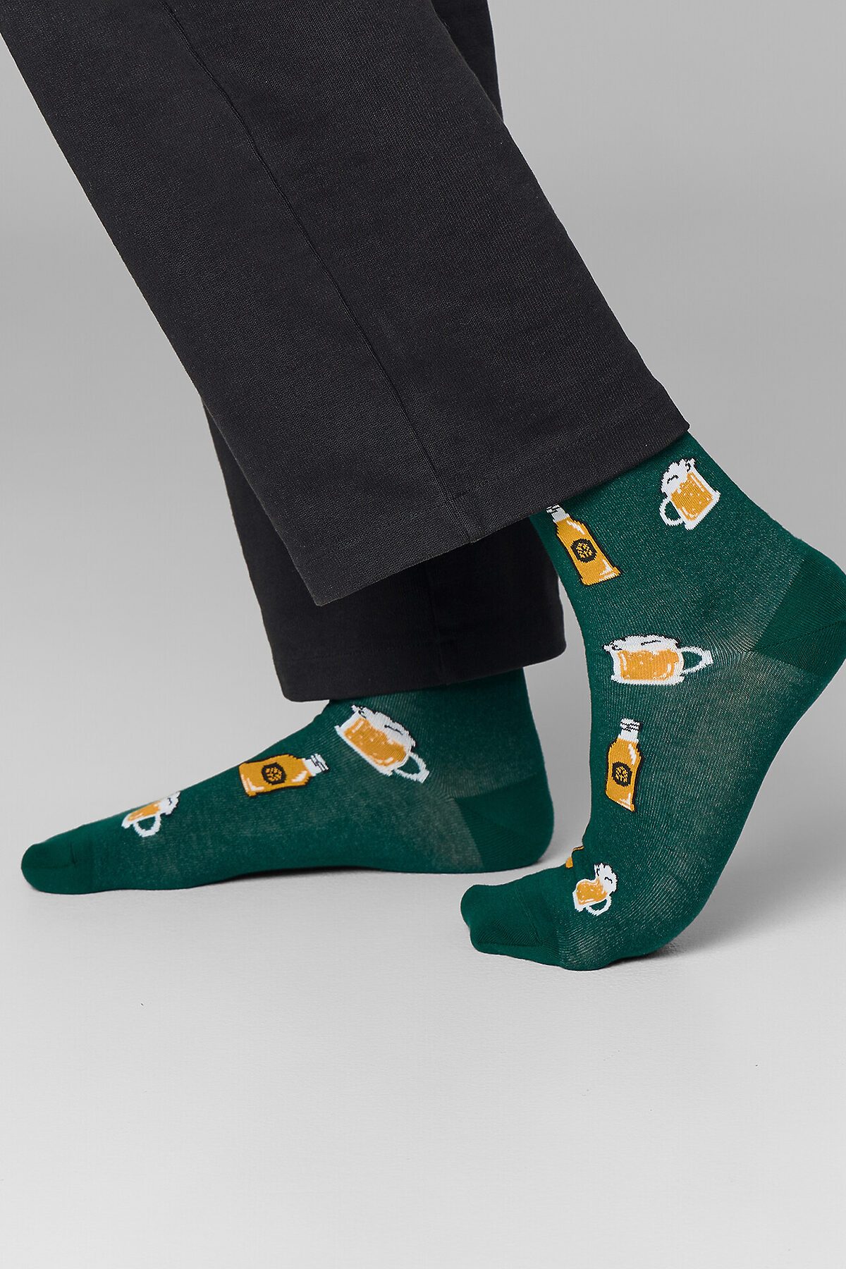 рис.1877 Мужской носок классический высокий с узкой резинкой и рисунком в виде пивных бокалов и бутылок.
