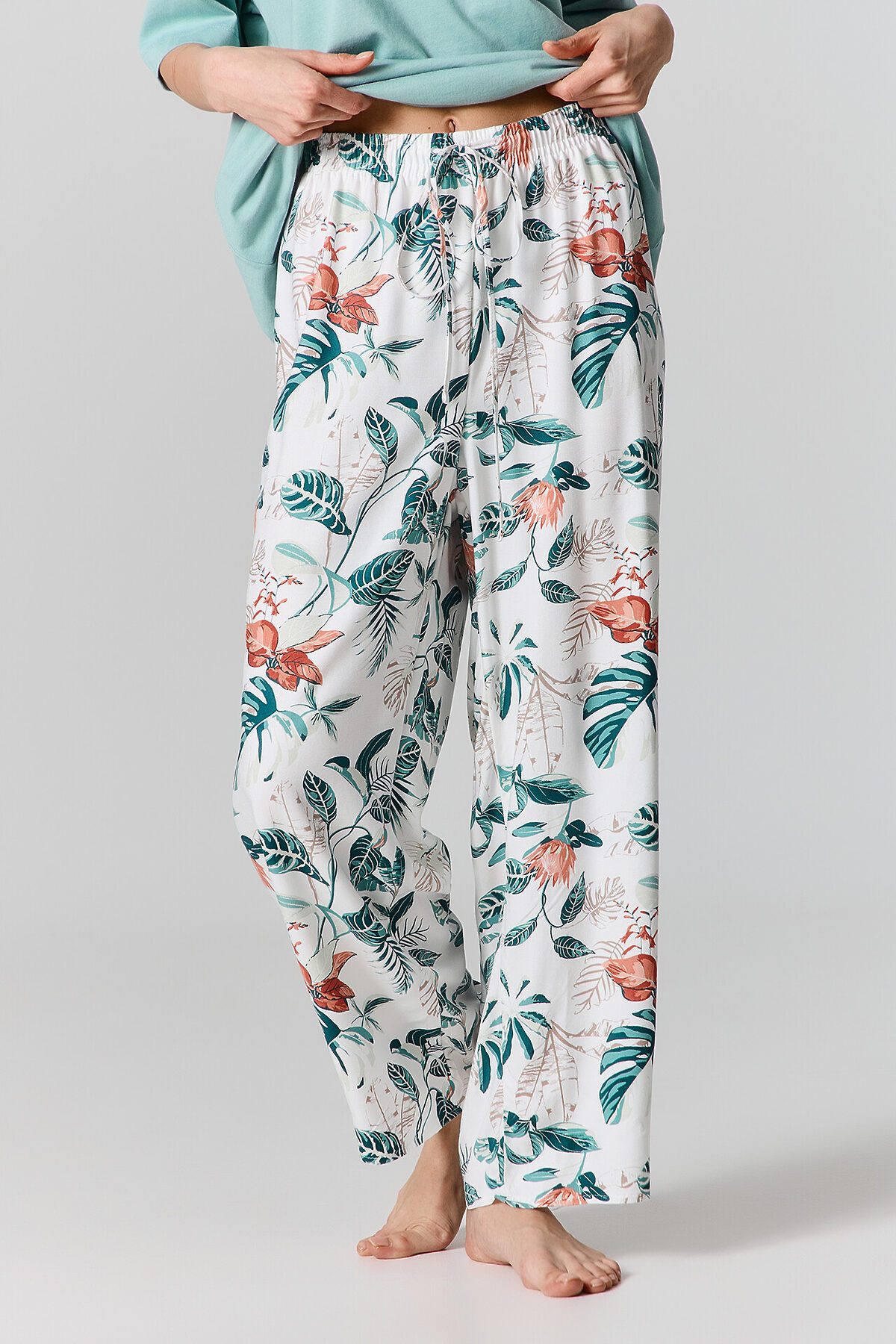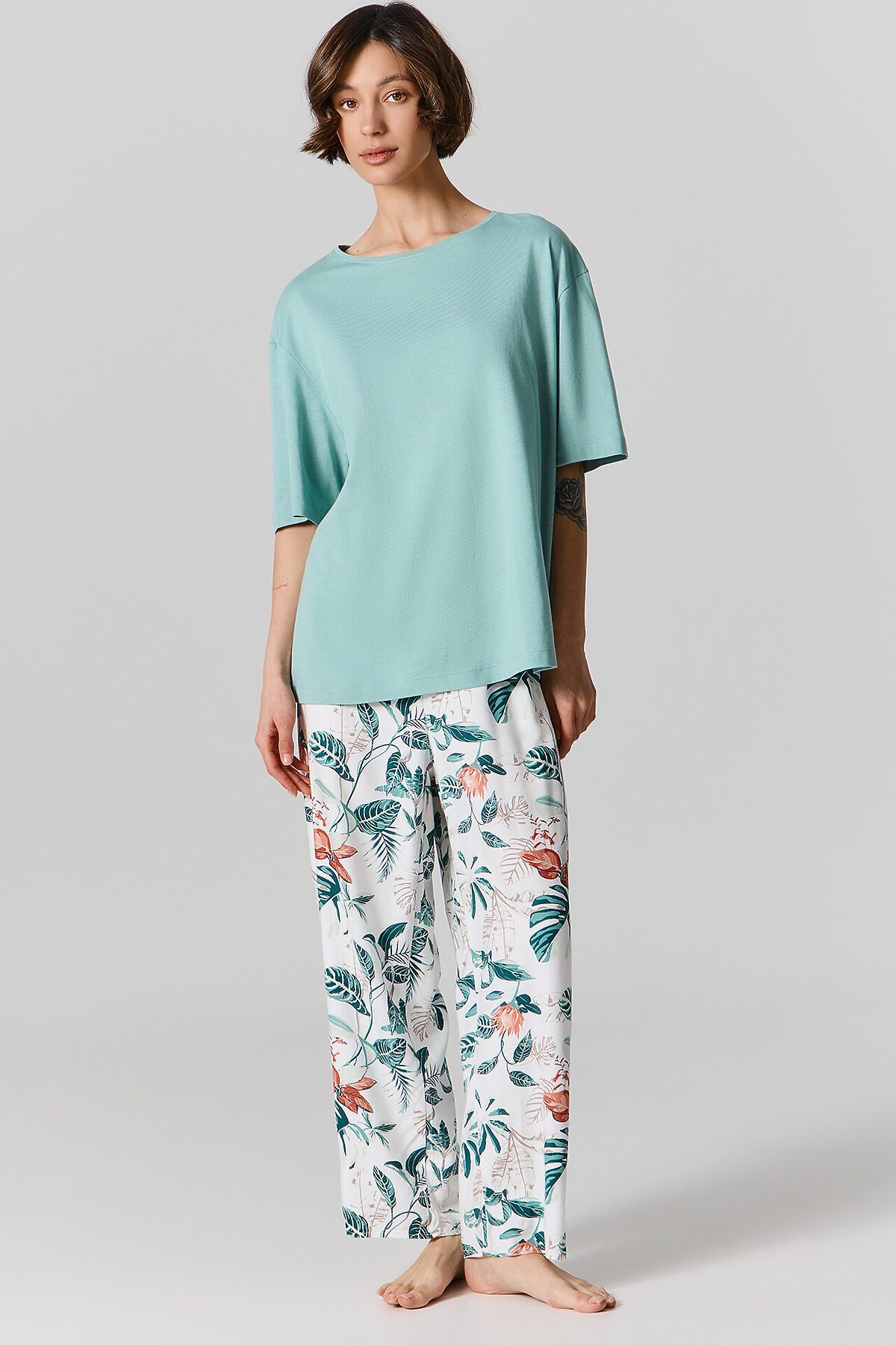 Комплект женский (футболка, бриджи) MARK FORMELLE, шалфей +тропики на св.молочном1