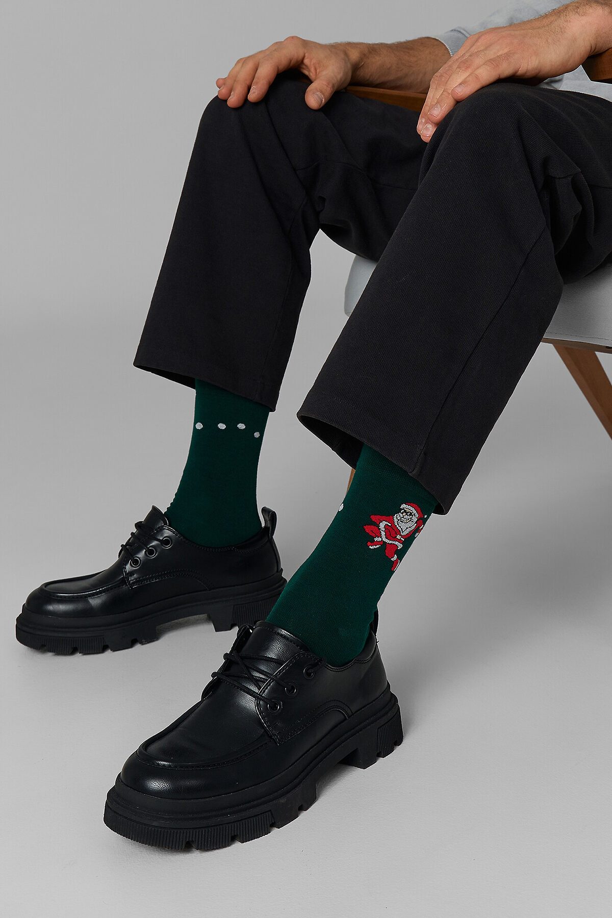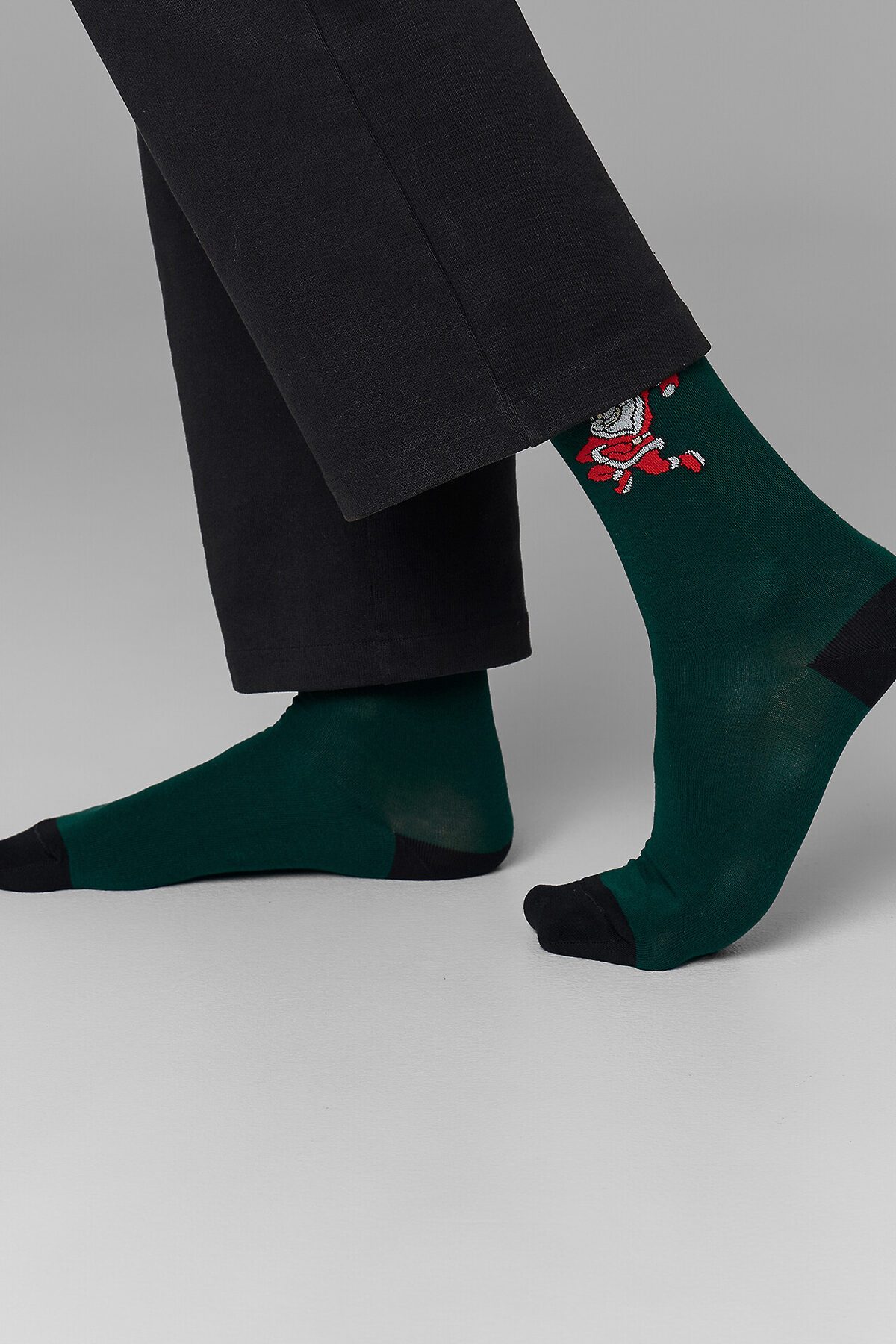 рис.3417 Мужской носок классический, высокий с рисунком в виде танцующего Деда Мороза.