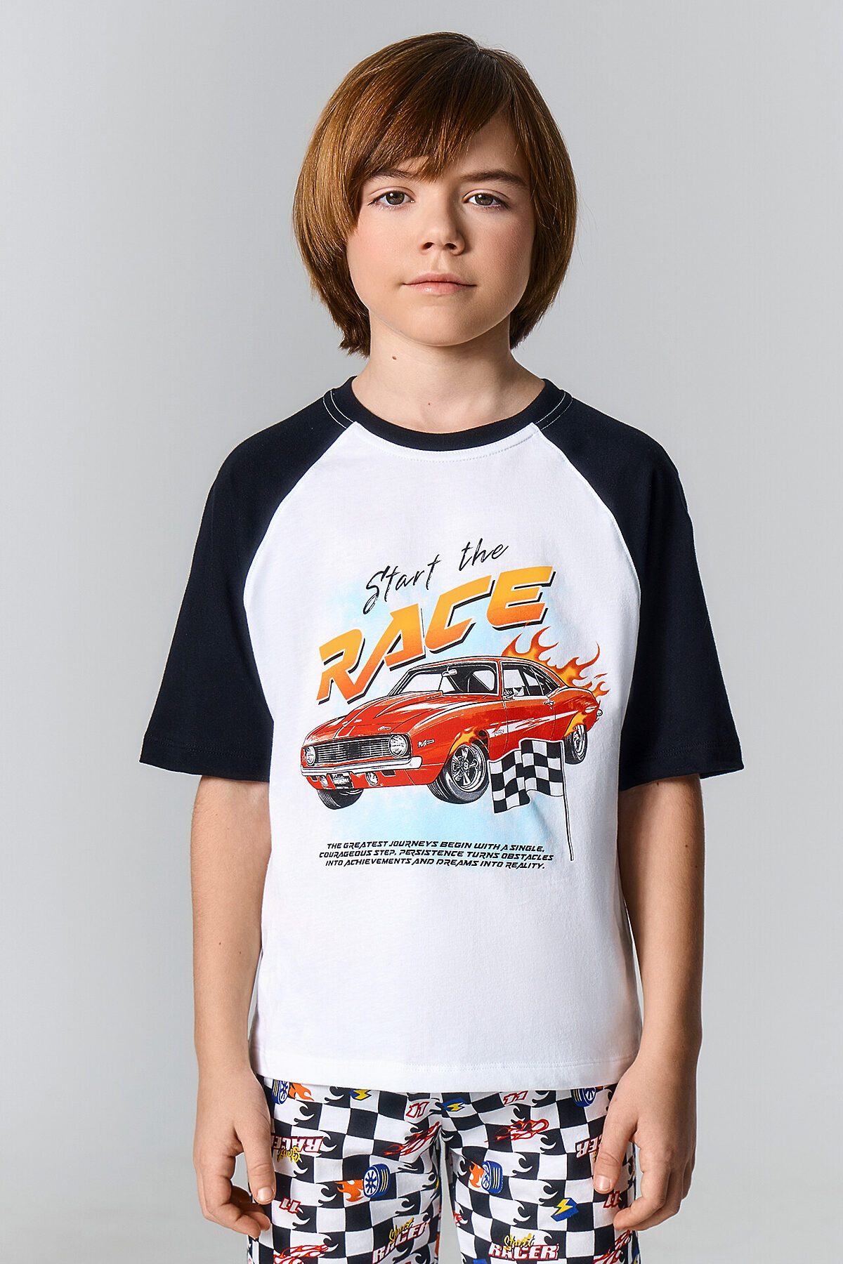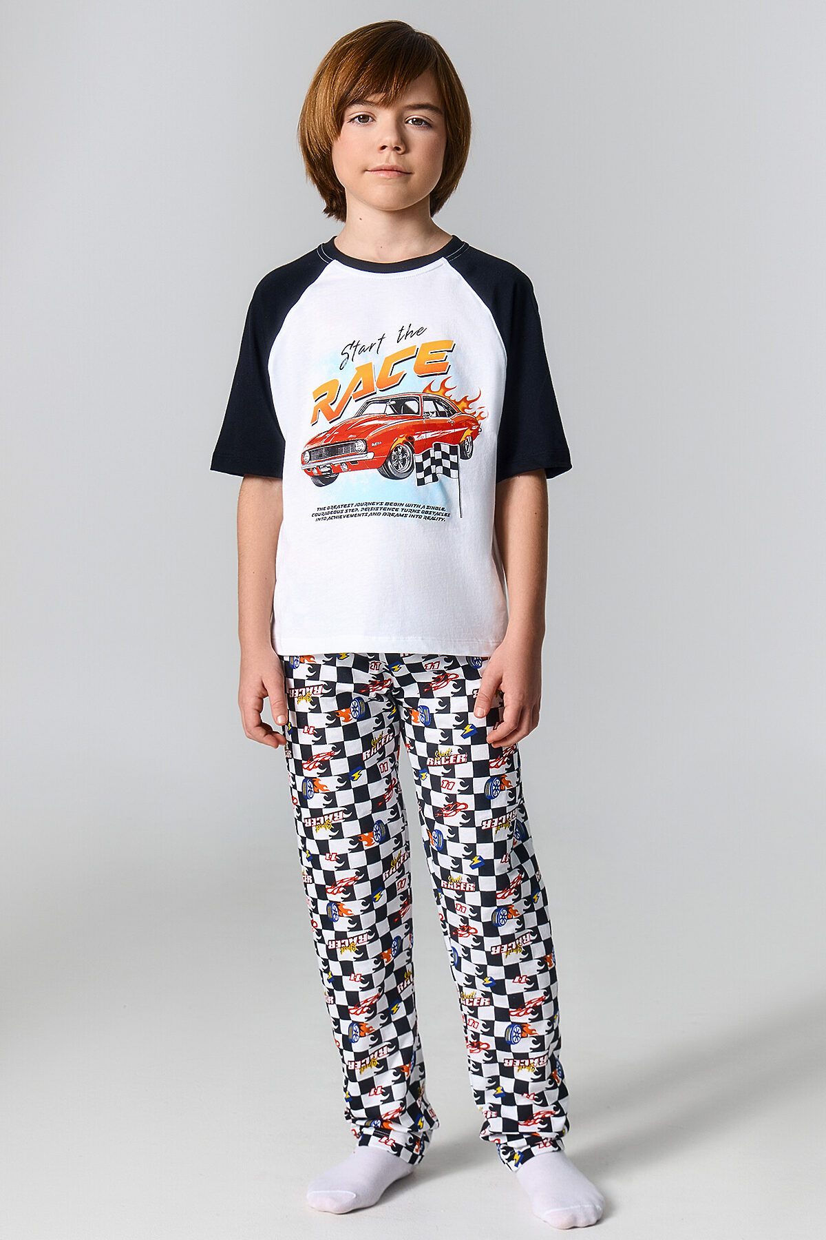 Комплект для мальчиков (джемпер, брюки) MARK FORMELLE, белый +гоночная клетка