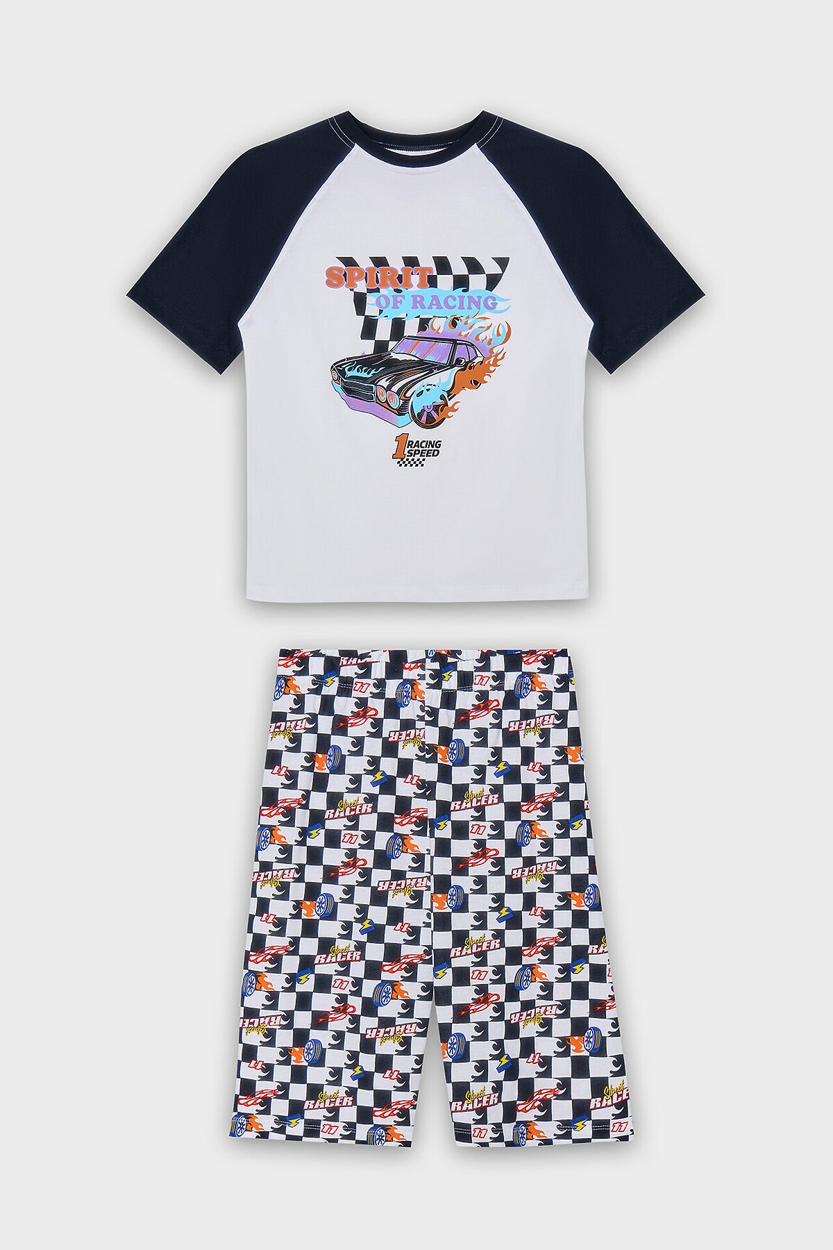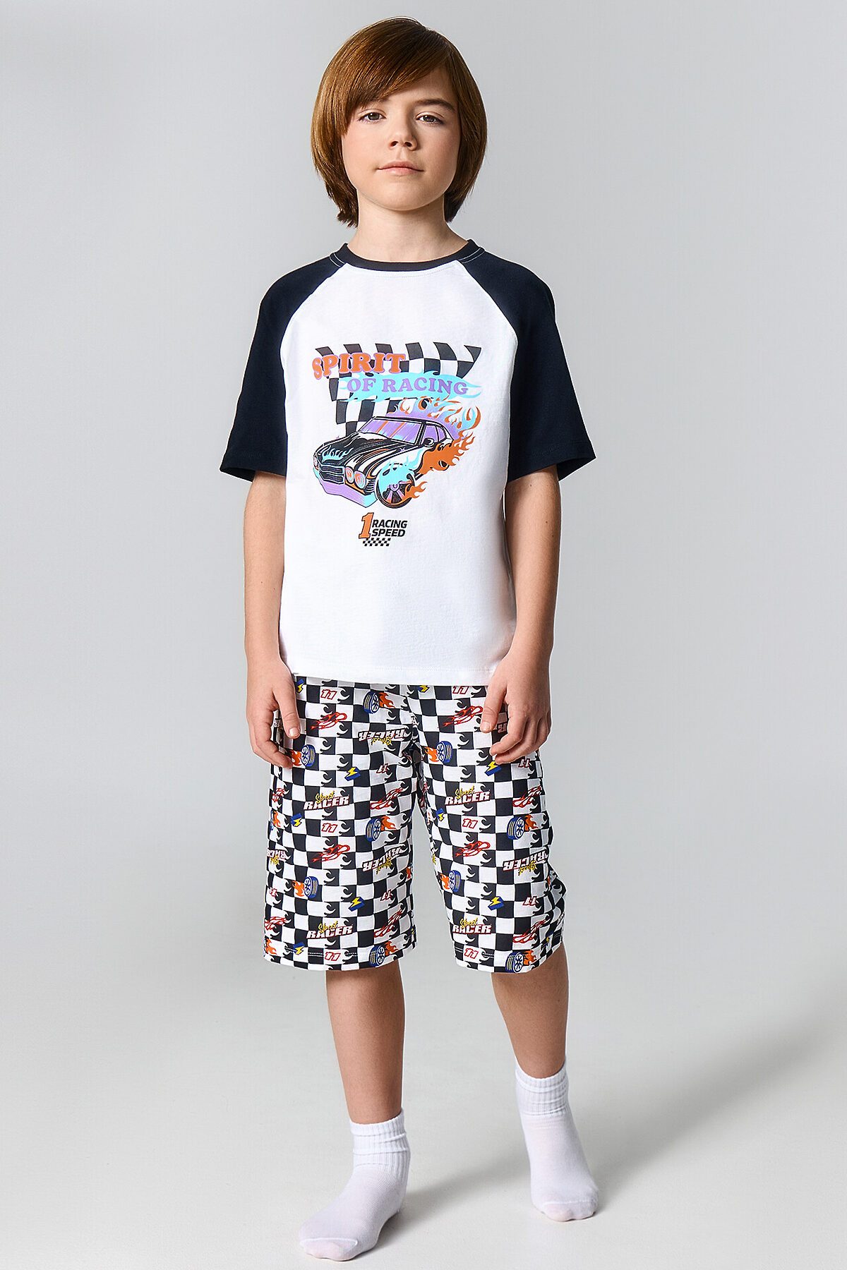 Комплект для мальчиков (джемпер, шорты) MARK FORMELLE, белый +гоночная клетка