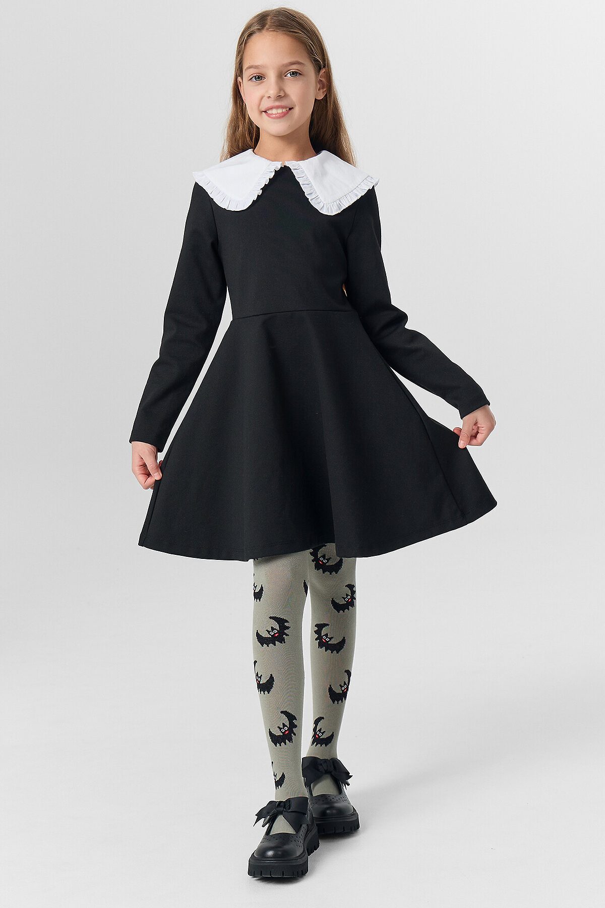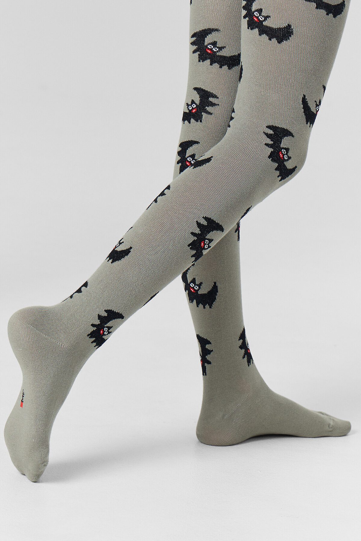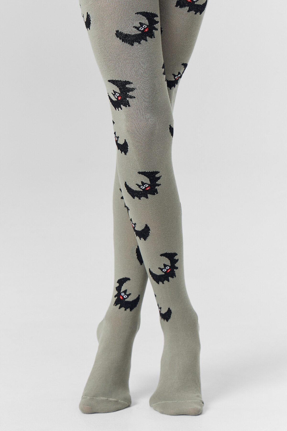 Рис.3390 Гладкие колготки с рисунком в виде летучих мышей и цветных пятки и мыска.
