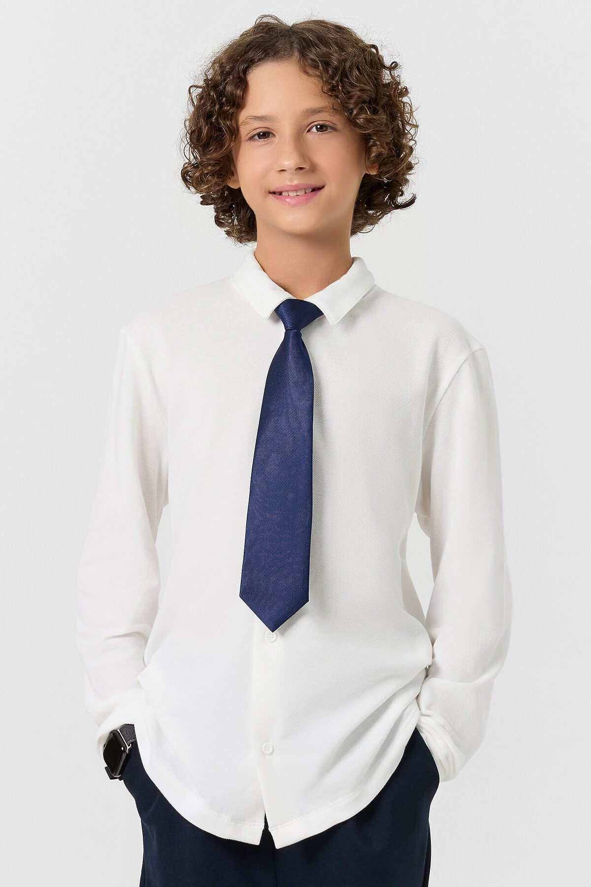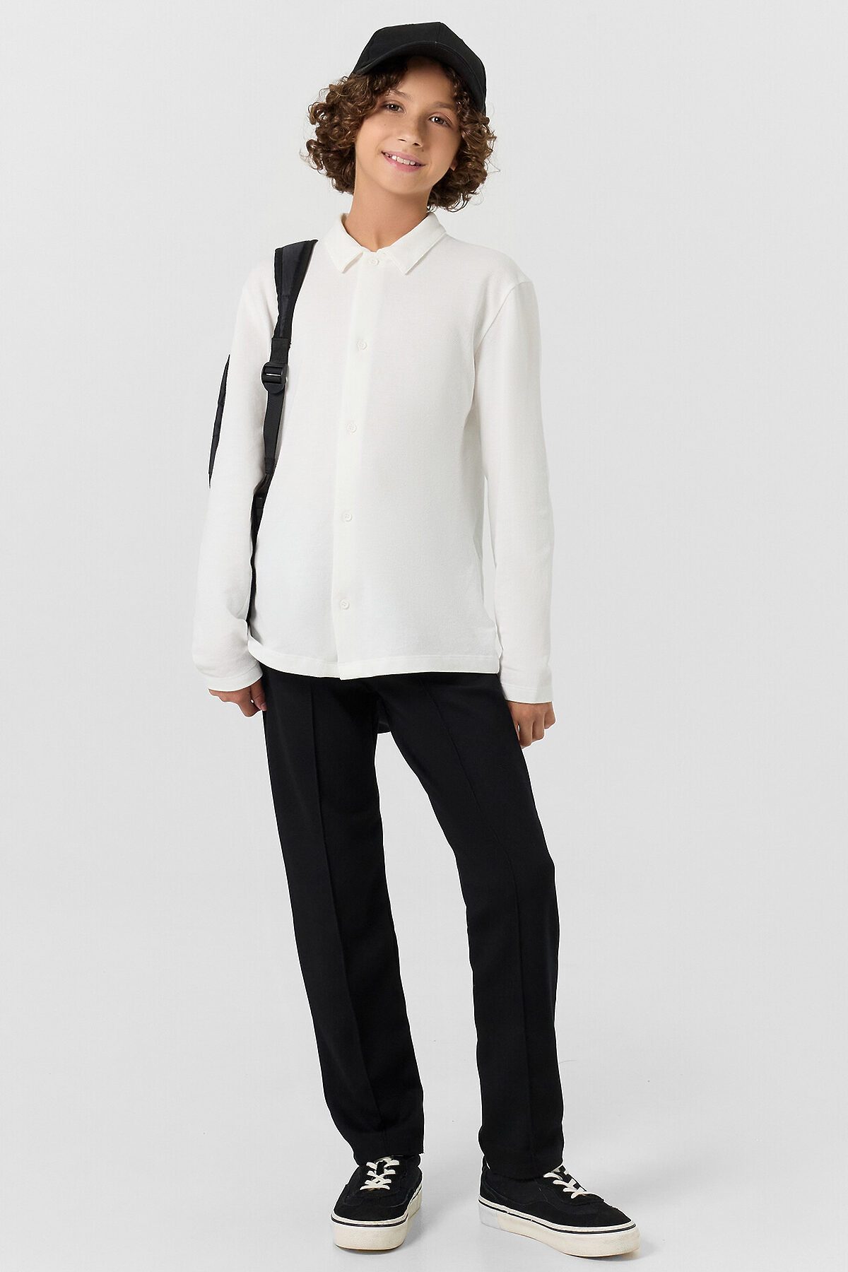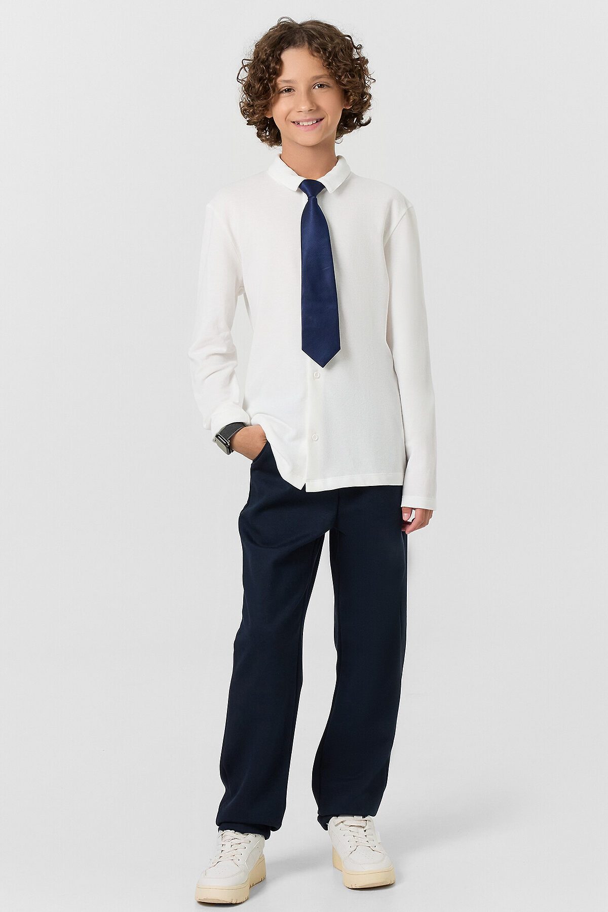 Сорочка прямого силуэта с воротником. Рукава длинные, втачные. По переду обработана застежка на пуговицы и петли. Низ изделия и рукавов обработаны на 2-х игольной плоскошовной машине швом в подгибку.