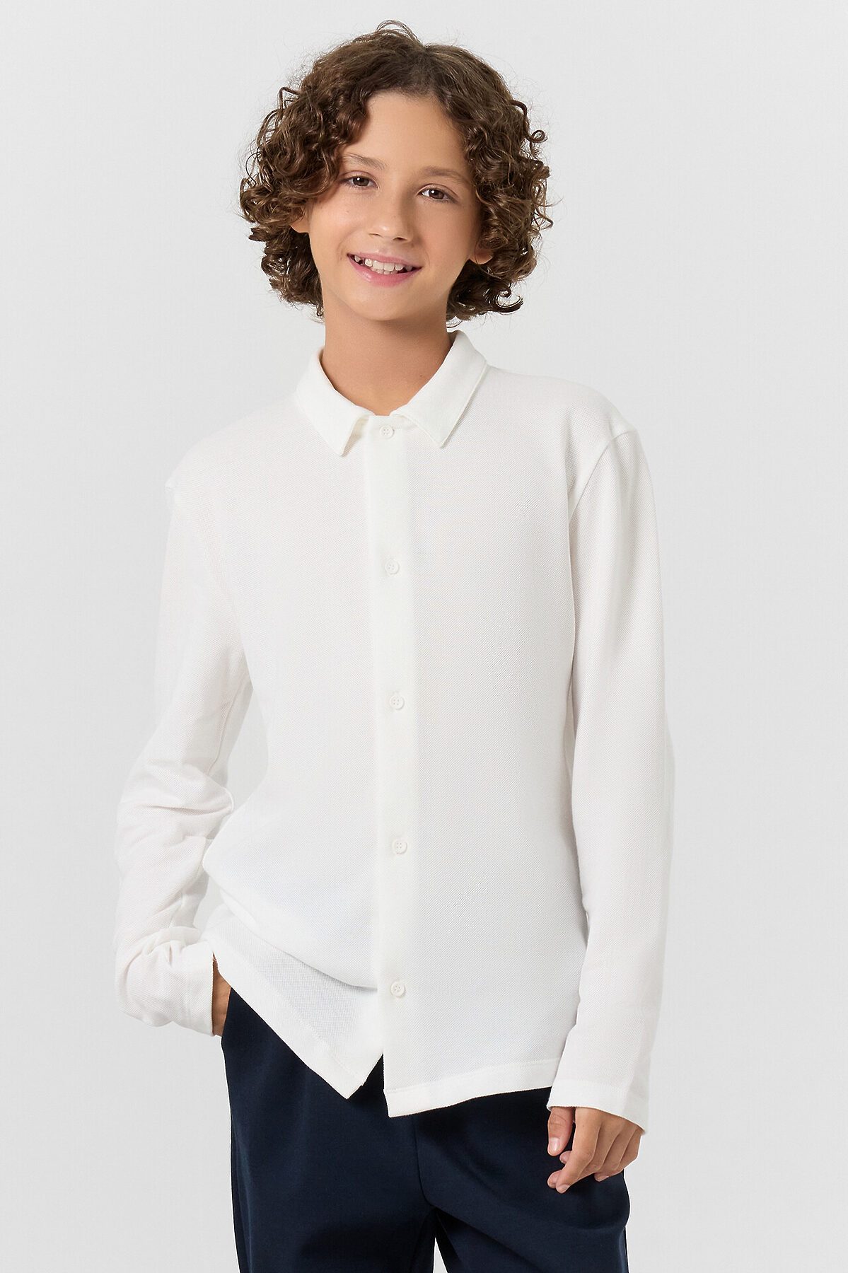 Сорочка прямого силуэта с воротником. Рукава длинные, втачные. По переду обработана застежка на пуговицы и петли. Низ изделия и рукавов обработаны на 2-х игольной плоскошовной машине швом в подгибку.