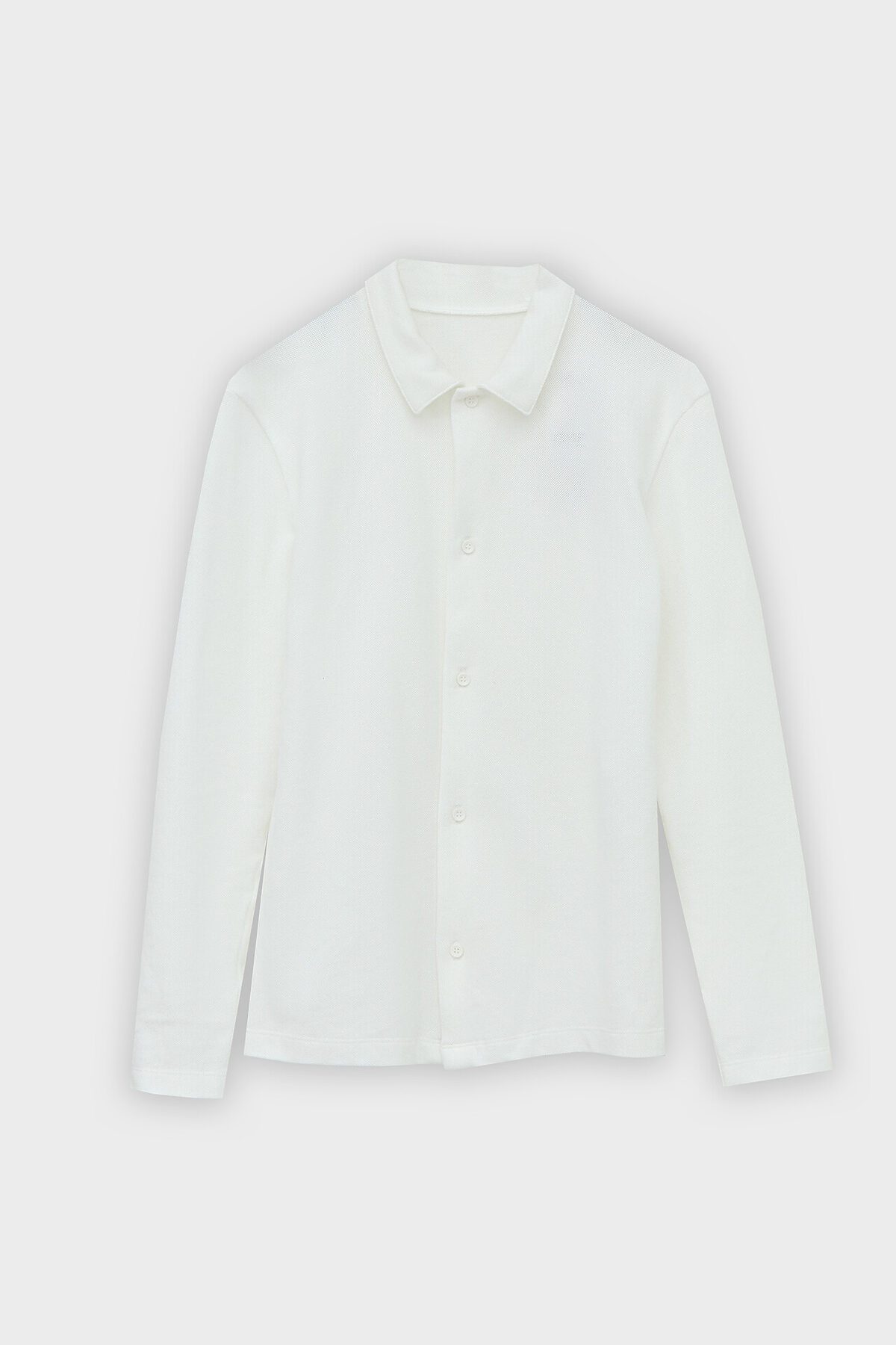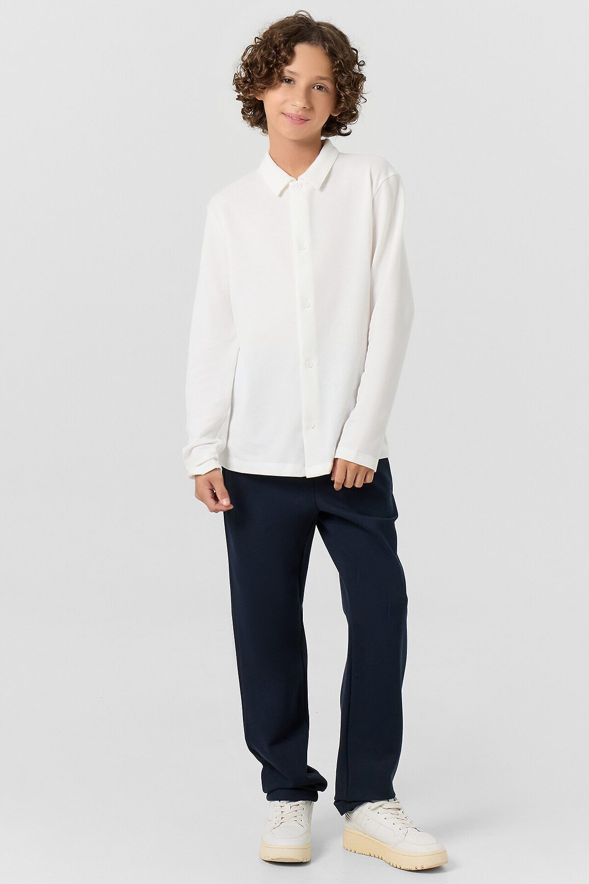 Сорочка прямого силуэта с воротником. Рукава длинные, втачные. По переду обработана застежка на пуговицы и петли. Низ изделия и рукавов обработаны на 2-х игольной плоскошовной машине швом в подгибку.