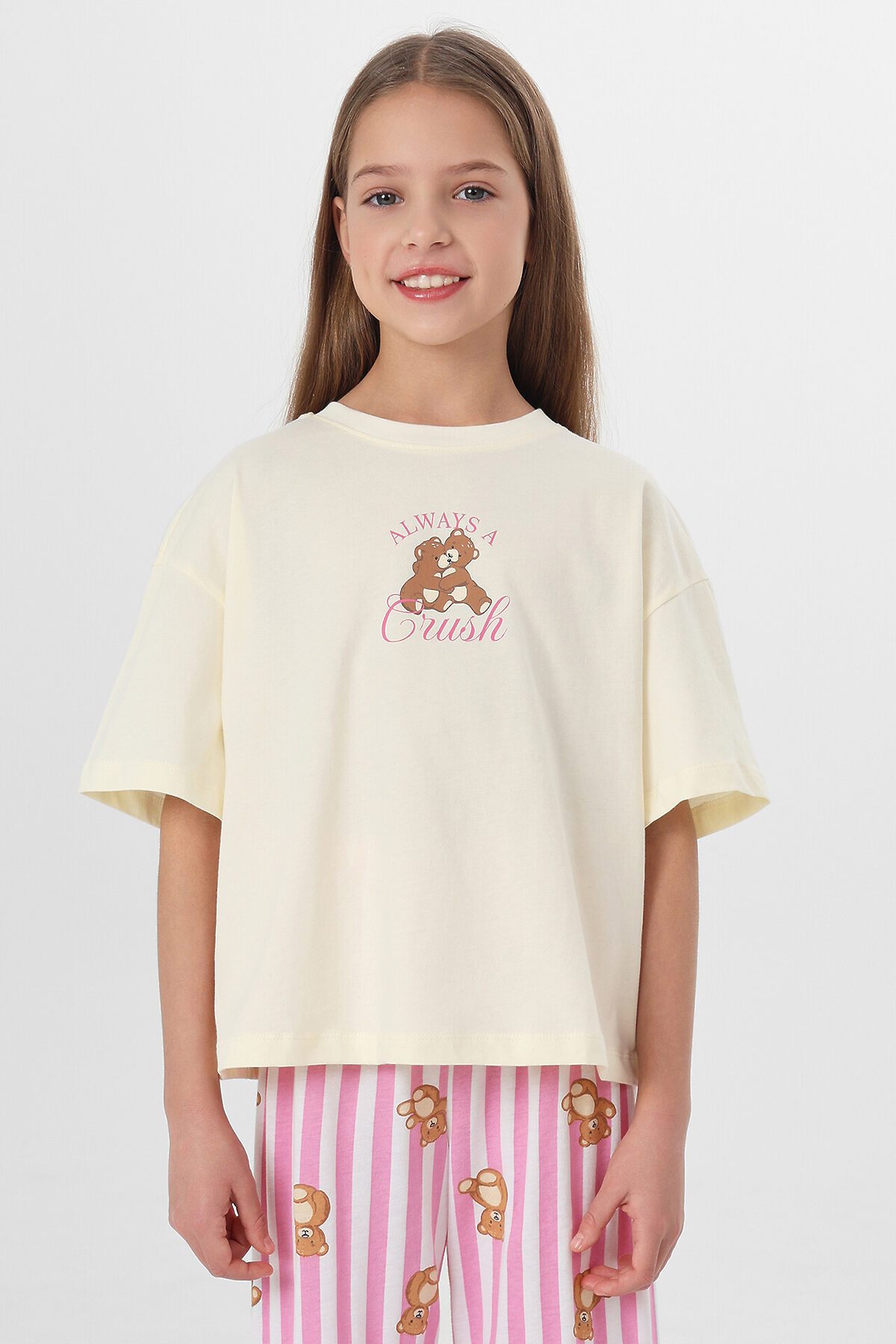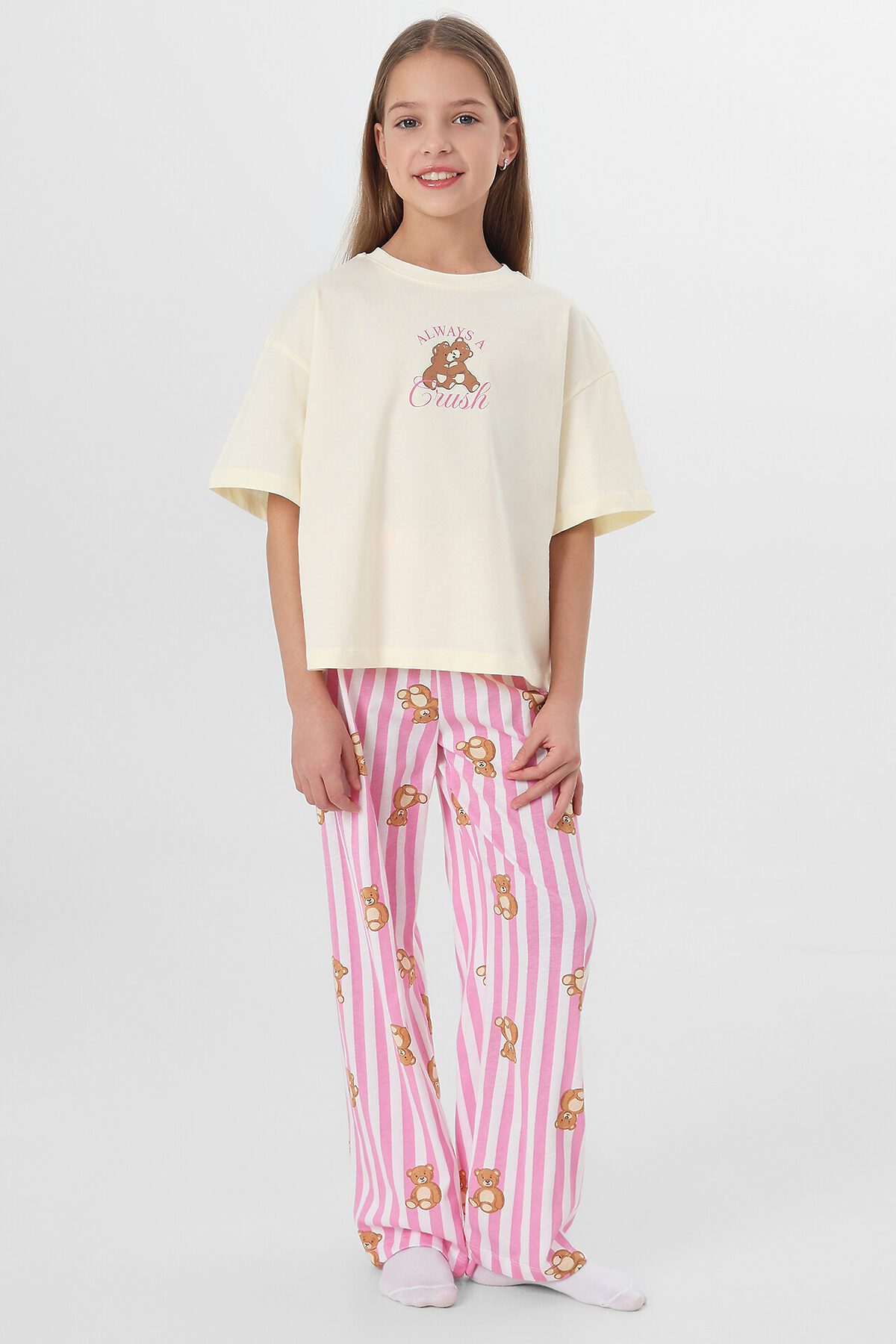 Комплект для девочек (футболка, брюки) MARK FORMELLE, бежевый +медведи на полоске