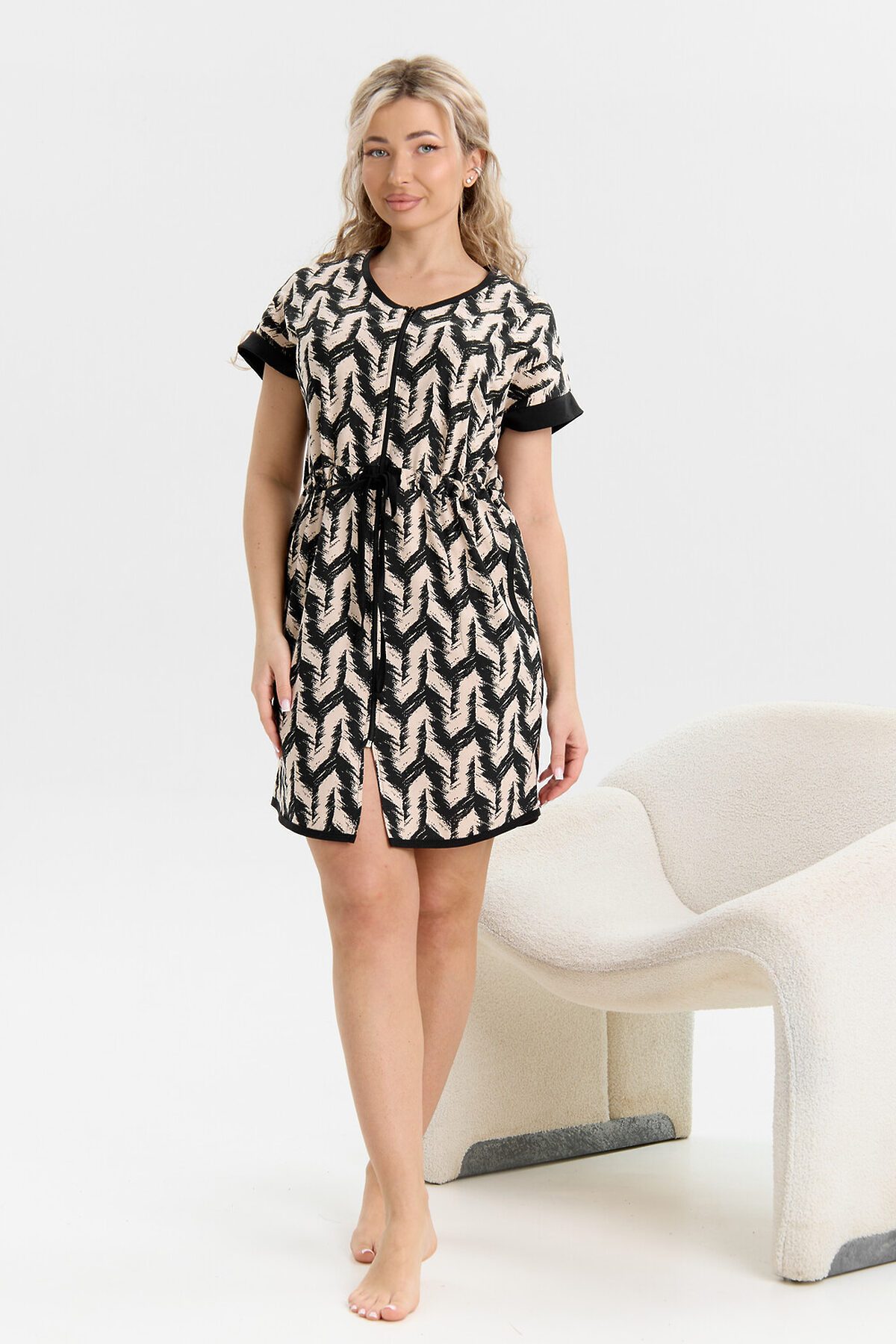 Женский трикотажный халат на молнии без сомнения станет самой желанной и любимой вещью в гардеробе любой дамы. Халатик укороченный, на кулисе со шнурком, с удобными карманами и молнией. Выглядит стильно и современно. Халатик такого плана подходит для фигур разного типа. Легкий и мягкий, качественный, дышащий, сшит из высококачественного трикотажа, подарит вам абсолютную непринужденность и легкость, простор в движении, идеально подойдет для беременных и кормящих и будет хорошим сопровождением в роддом и не вызовет раздражения, так как создан из натуральной ткани. Благодаря этому может стать прекрасным подарком для, мамы, подруги, бабушки, сестры или коллеги на любой праздник. Отлично сядет на женщин больших размеров. Данная модель будет кстати для отдыха на даче и даже поездки к морю. Домашняя одежда российского производства, имеет комфортную посадку, не линяет, не дает усадку после стирки и долго сохраняет первоначальный внешний вид. Халатик подчеркнет Ваш стиль и добавит молодежных нот в ваш образ, а затягивающийся пояс на талии придаст женственности и изящества вашему луку. Стирайте изделия из хлопка на бережном режиме с температурой не выше 30С, чтобы сохранить цвет, форму и фактуру материала. Приобретая наши изделия, радуйте себя и своих близких. Ориентируясь по таблице замеров, обратите внимание, что замеры длины рукава проводились от точки основания шеи.