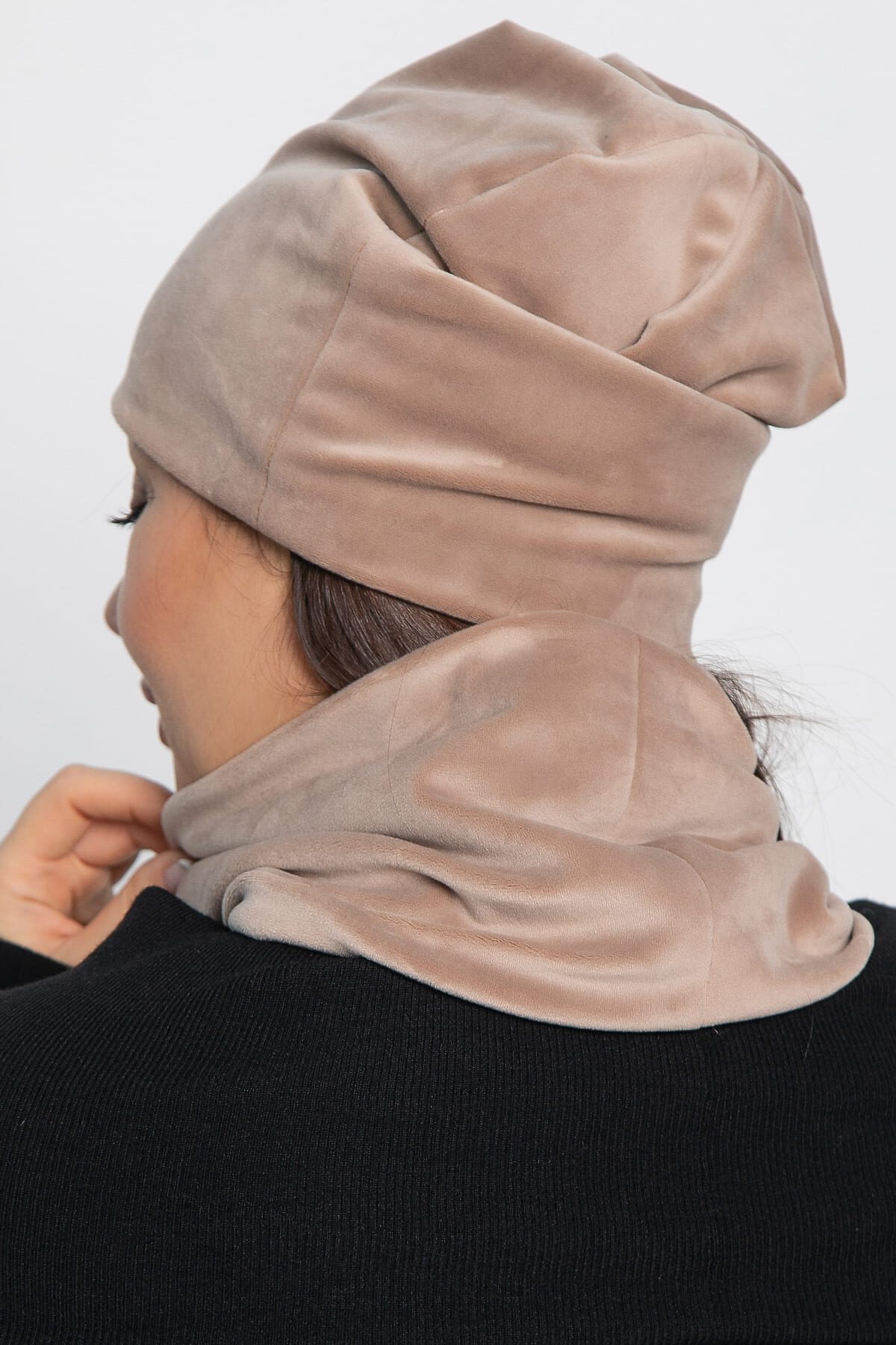 Комплект шапка шестиклинка и снуд LADY TAIGA, бежевый
