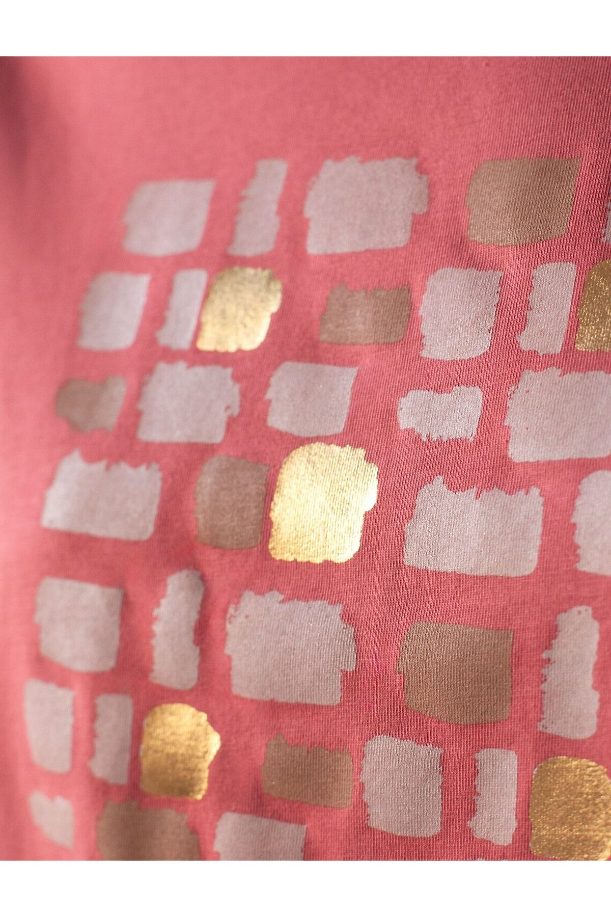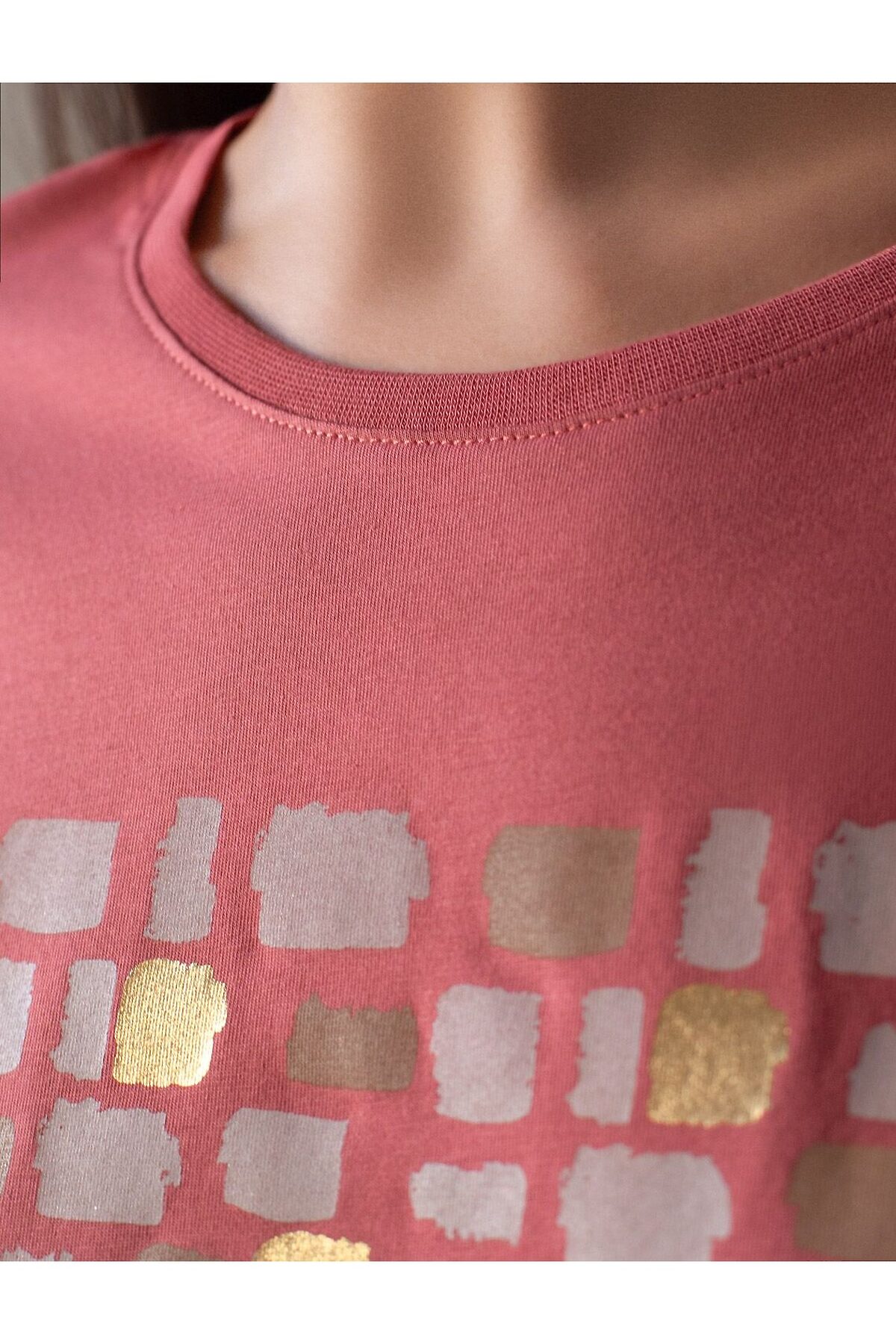 Модная футболка темно-кораллового цвета привлекает внимание своим интересным дизайном и ярким принтом. Благодаря прямому крою изделие комфортно садится на любую фигуру, в том числе на большие размеры, и не сковывает движений. Круглый вырез подчеркивает современный стиль, а натуральный материал из хлопка с добавлением эластана обеспечивает удобство в повседневной носке и приятные тактильные ощущения. Прочность и износостойкая структура сохраняет первоначальную форму футболки после множества стирок. Рукава имеют аккуратные подгибы, что придает изделию завершенность и помогает сохранять аккуратный внешний вид. Принт в виде бликов нанесен золотистыми красками с устойчивым покрытием. Стильная футболка гармонично вписывается в любой гардероб и подойдет для прогулок, отдыха дома или неформальных встреч. Благодаря особенностям кроя модель хорошо сидит, скрывая недостатки и подчеркивая достоинства. Удобная футболка идеально сочетается с базовыми вещами, позволяя создавать новые интересные образы каждый день