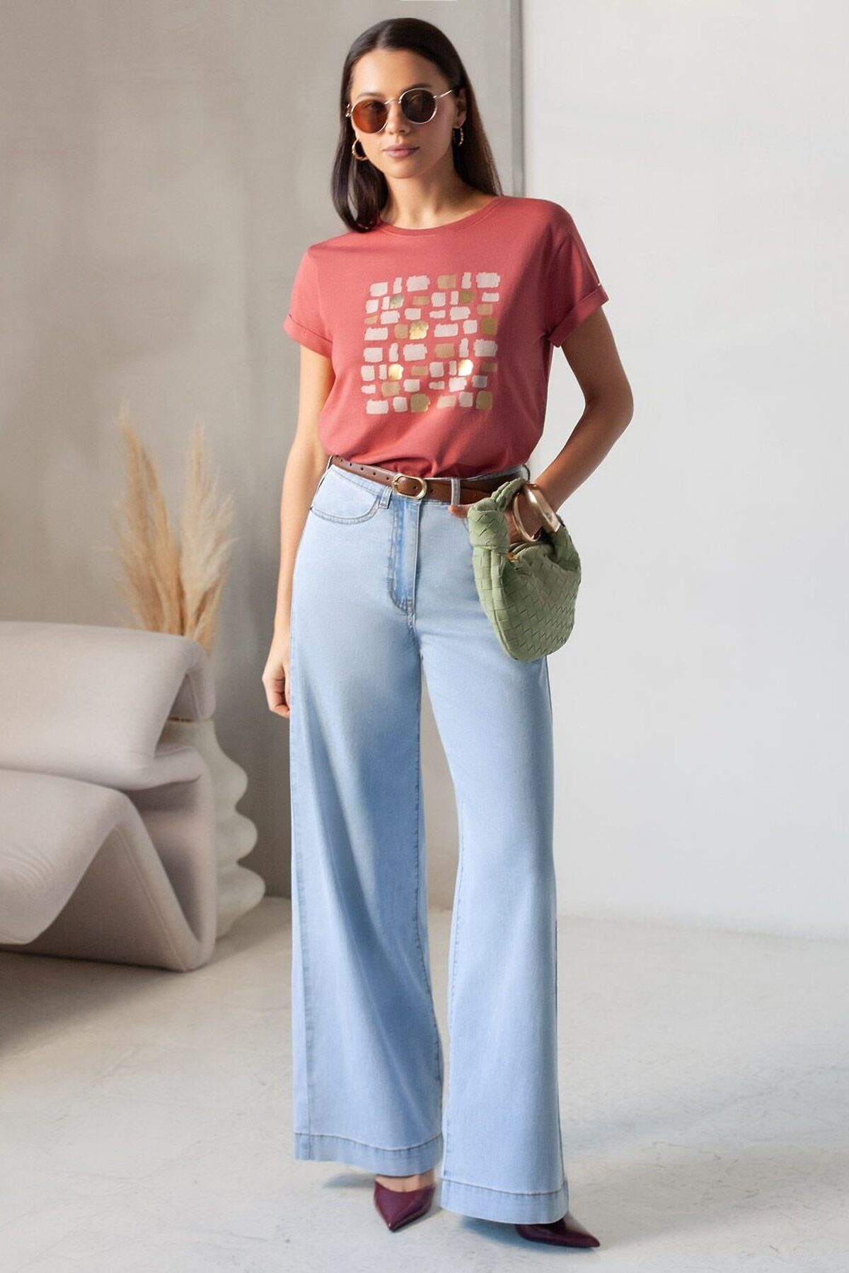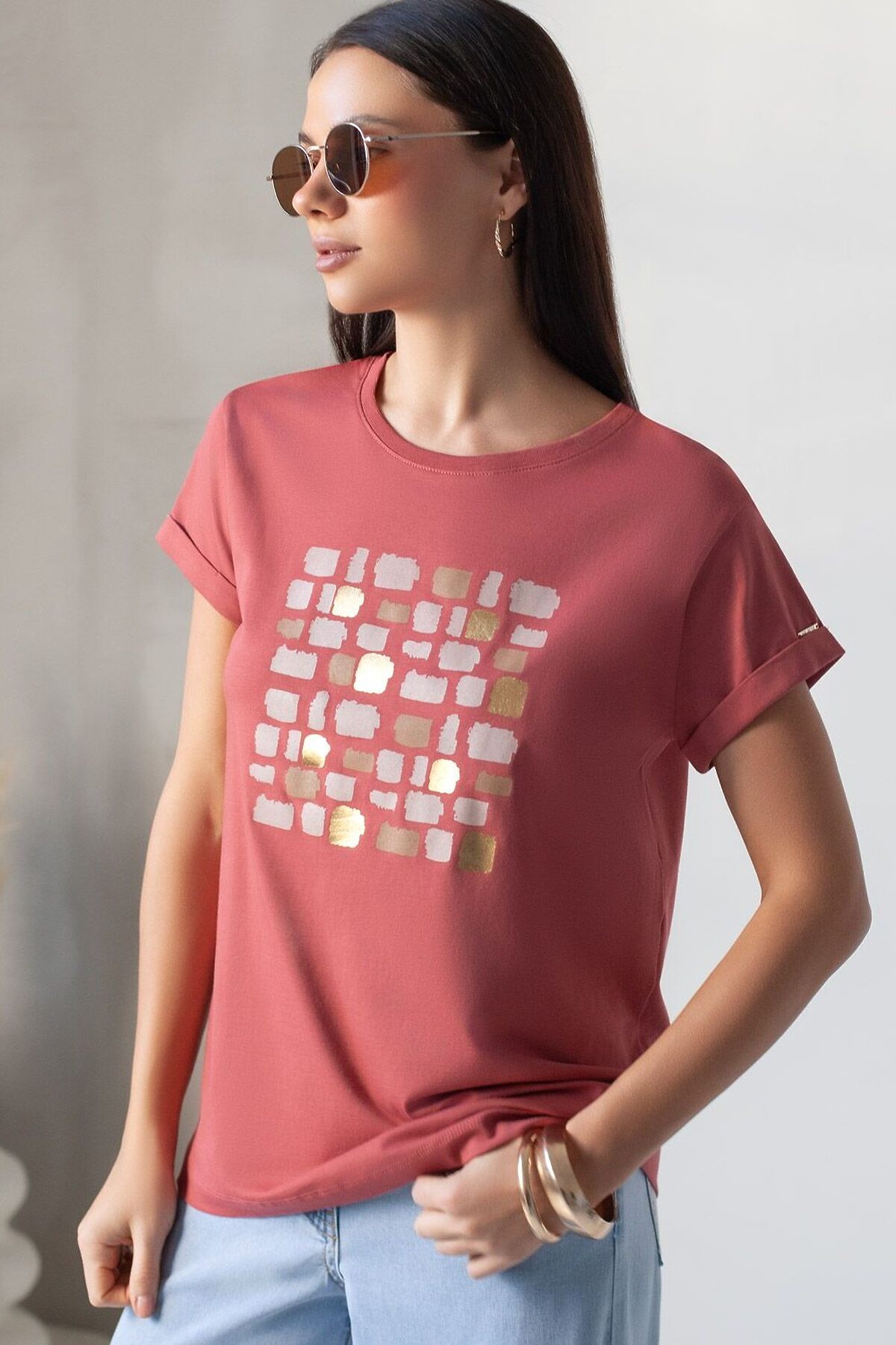 Свободная футболка с принтом из премиального хлопка с эластаном VILATTE, т.коралл_блики
