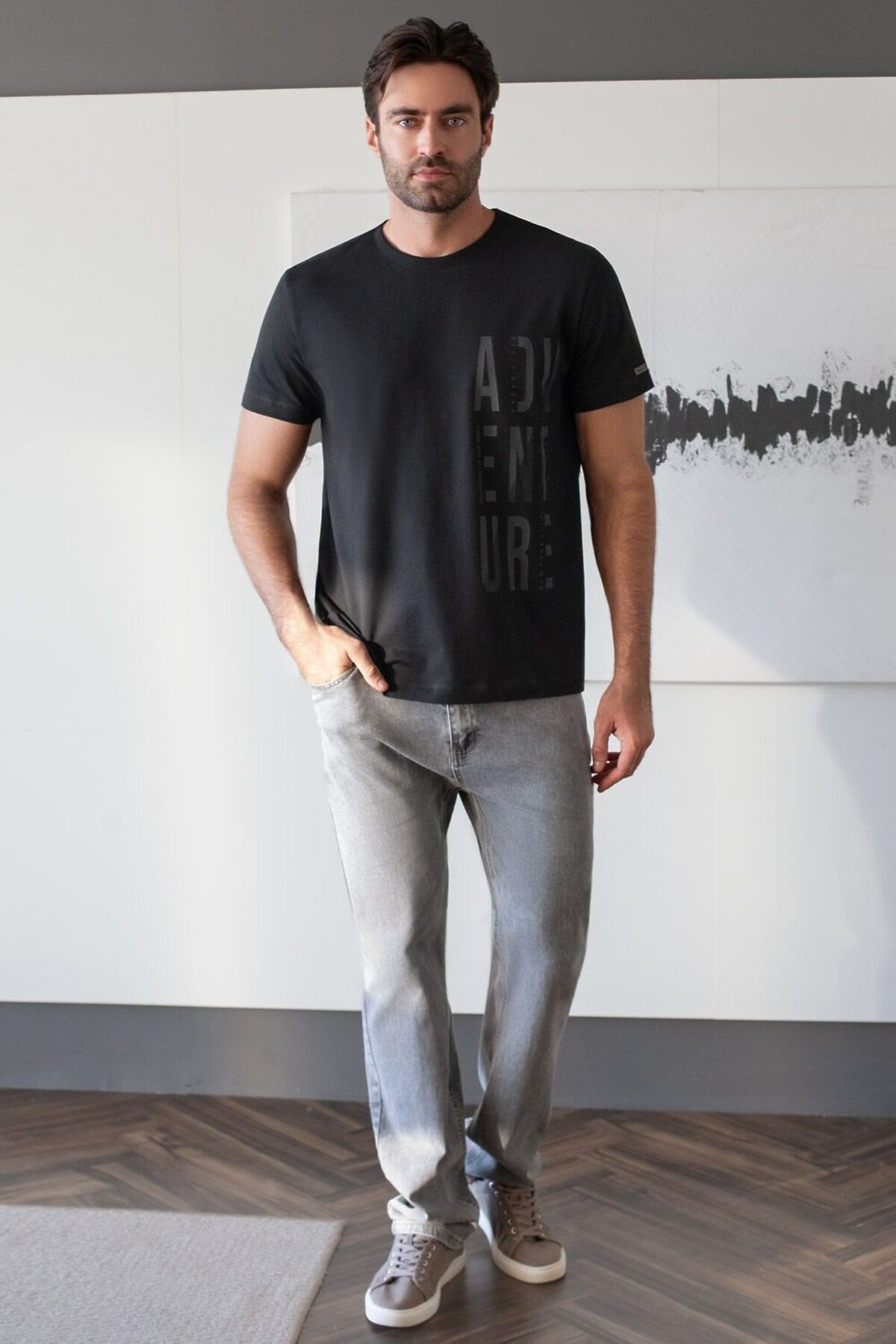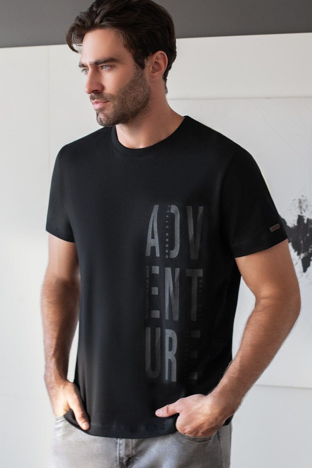 Футболка базовая полуприлегающая из премиального хлопка с принтом VILATTE, черный_adventure