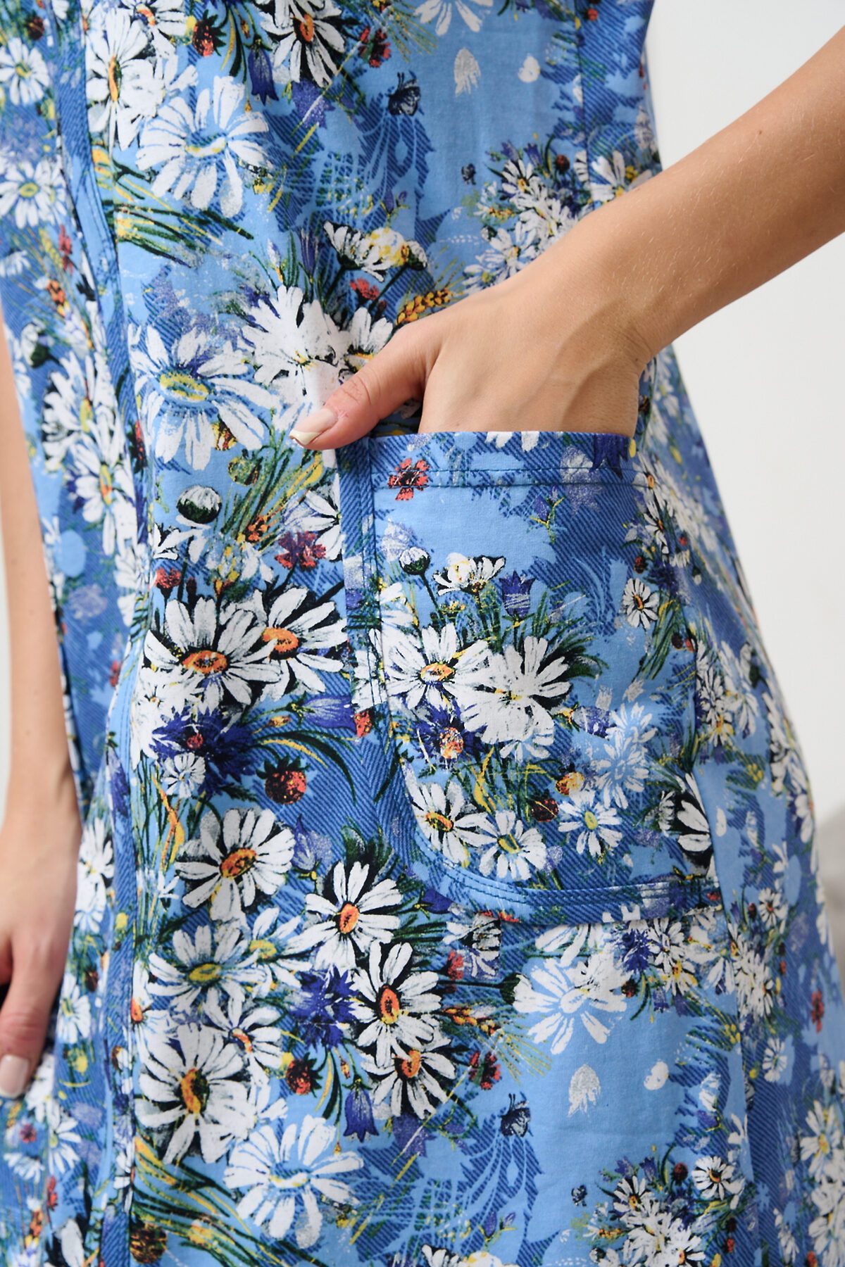 Халат-сарафан на молнии для дома и дачи. Простой, удобный, ничего лишнего. Нежные ромашки для хорошего настроения. Накладные карманы очень пригодятся для разных мелочей. Удобная длина, молния спрятана под бейку. Носите с удовольствием !