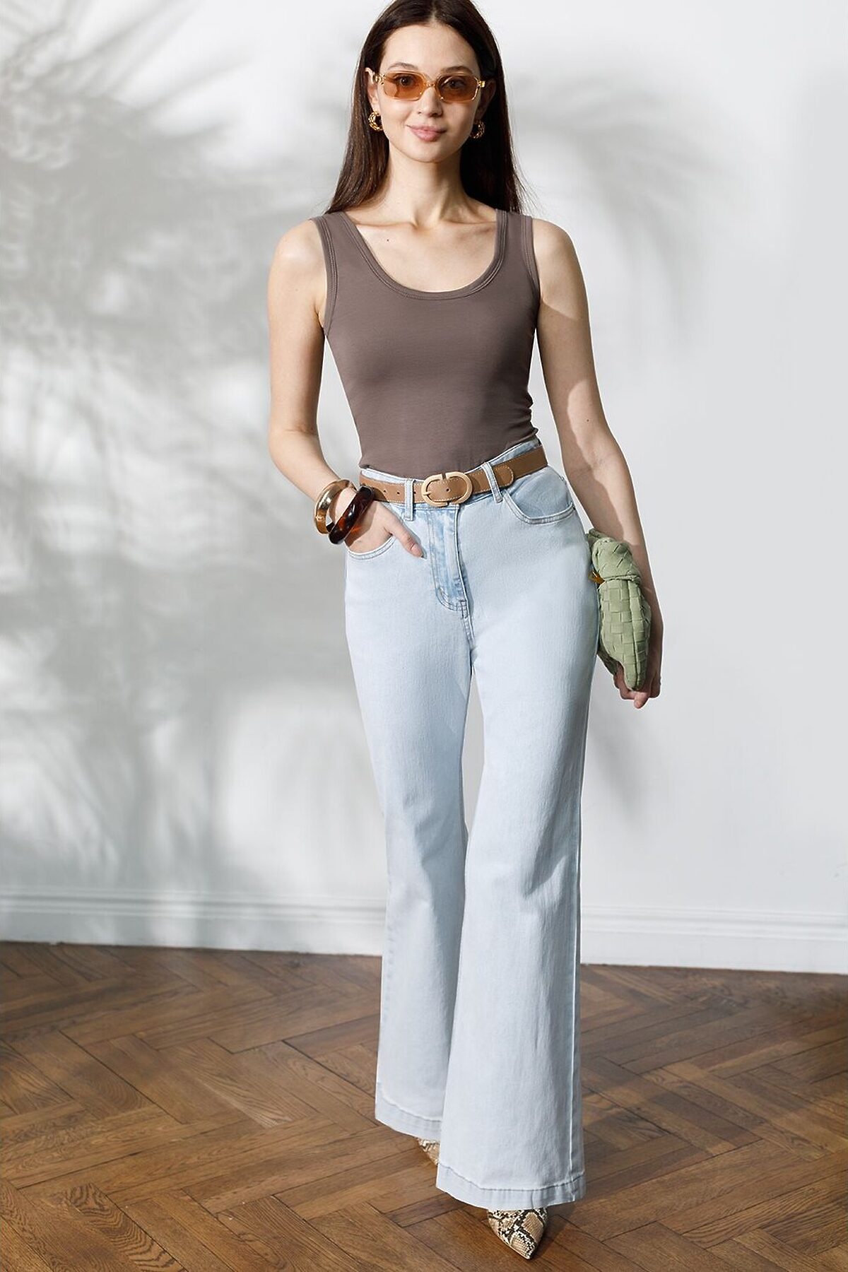 Топ облегающий из премиального хлопка с эластаном VILATTE, кофе