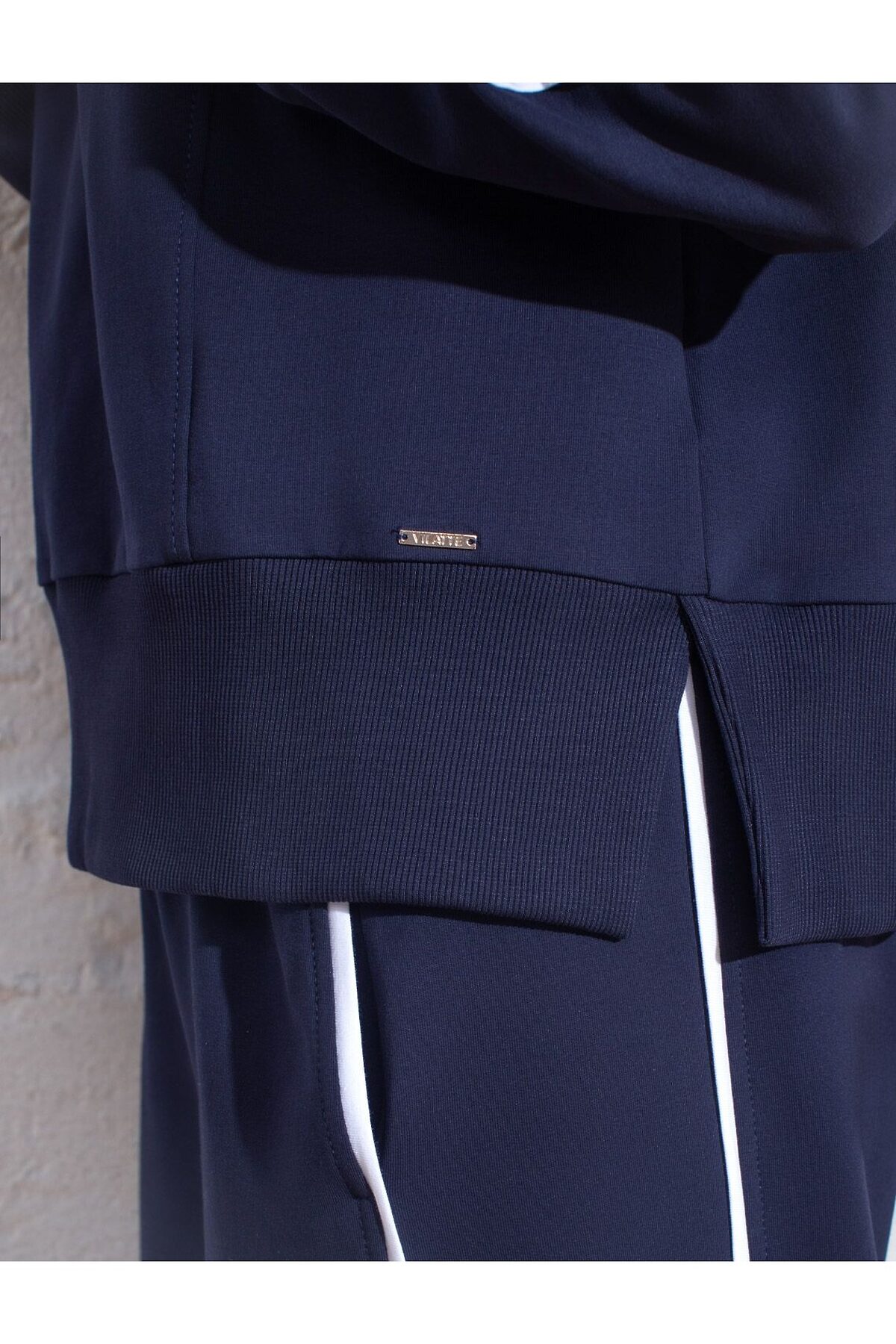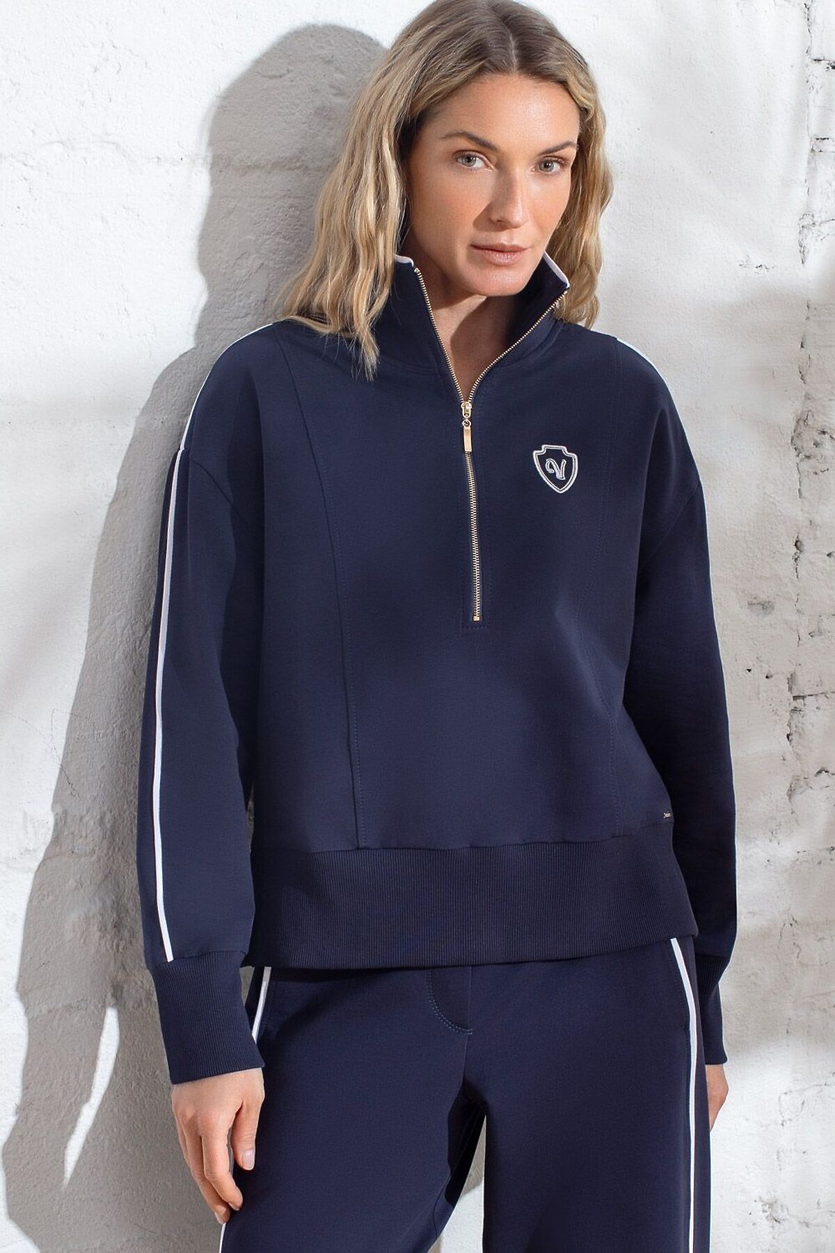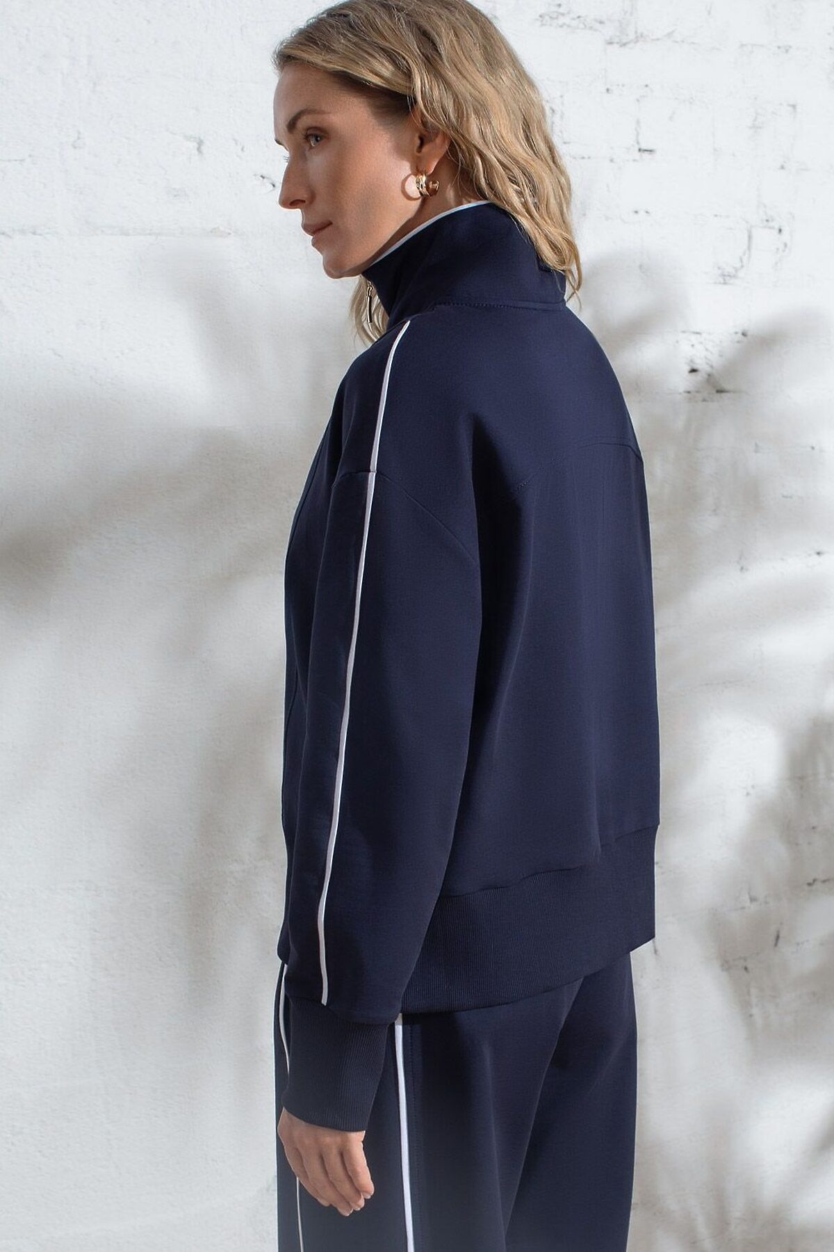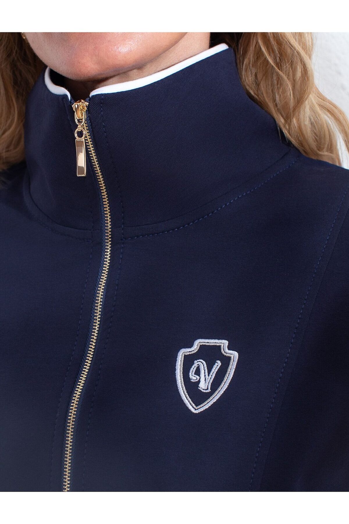 Джемпер с воротом на молнии и лампасами из футера двухнитки с эластаном VILATTE, т.синий_vilatte