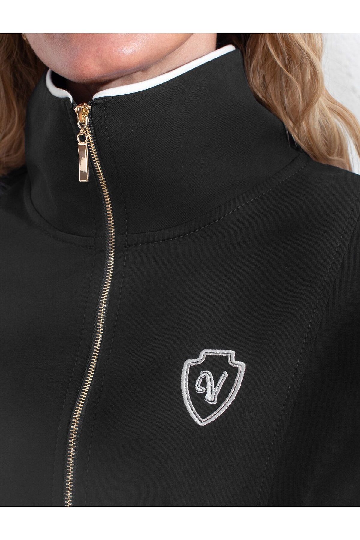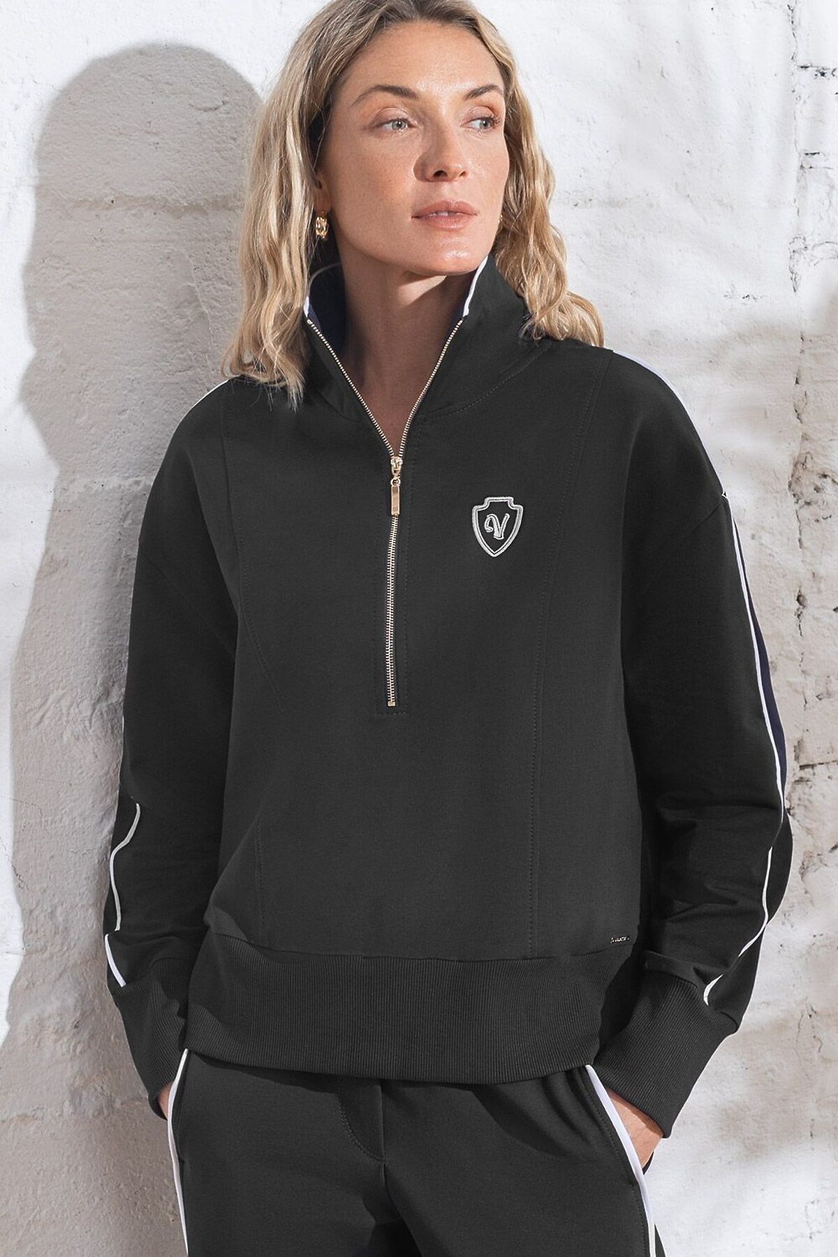 Джемпер с воротом на молнии и лампасами из футера двухнитки с эластаном VILATTE, черный_vilatte
