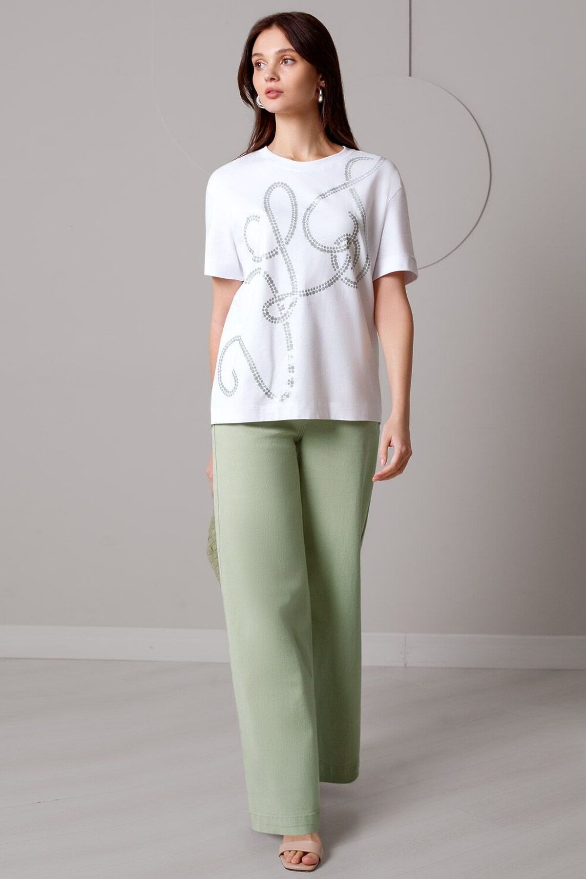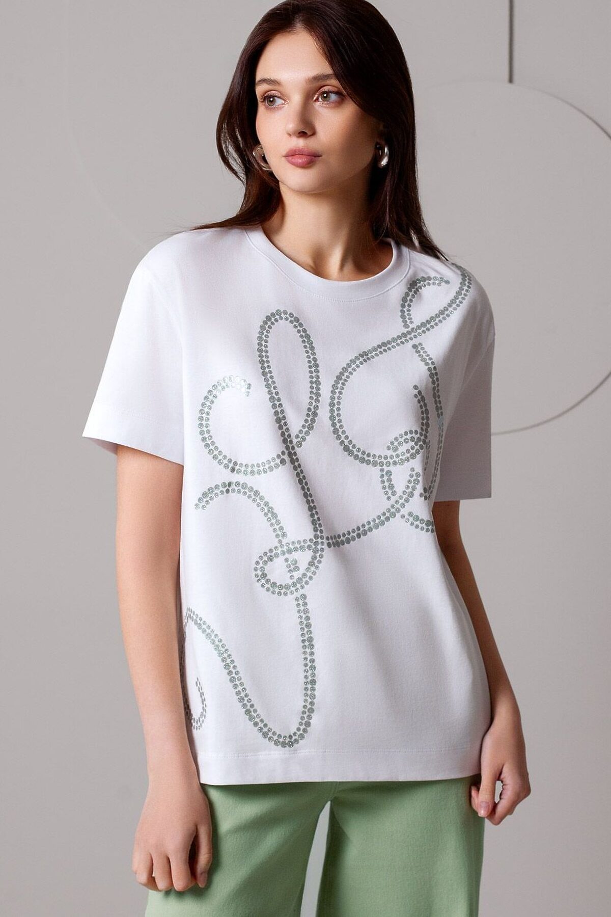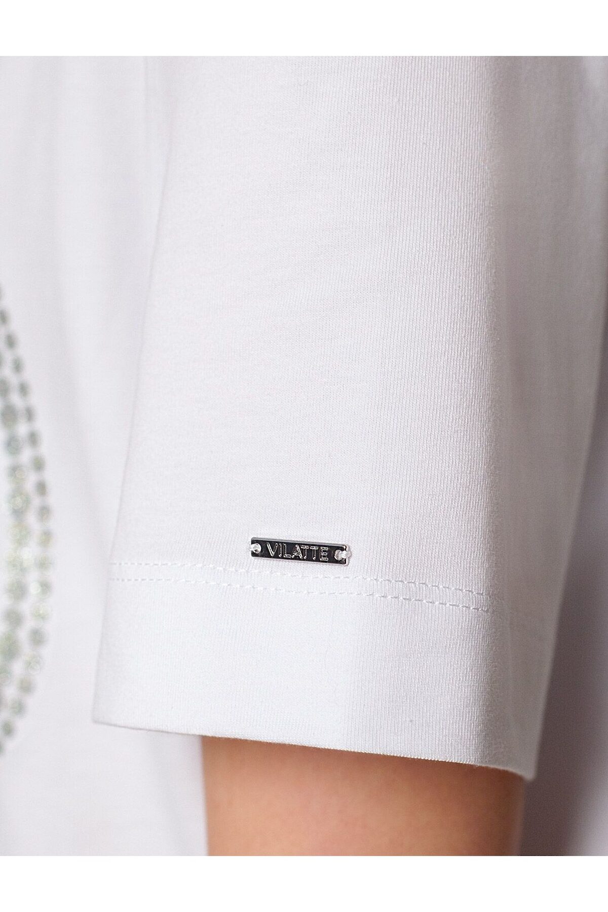 Свободная футболка с принтом из премиального хлопка с эластаном VILATTE, белый_vilatte