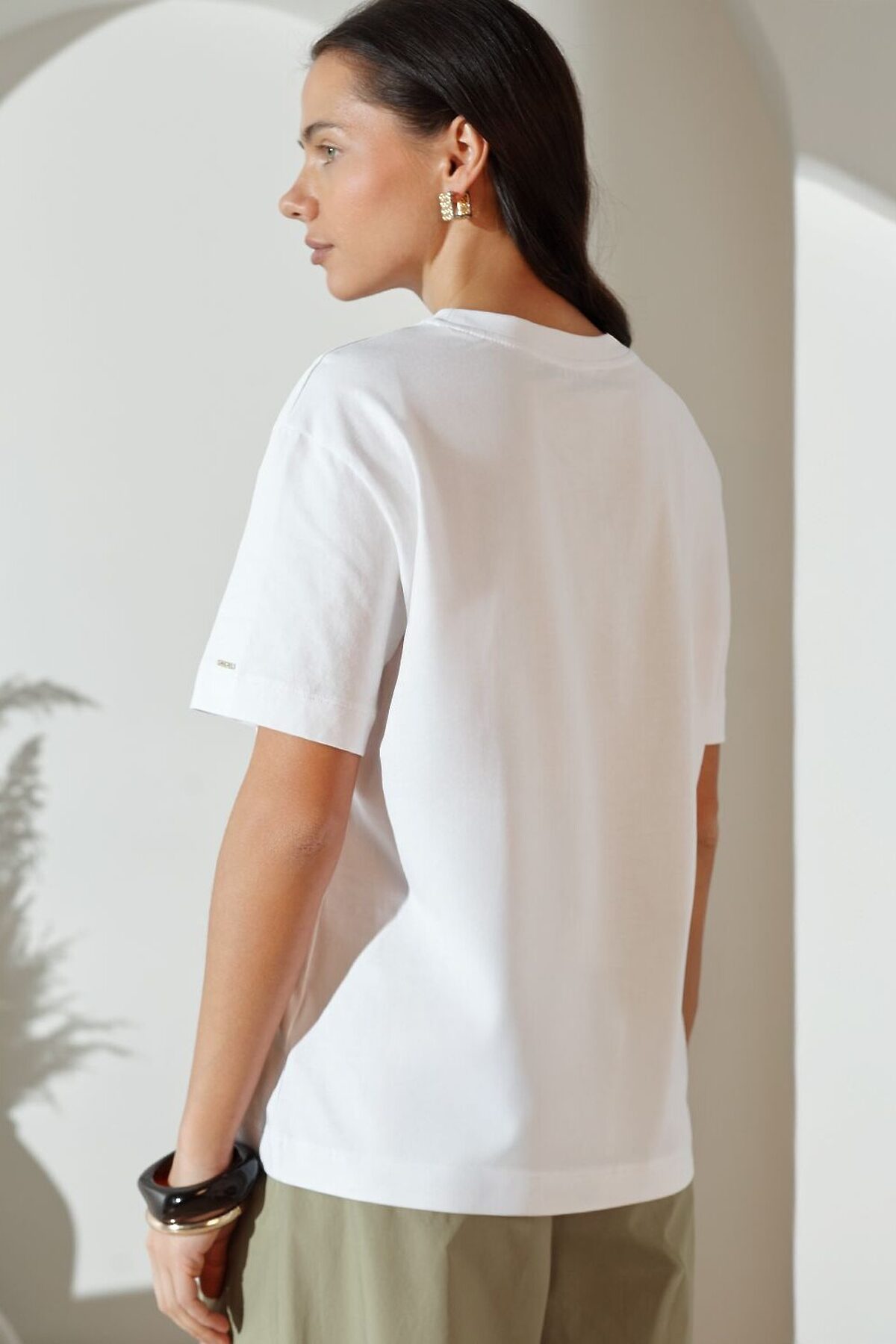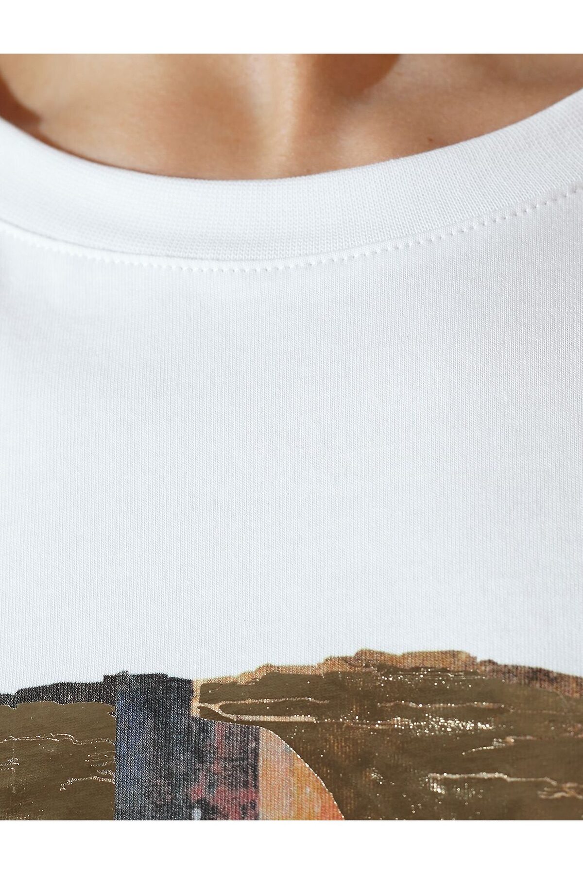Свободная футболка с принтом из премиального хлопка с эластаном VILATTE, белый_абстракция
