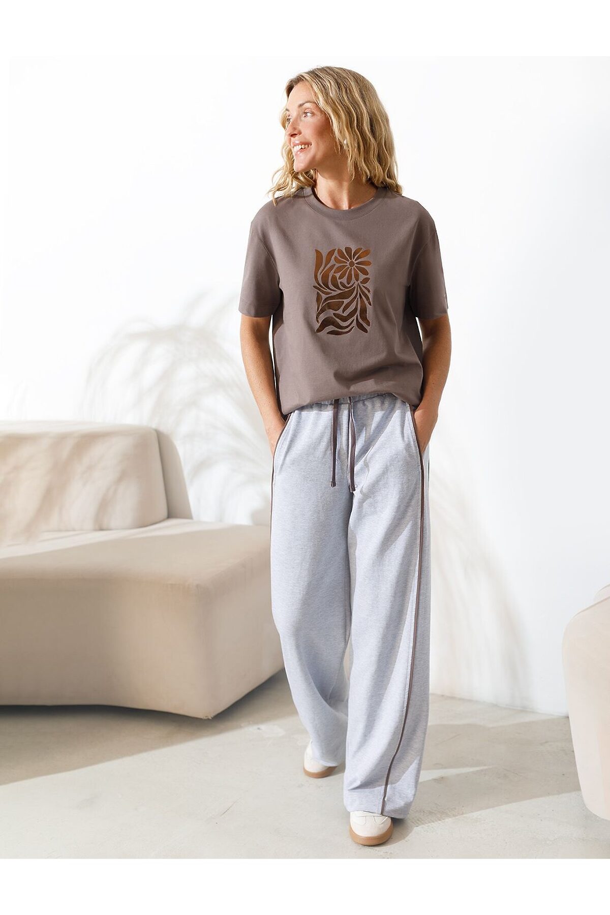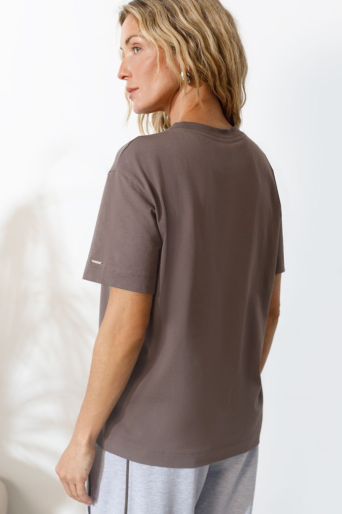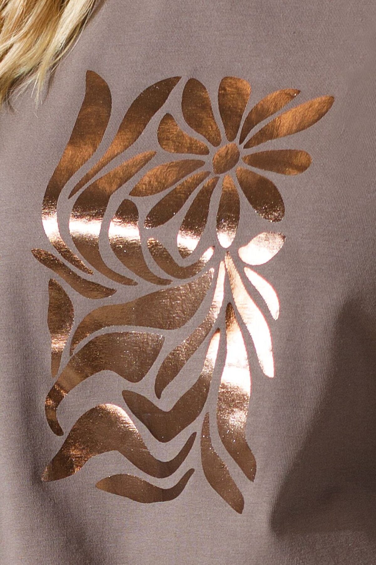 Свободная футболка с принтом из премиального хлопка с эластаном VILATTE, кофе_цветок