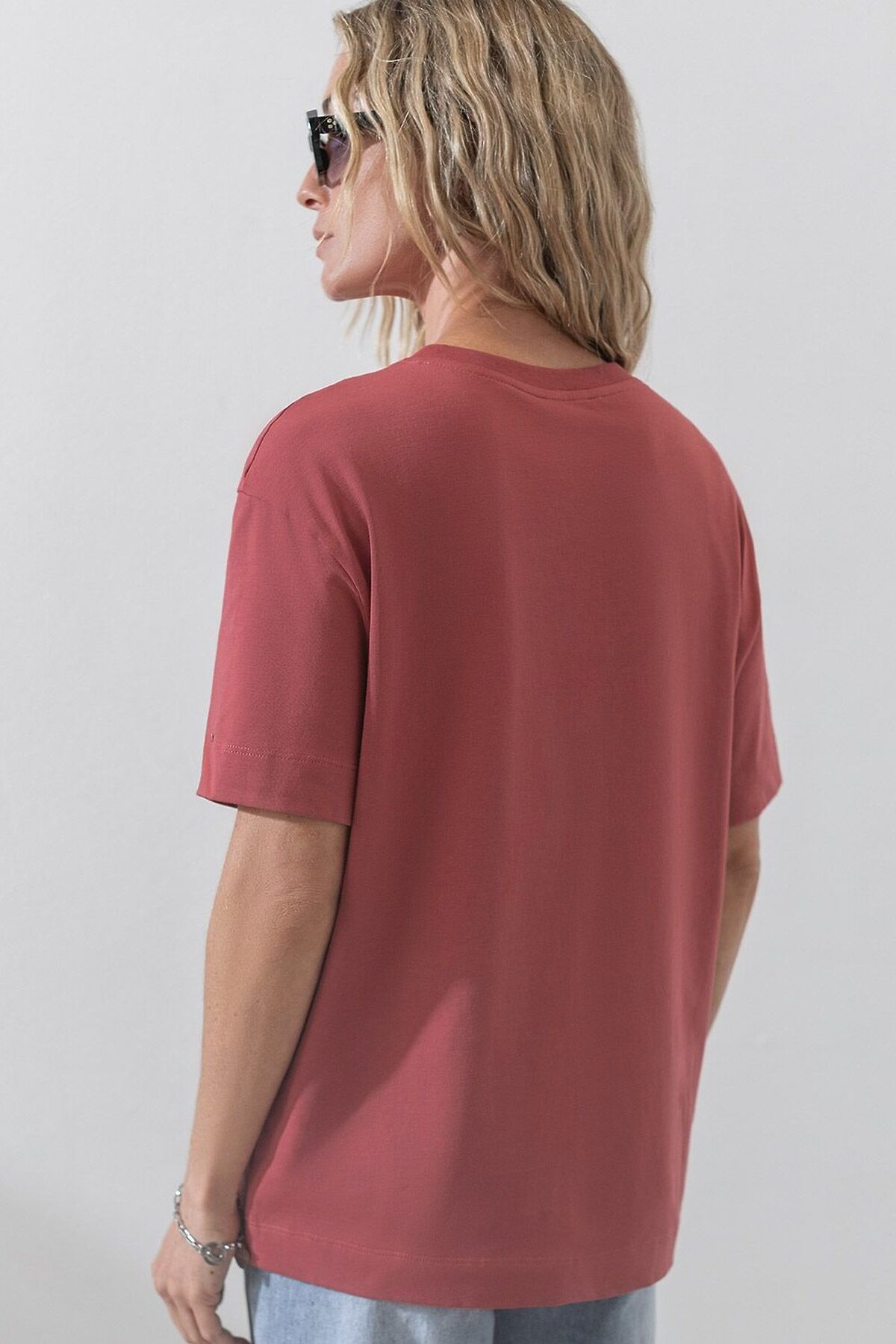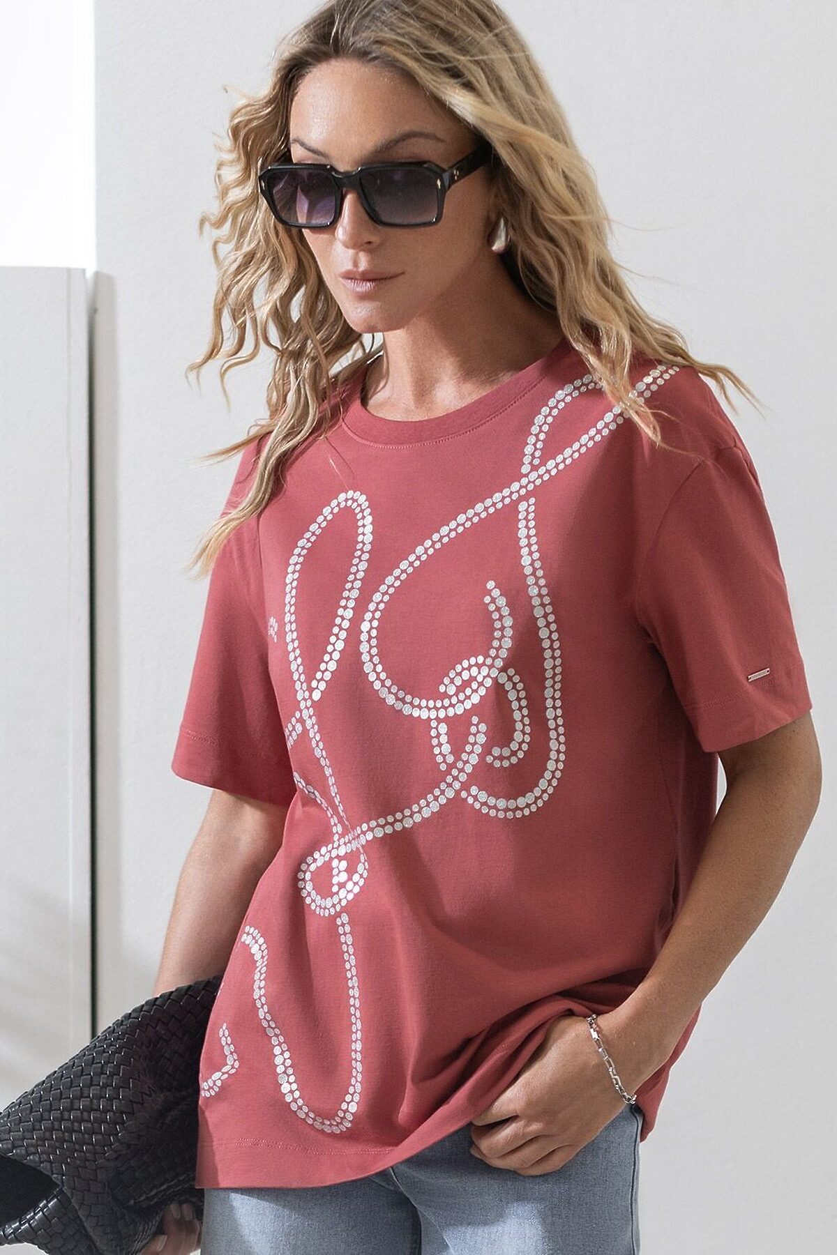 Свободная футболка с принтом из премиального хлопка с эластаном VILATTE, т.коралл_vilatte