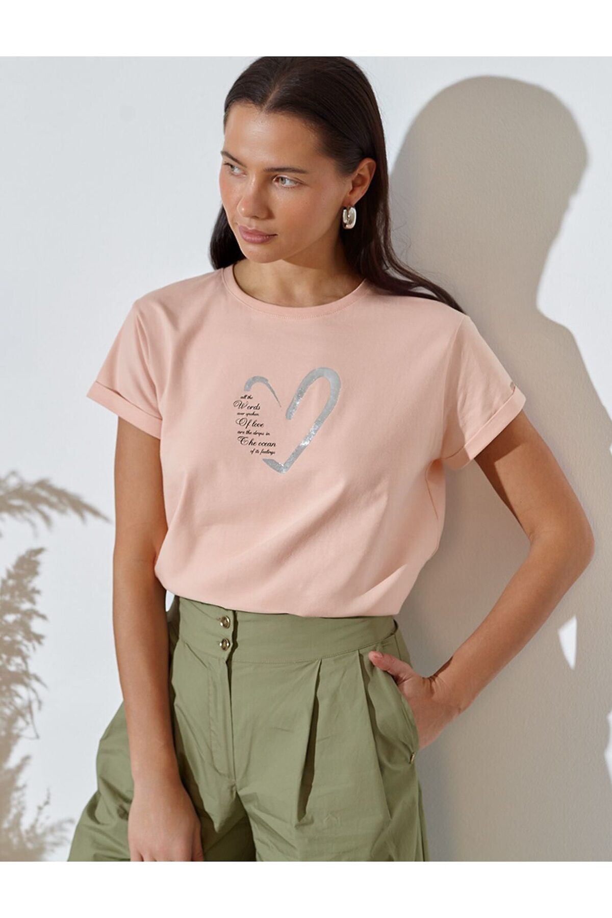 Свободная футболка с принтом из премиального хлопка с эластаном VILATTE, пудра_сердце