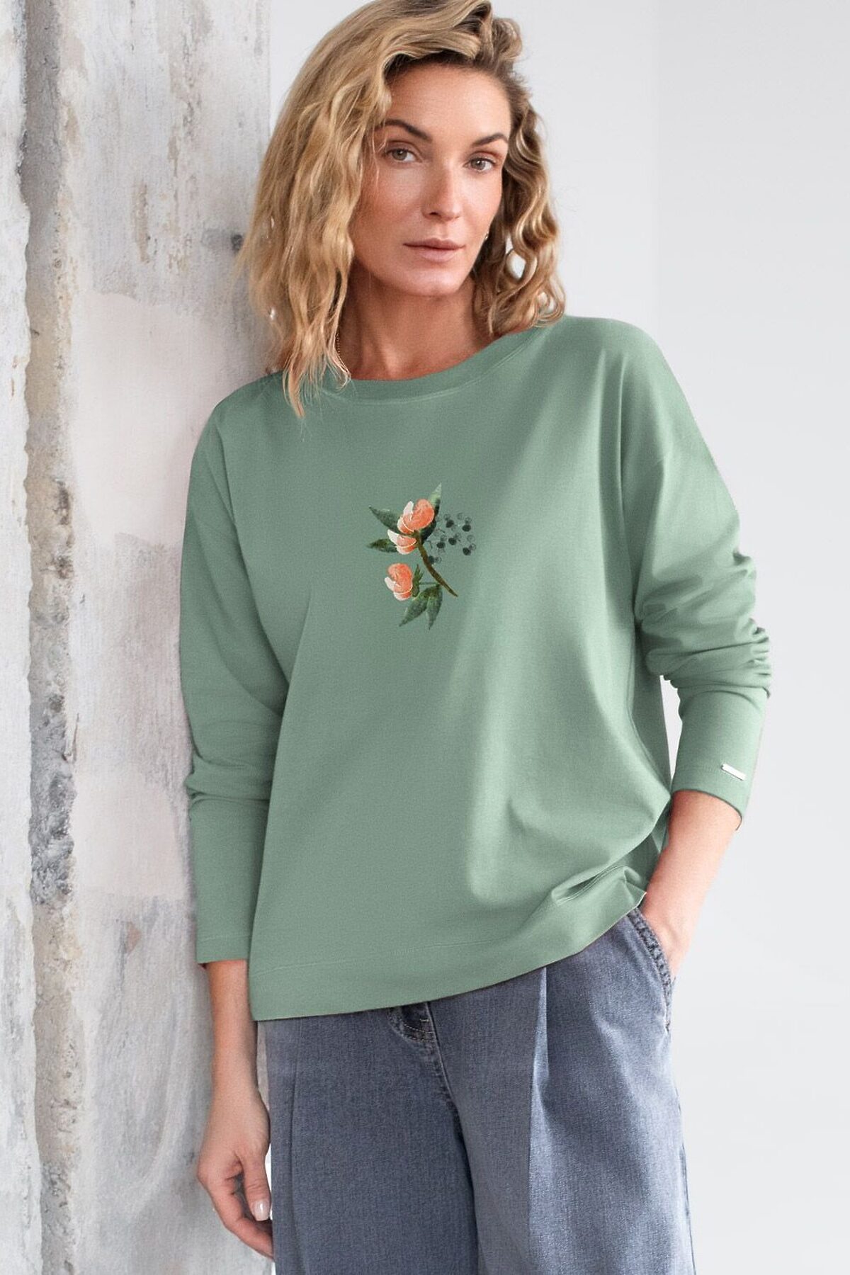 Лонгслив с принтом из премиального хлопка с эластаном VILATTE, св.оливковый_цветок