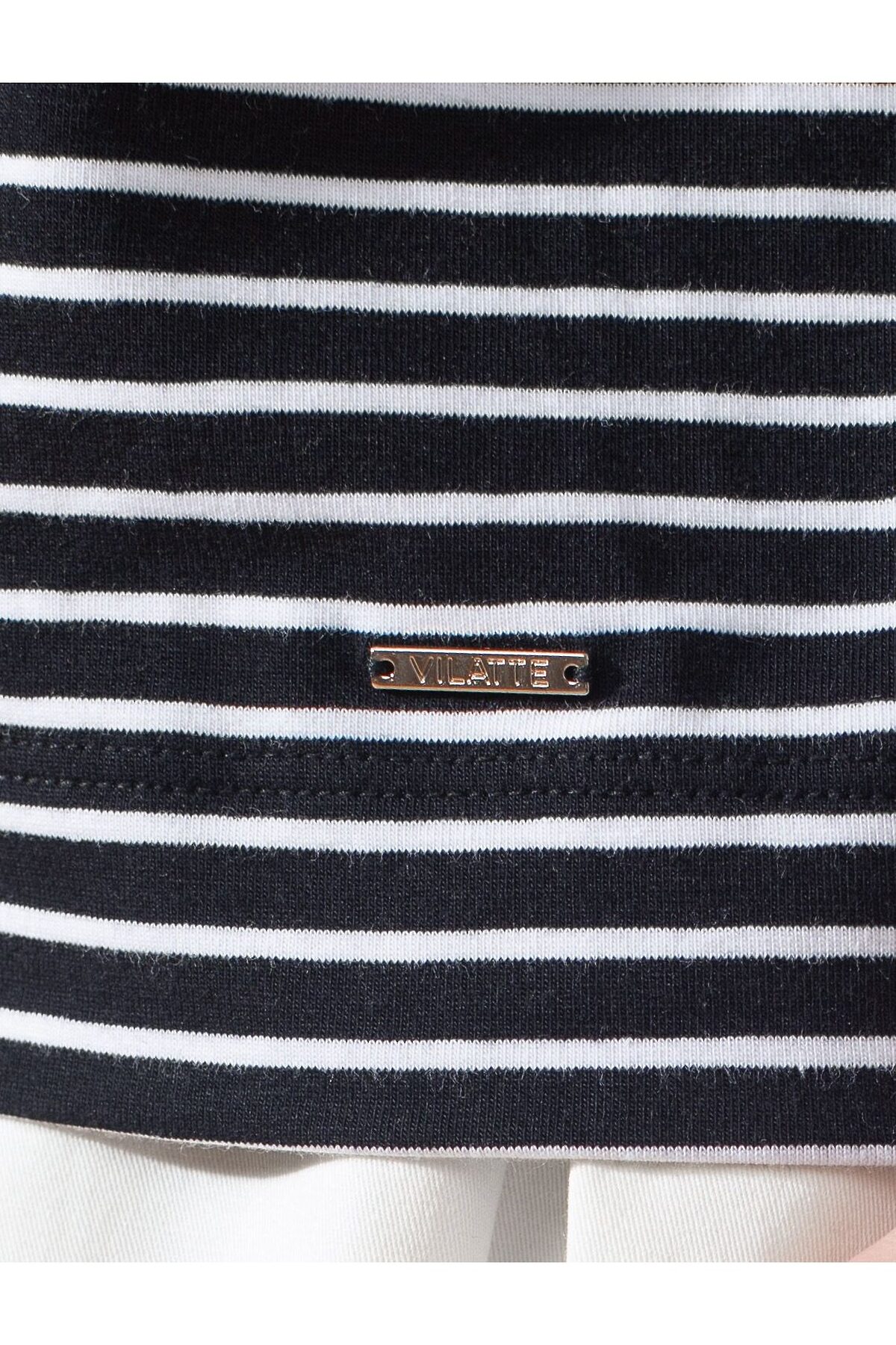 Лонгслив в полоску с рукавами-буфами из премиального хлопка с эластаном VILATTE, черный-белый