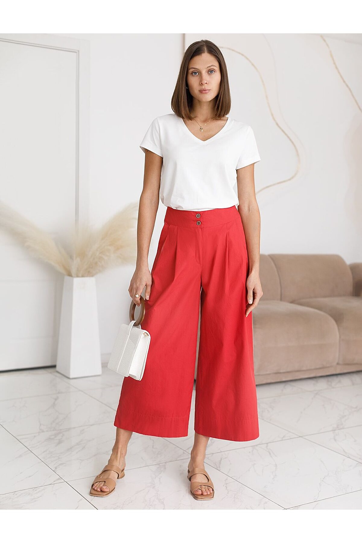 Базовая футболка из премиального хлопка с V образным вырезом VILATTE, белый