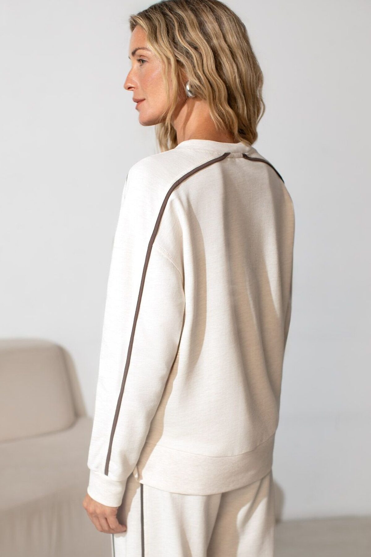 Свитшот с лампасами и разрезами из эластичного футера двухнитки без начеса VILATTE, овсяный меланж_queen