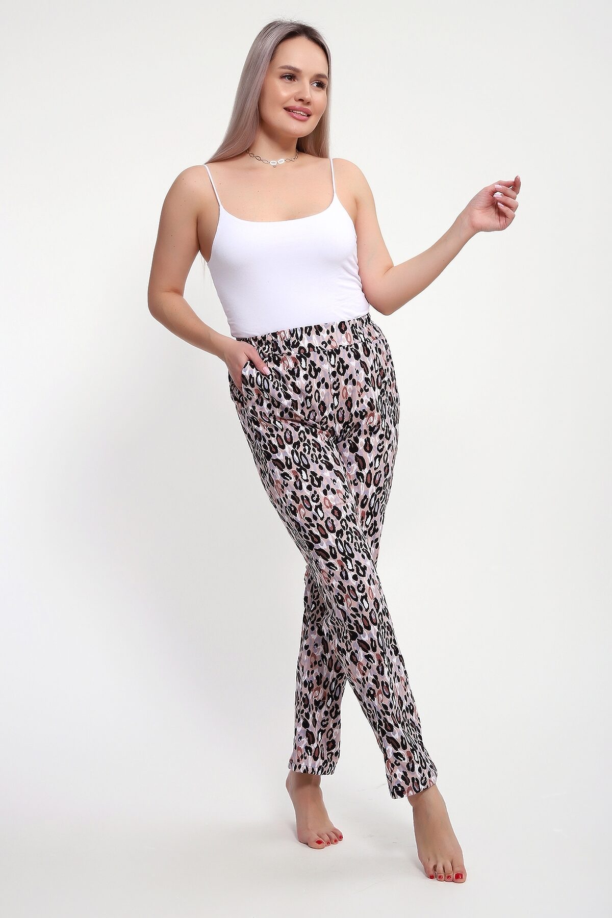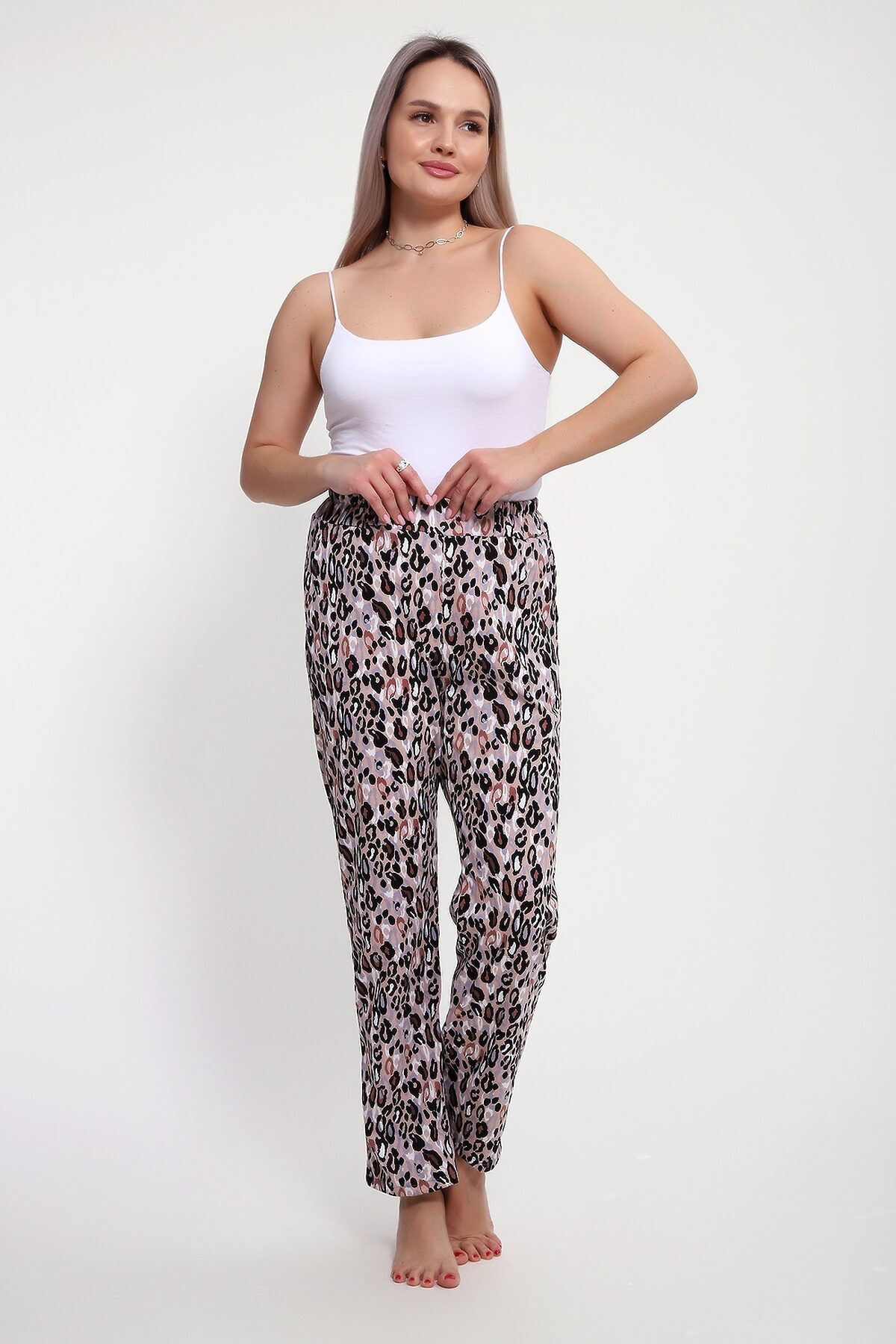 Брюки женские выполнены из кулирки 100% хлопок. Брюки имеют комфортную посадку, на поясе с резинкой, с карманами, прямые. Идеально подойдут как для дома, так и для прогулок и отдыха.