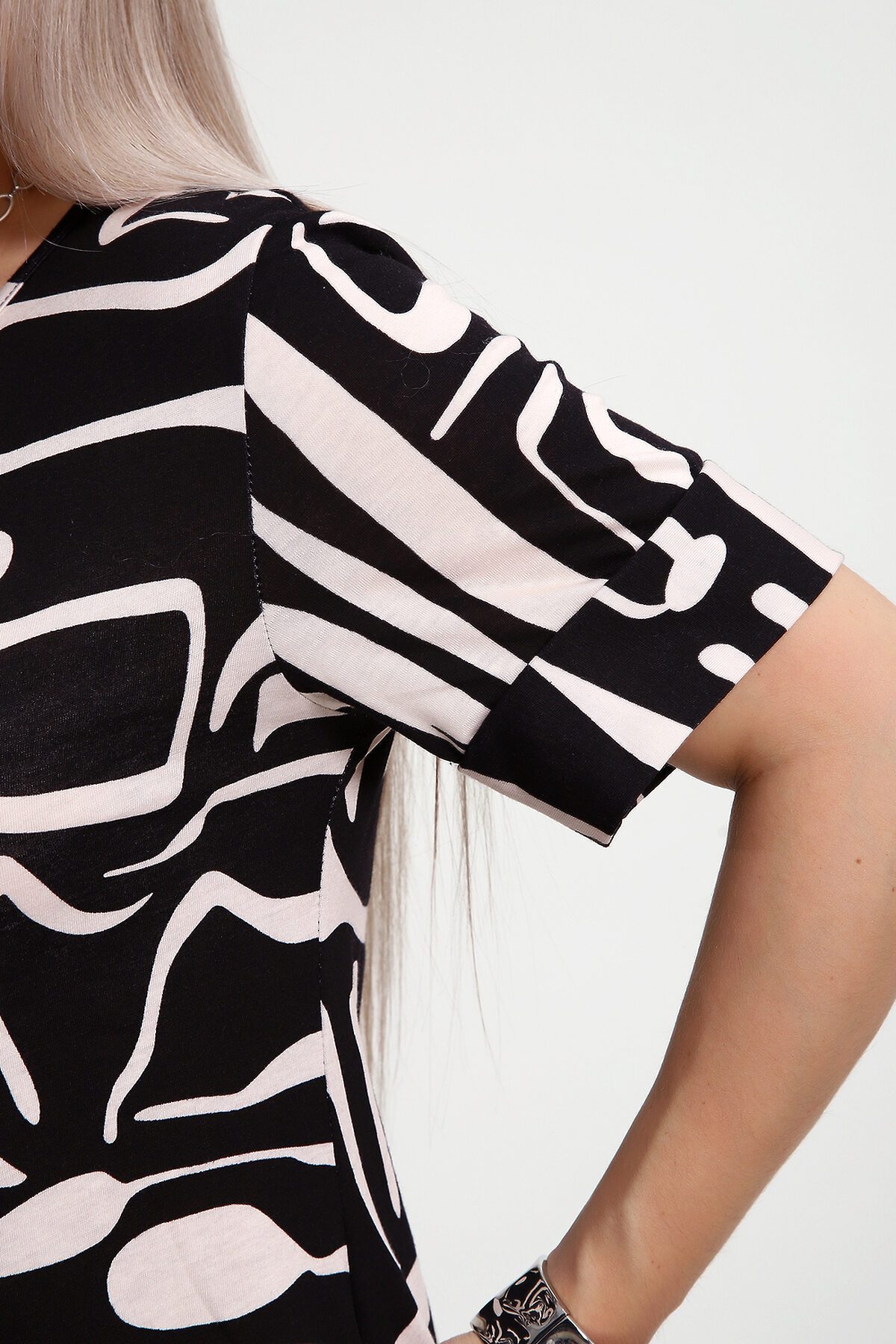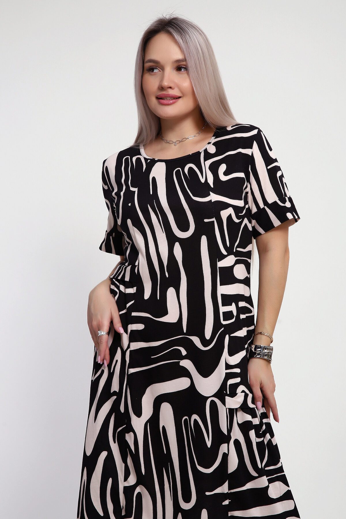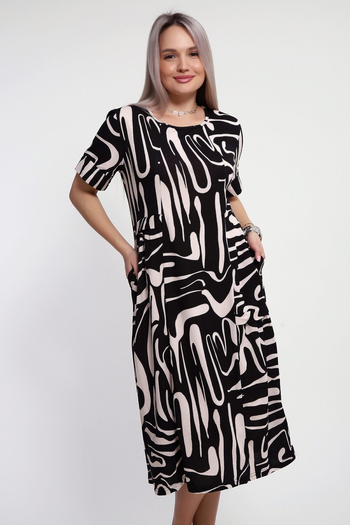 Платье женское свободного силуэта выполнено из 100% хлопка. Платье с коротким рукавом, с карманами в боках, спереди оригинальные ассиметричные планки. Изделие идеально подойдет как для дома, так и для прогулок и отдыха.