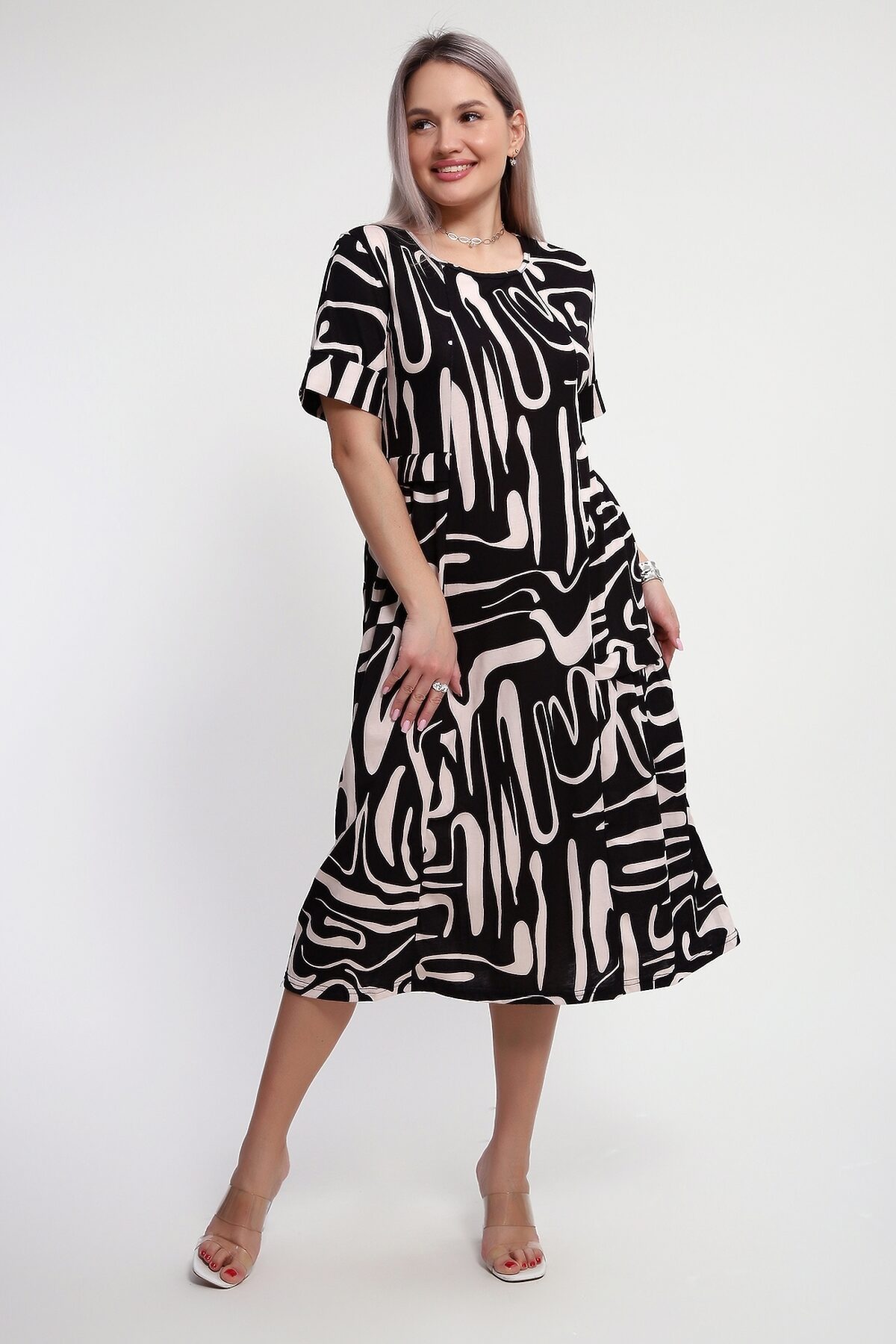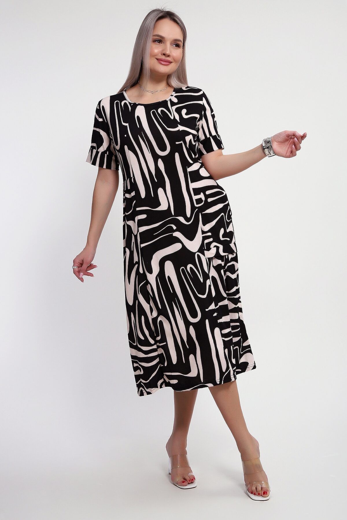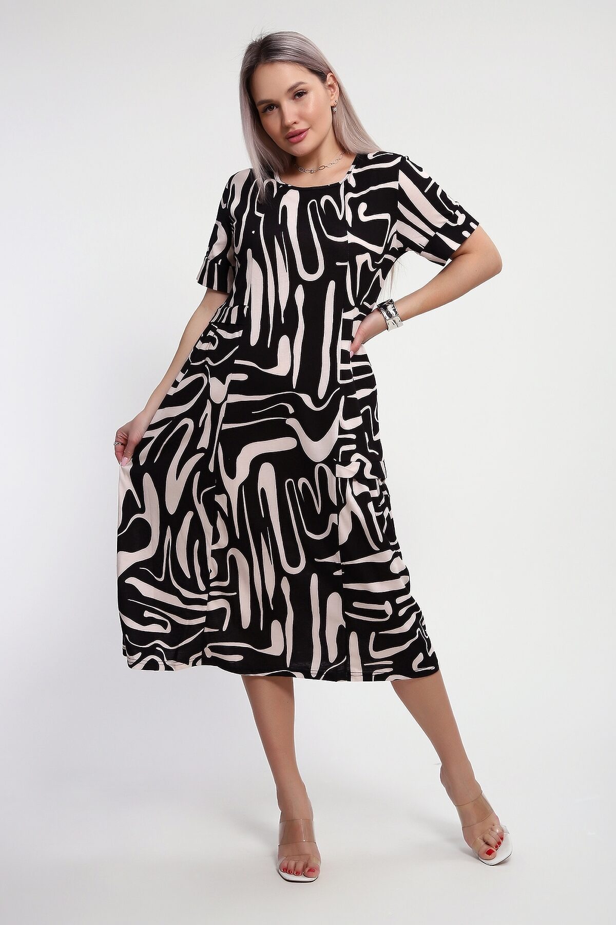 Платье женское свободного силуэта выполнено из 100% хлопка. Платье с коротким рукавом, с карманами в боках, спереди оригинальные ассиметричные планки. Изделие идеально подойдет как для дома, так и для прогулок и отдыха.