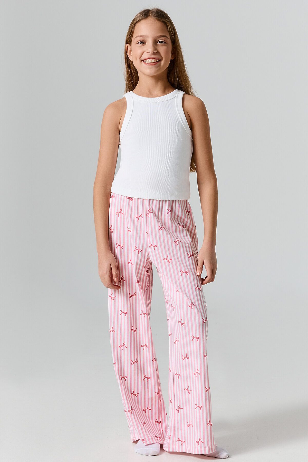 Брюки для девочек домашние MARK FORMELLE, бантики на розовой полоске