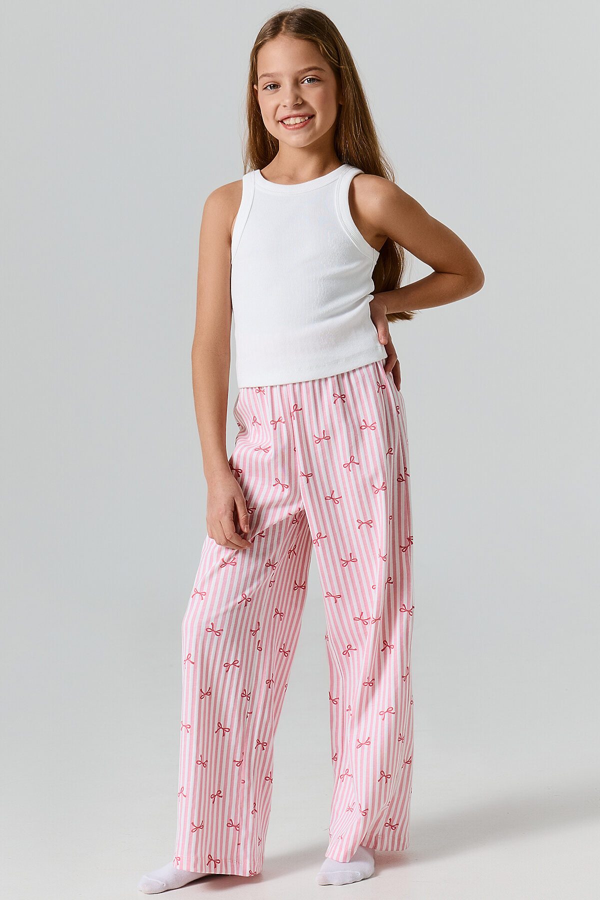 Брюки для девочек домашние MARK FORMELLE, бантики на розовой полоске