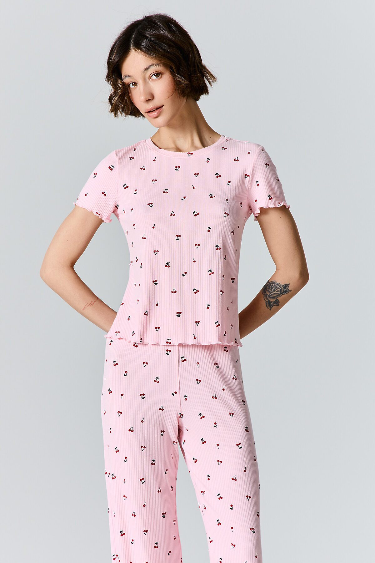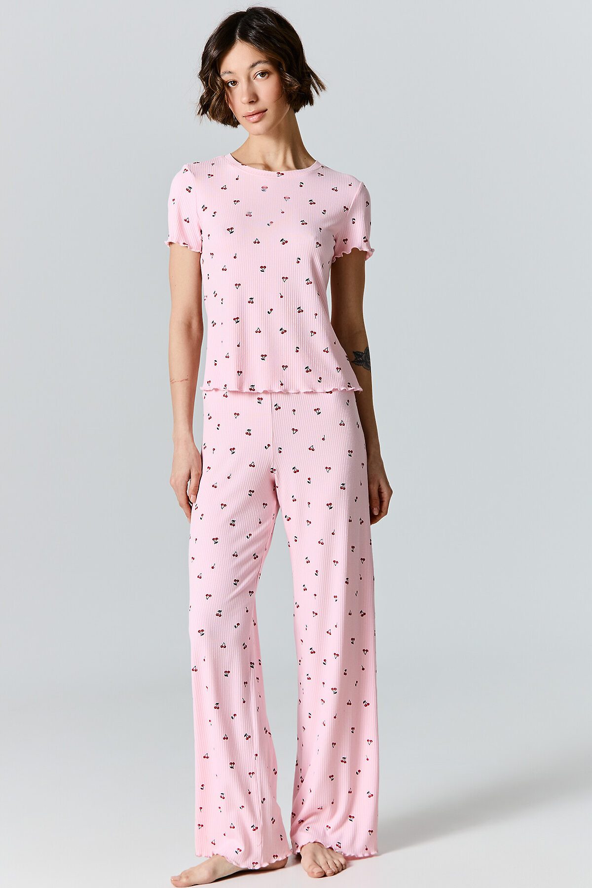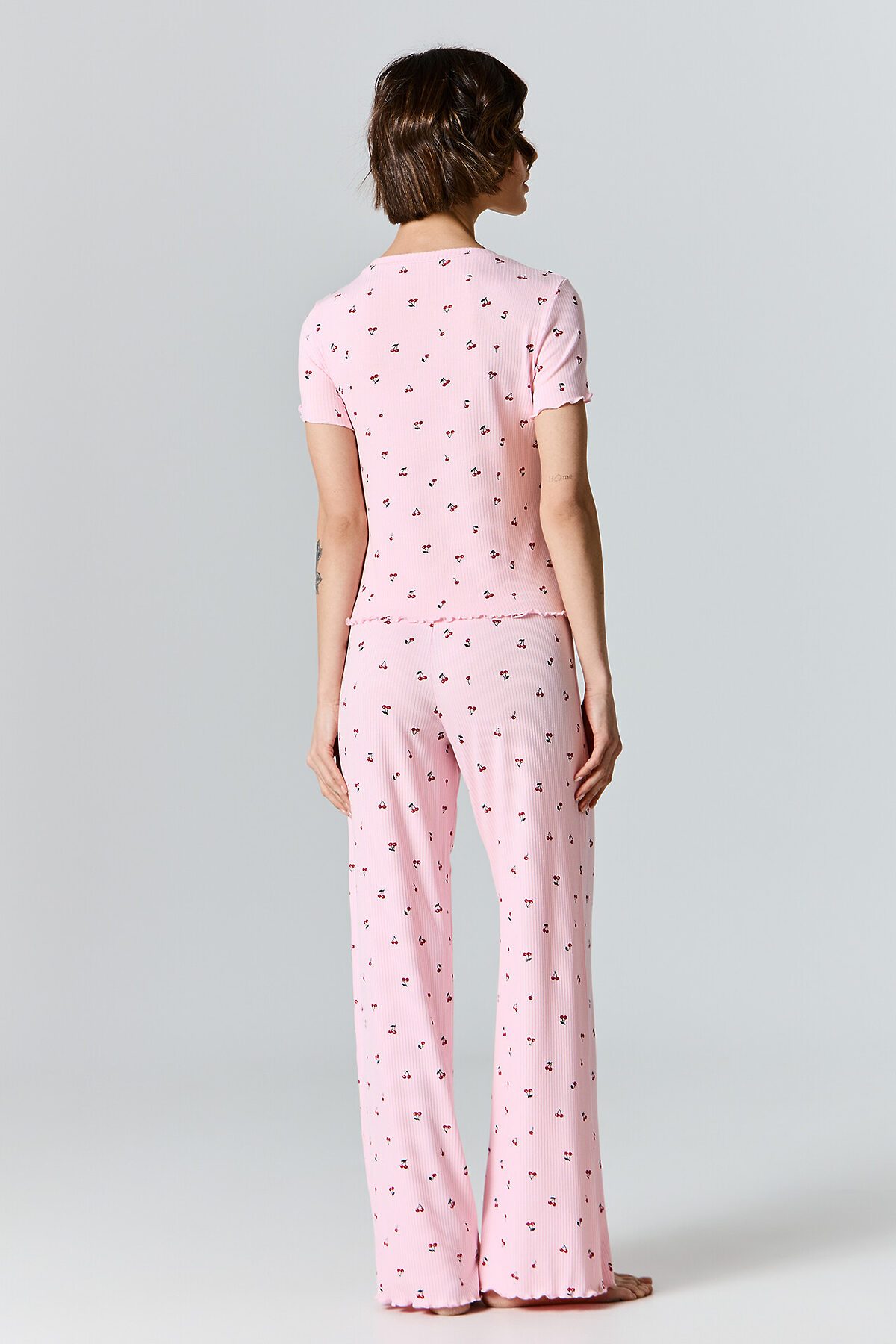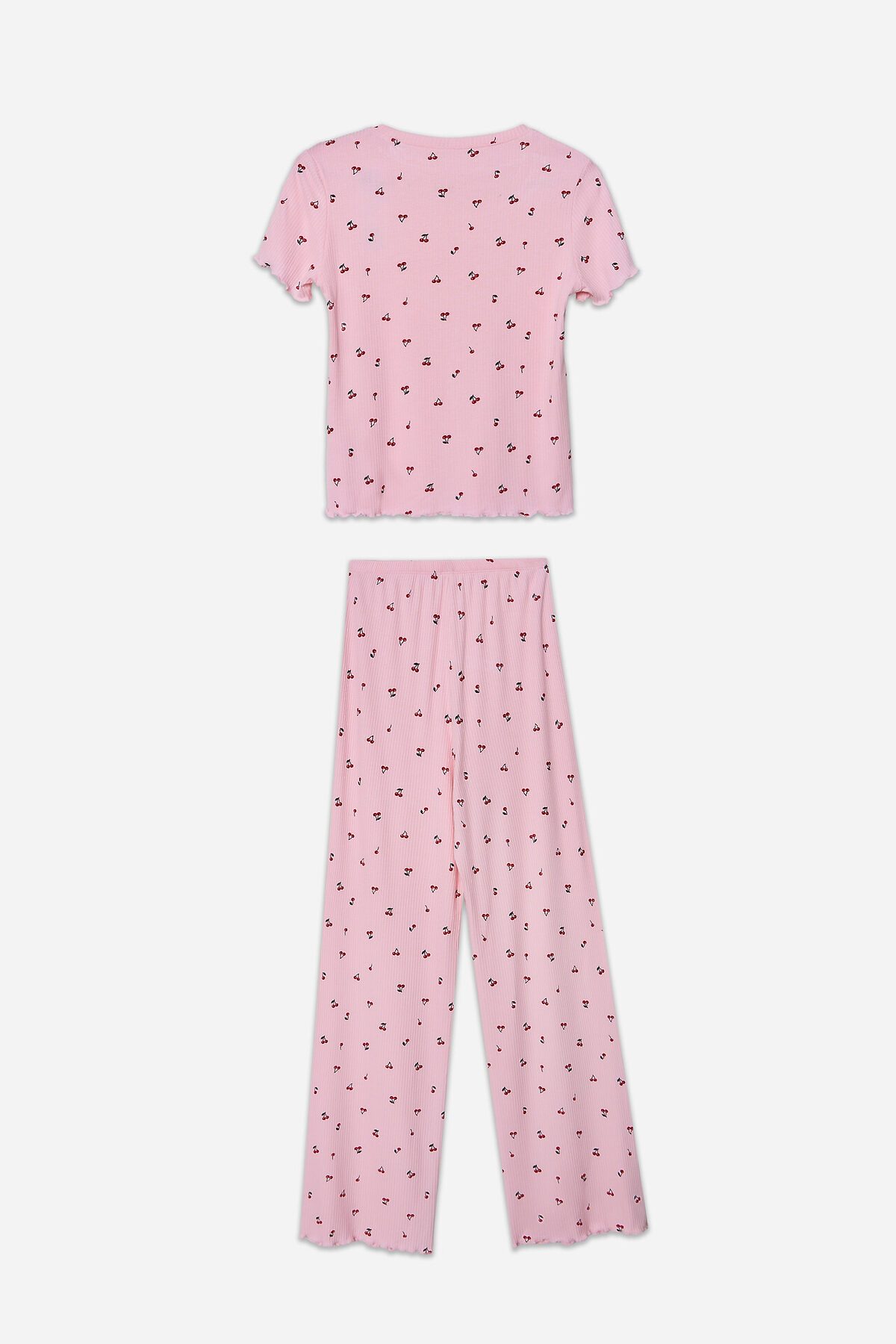 Домашний комплект с принтом выполнен из мягкой рибаны, которая обладает приятной эластичностью и нежно облегает тело, не стесняя движений.