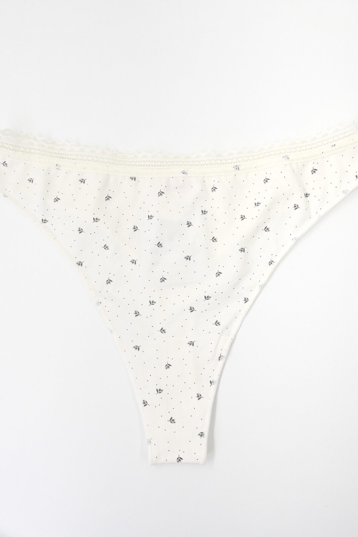 Стринги из мягкого хлопкового трикотажа — прекрасный выбор для ценителей женственного нижнего белья. Кружевная окантовка с фестонами, нежный оттенок белого и акцент на открытых ягодицах придают образу неотразимую притягательность, а небольшое количество эластана в составе делает белье долговечным и тянущимся. Мягкая резинка не оставляет следов на коже, а материал подходит даже для чувствительной кожи.