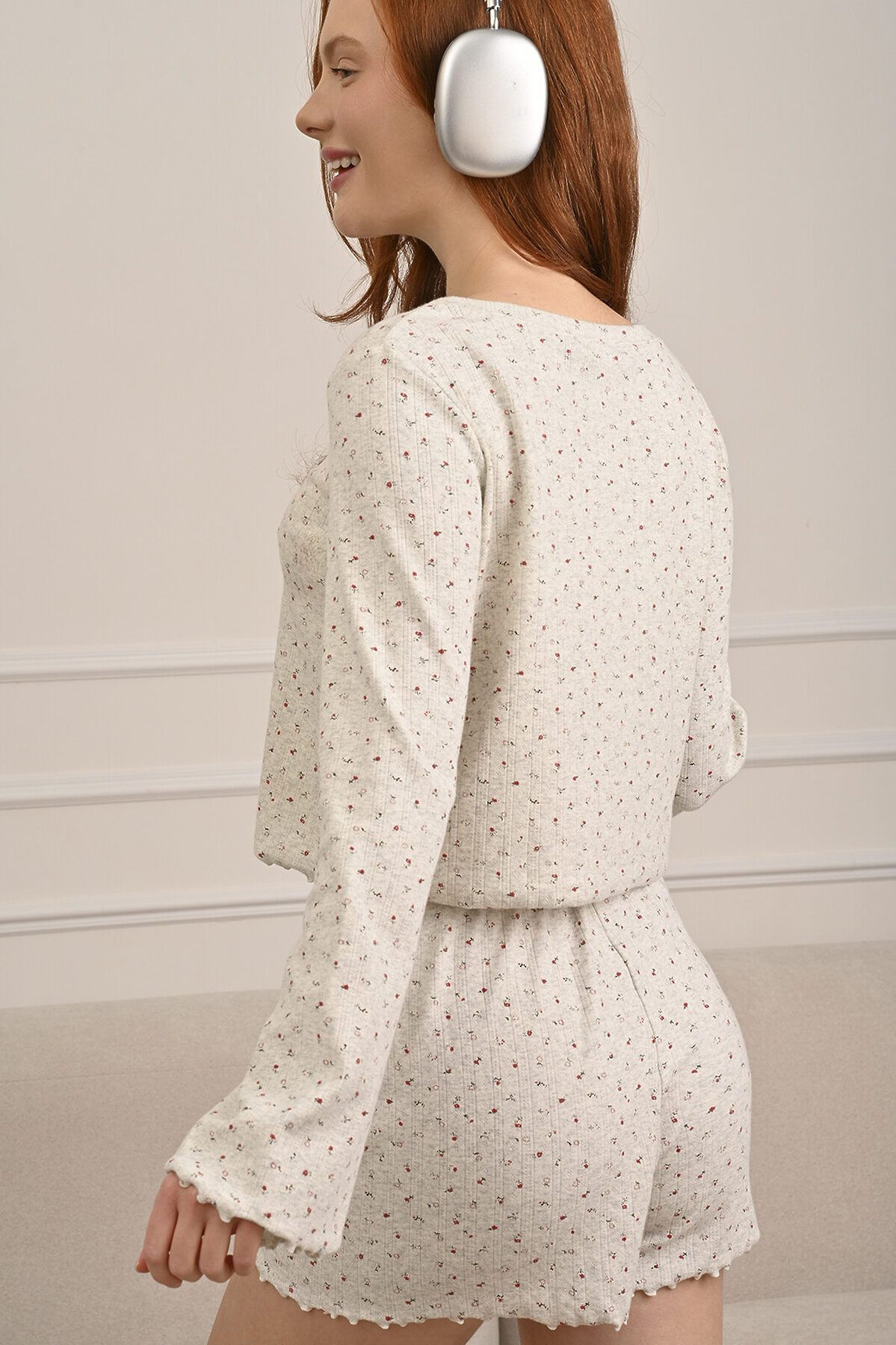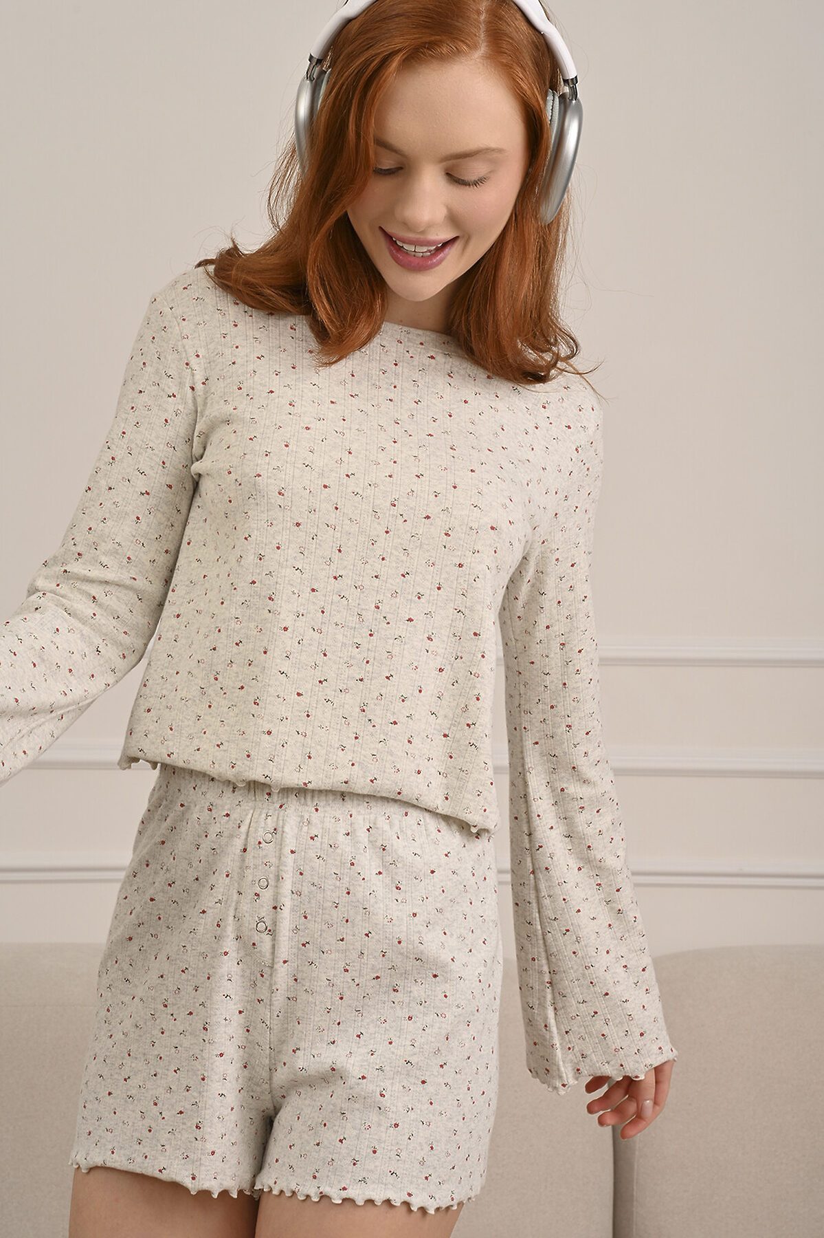 Универсальная уютная пижама с шортами на любой сезон. Цветочный принт, фактура и волнистый край создают воздушный и романтичный образ. Выполнена из трикотажа пуантель: мягкого хлопкового полотна с характерным ажурным плетением. Такая ткань согревает и при этом пропускает воздух — идеальная пижама, которую можно носить круглый год. Мягкая резинка не оставляет следов на коже, а материал подходит даже для чувствительной кожи. Параметры модели: 83-63-89 см Рост: 178 см