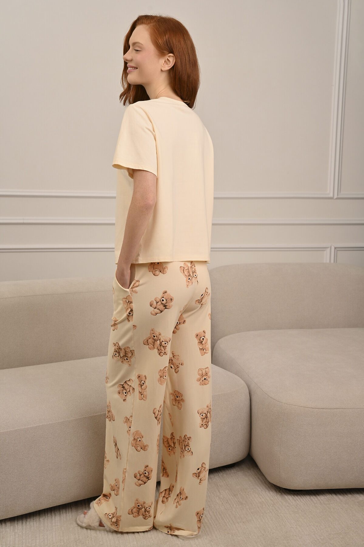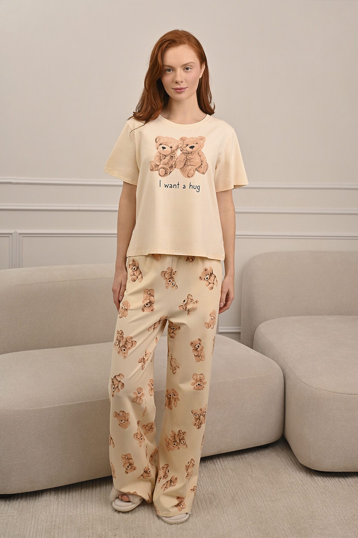 Женская пижама (Футболка+Брюки) INDEFINI, молочный