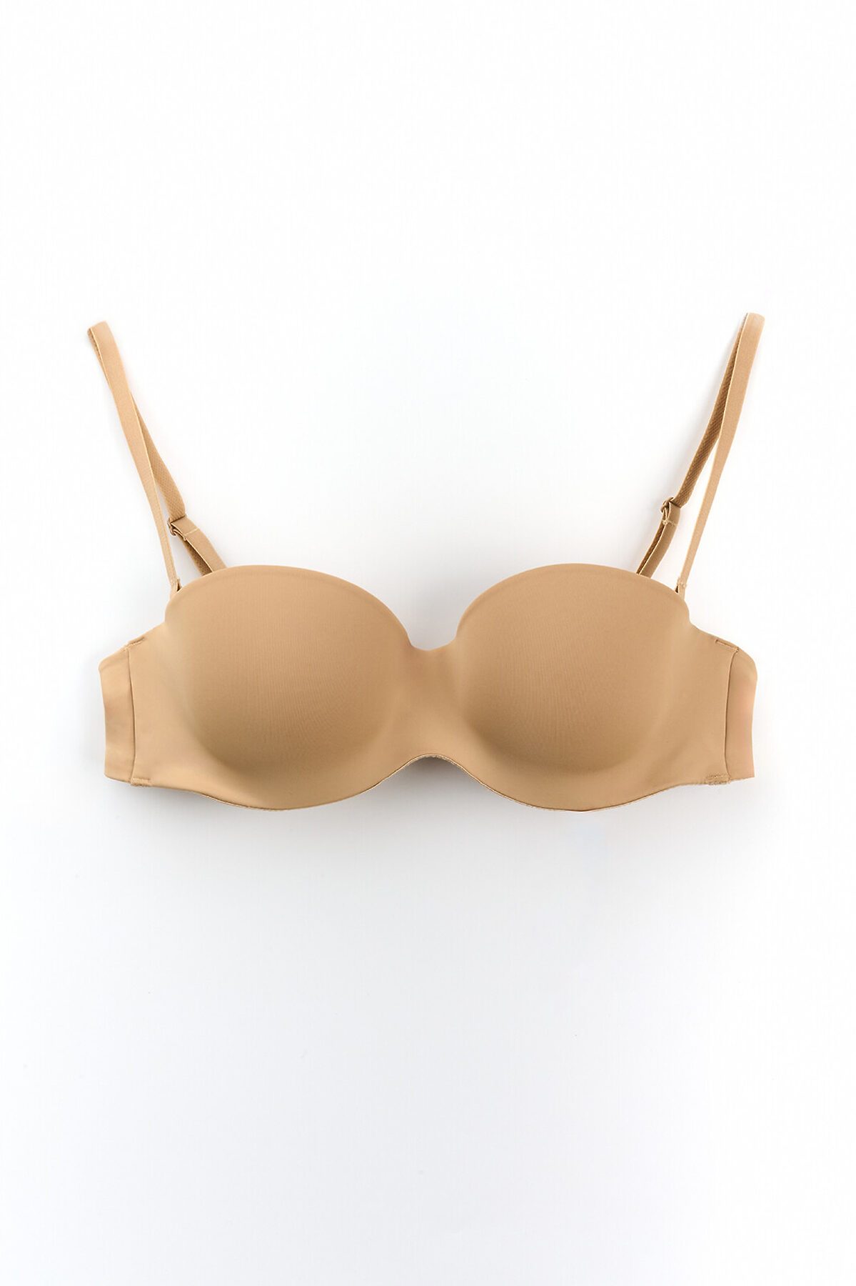 Бюстгальтер с силиконовыми лентами по краям пояса — его можно носить с бретелями как обычный бюстгальтер или без них как бандо. Формованные чашки на косточках и подкладка пуш-ап не только формирует поддержку груди, но и приподнимает ее, сближает к центру. Усиливают поддержку боковые косточки. Универсальный оттенок позволяет вписать бюстгальтер в любой гардероб. Посадка фиксируется регулируемыми бретелями и застежкой на спине.