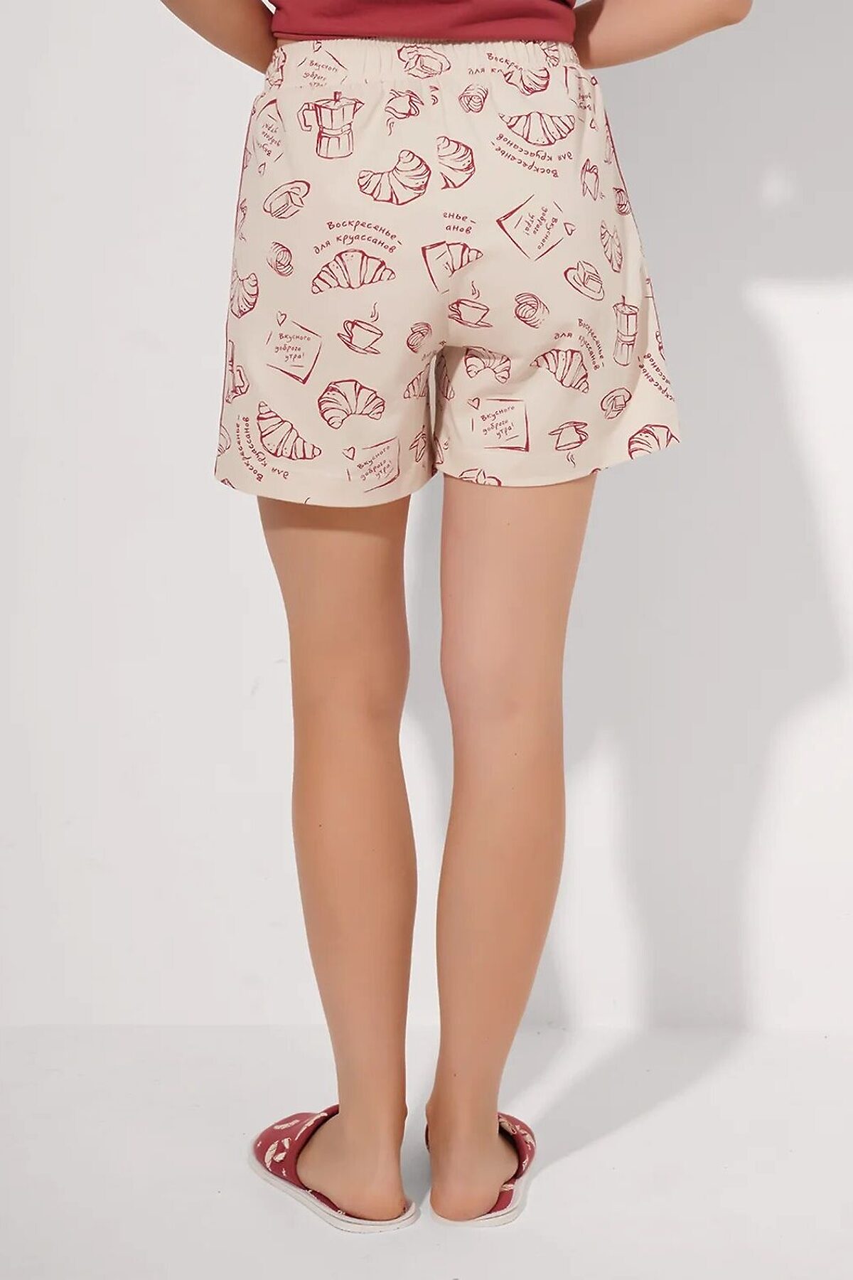 Набор одежды из хлопкового трикотажного полотна. Футболка прямого кроя. Короткий втачной рукав. Округлая горловина с обтачкой. Спереди и по спинке принт. Шорты с поясом на внутренней резинке. По боковому шву -лампас из тесьмы, спереди нашивка.