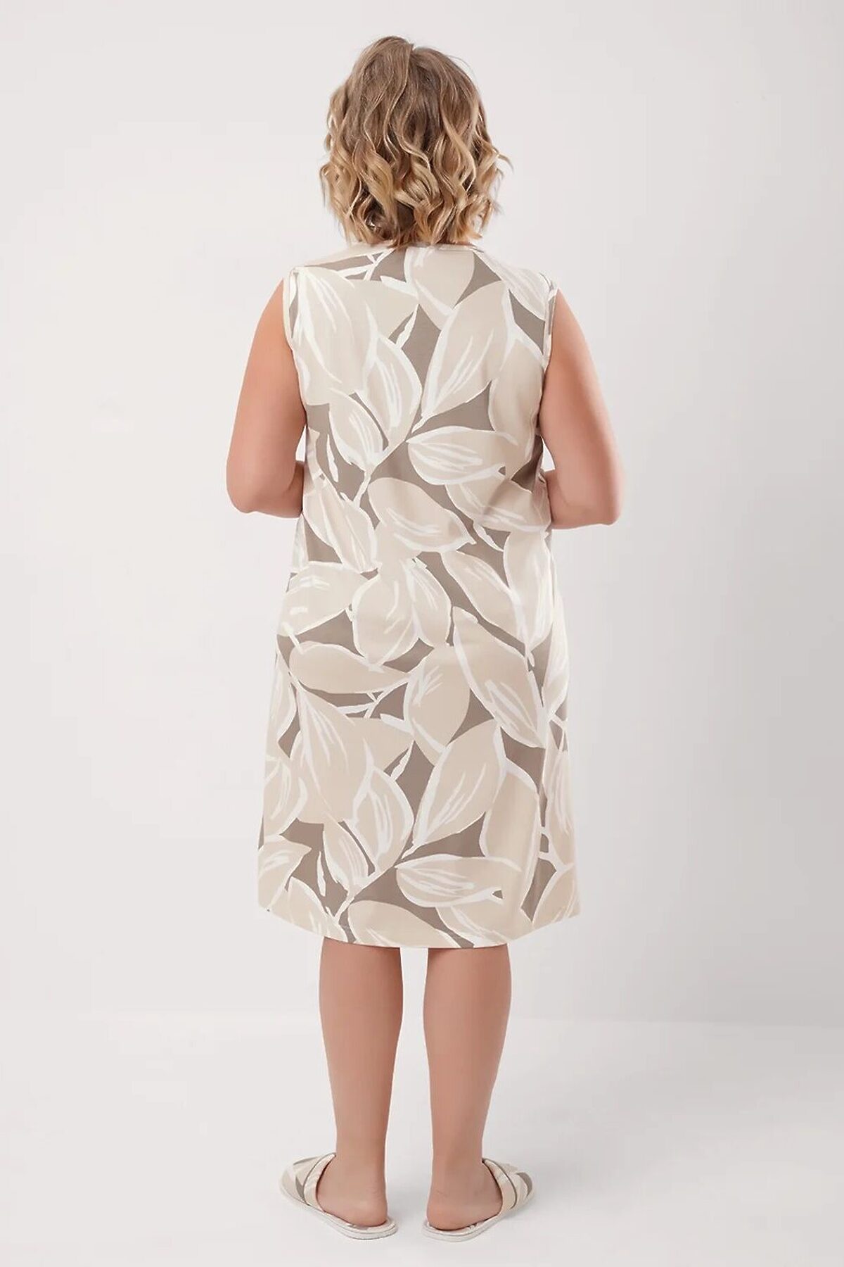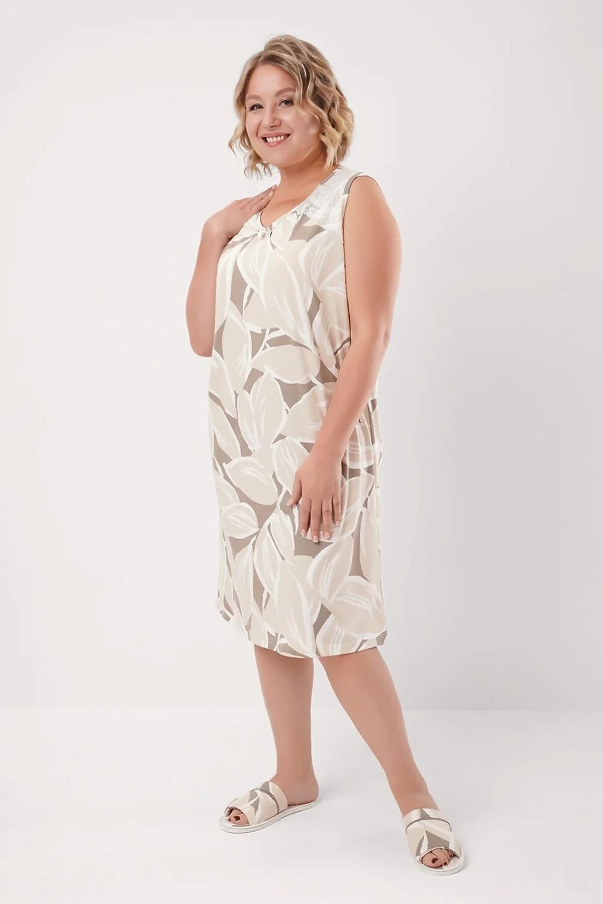 Ночная сорочка из хлопкового трикотажного полотна с добавлением модала, без рукавов. А-образного силуэта, длиной чуть ниже колена. В плечевой части переда декоративная кружевная вставка. По горловине и пройме окантовка. Спереди по горловине бант.