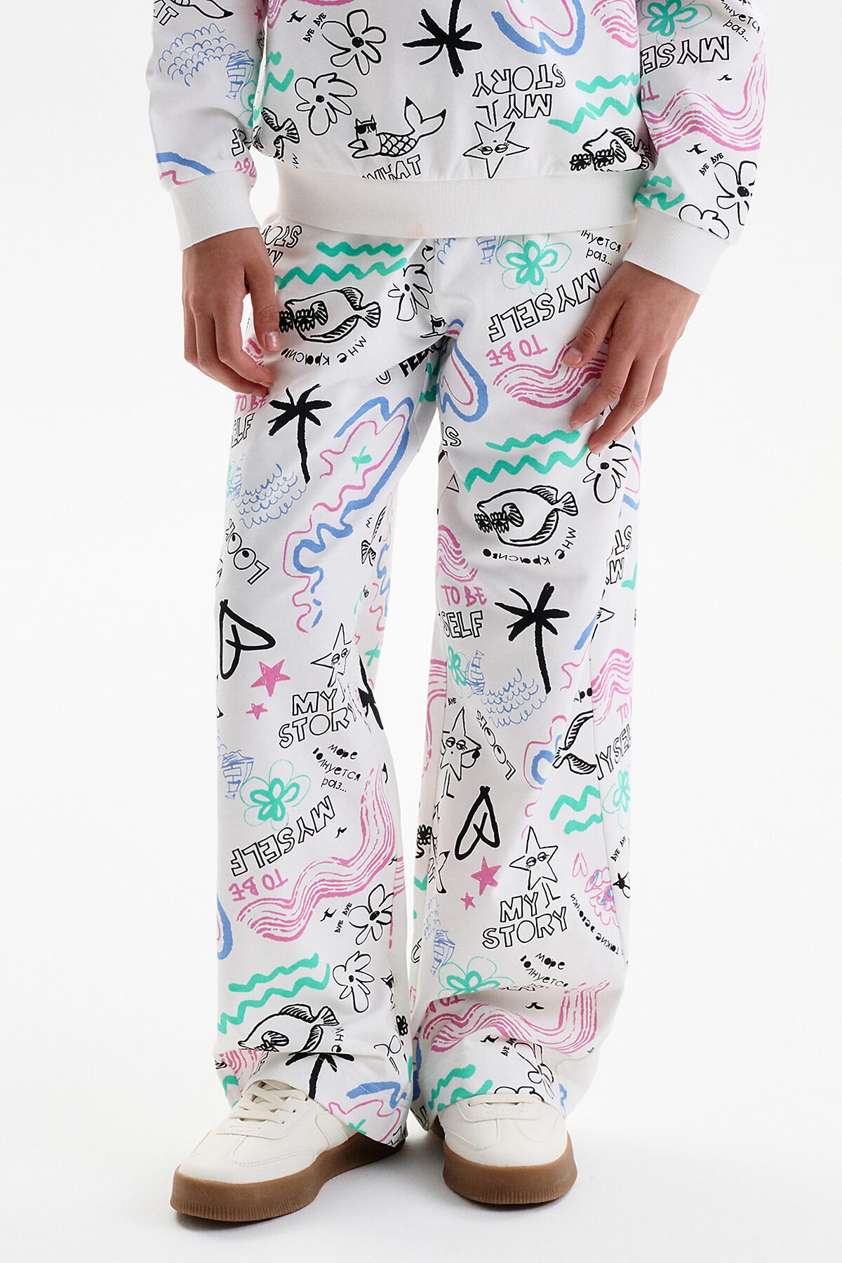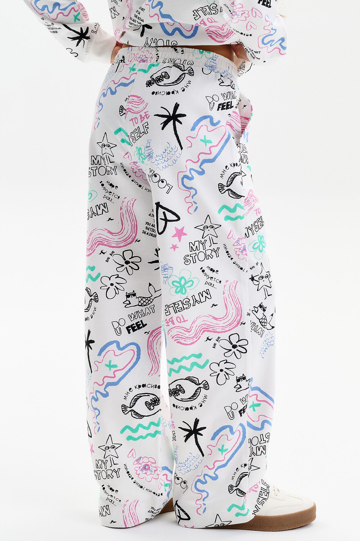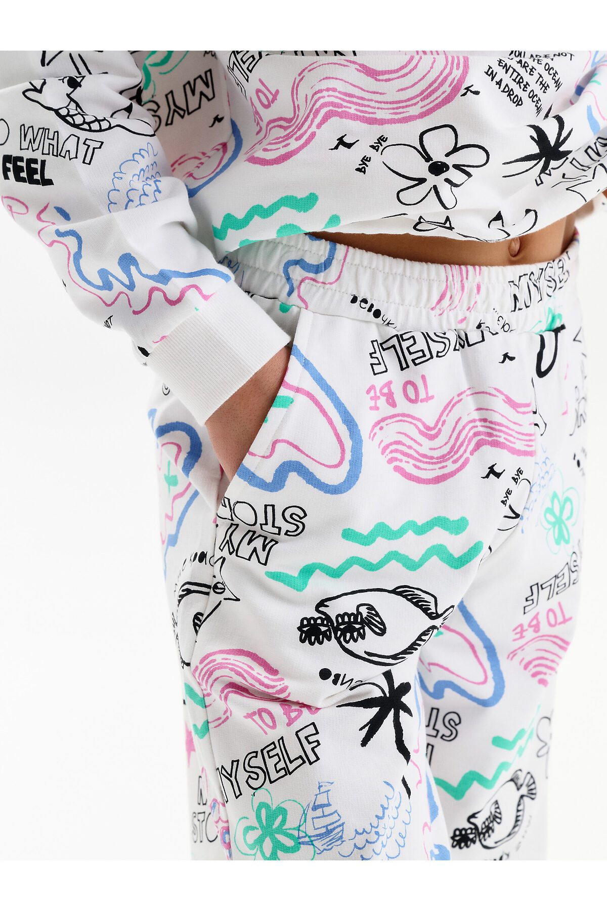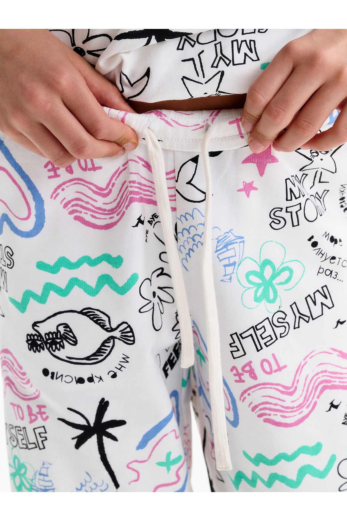 Широкие прямые брюки для девочек палаццо. Брюки выполнены из хлопкового футера, плотностью 245 гр/кв.м. Пояс на резинке, с внутренней регулировакой объема шнурком. По переду застрочены стрелки. Без карманов.